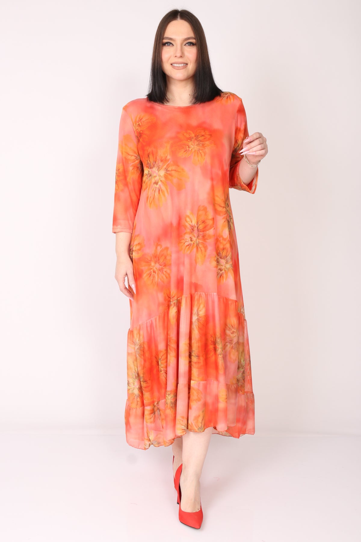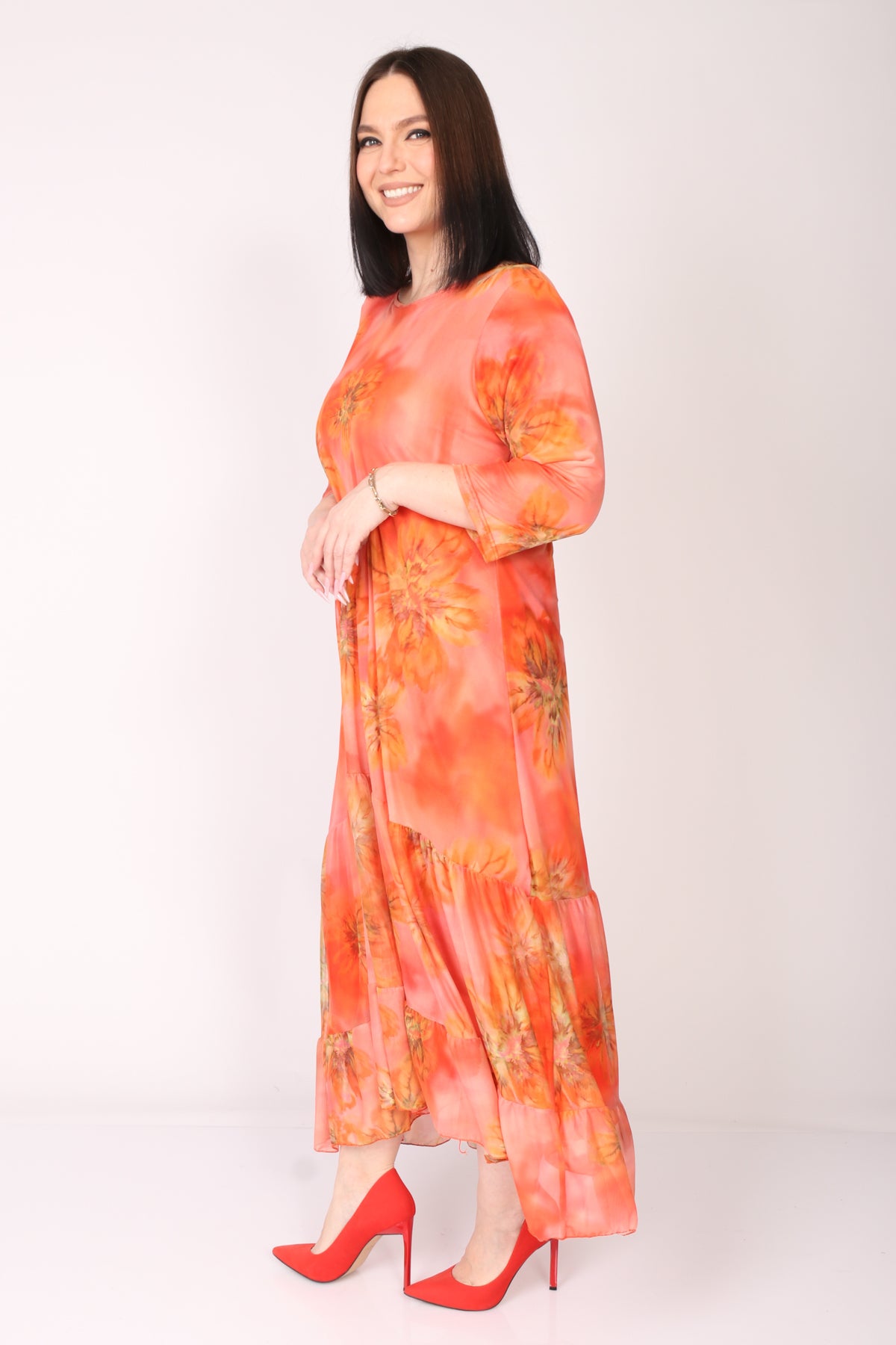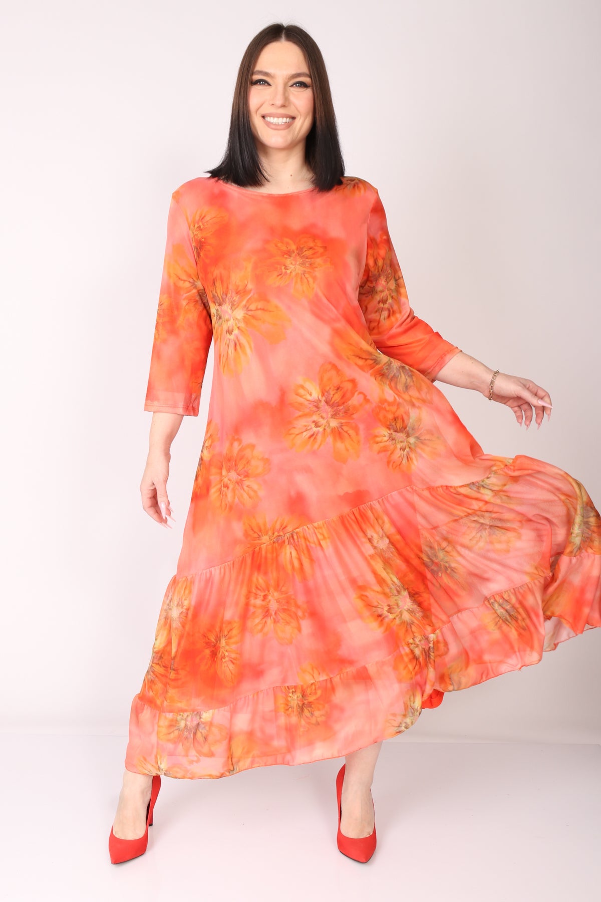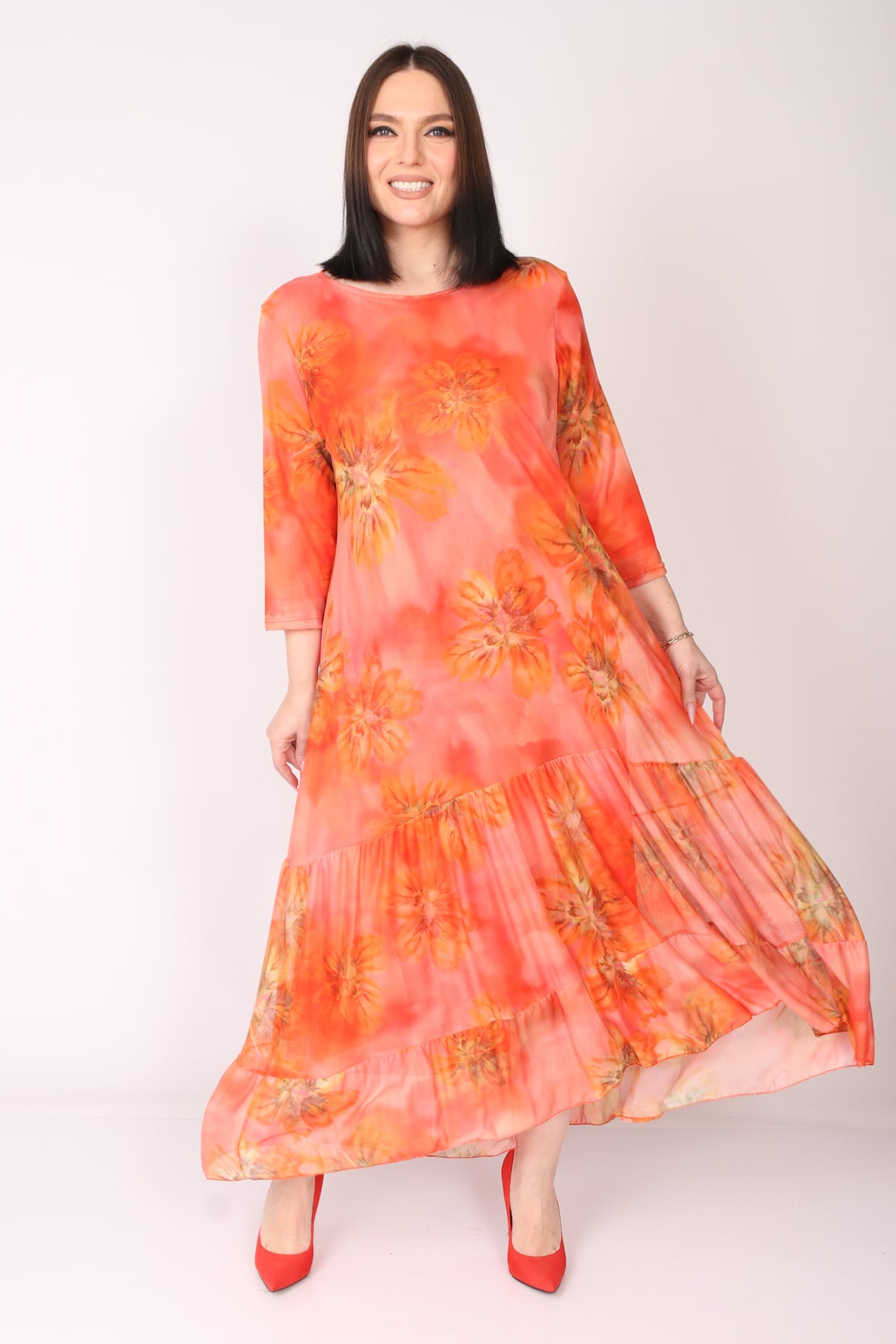 - שמלת מקסי בגזרת קומות מבד פרחוני נשפך