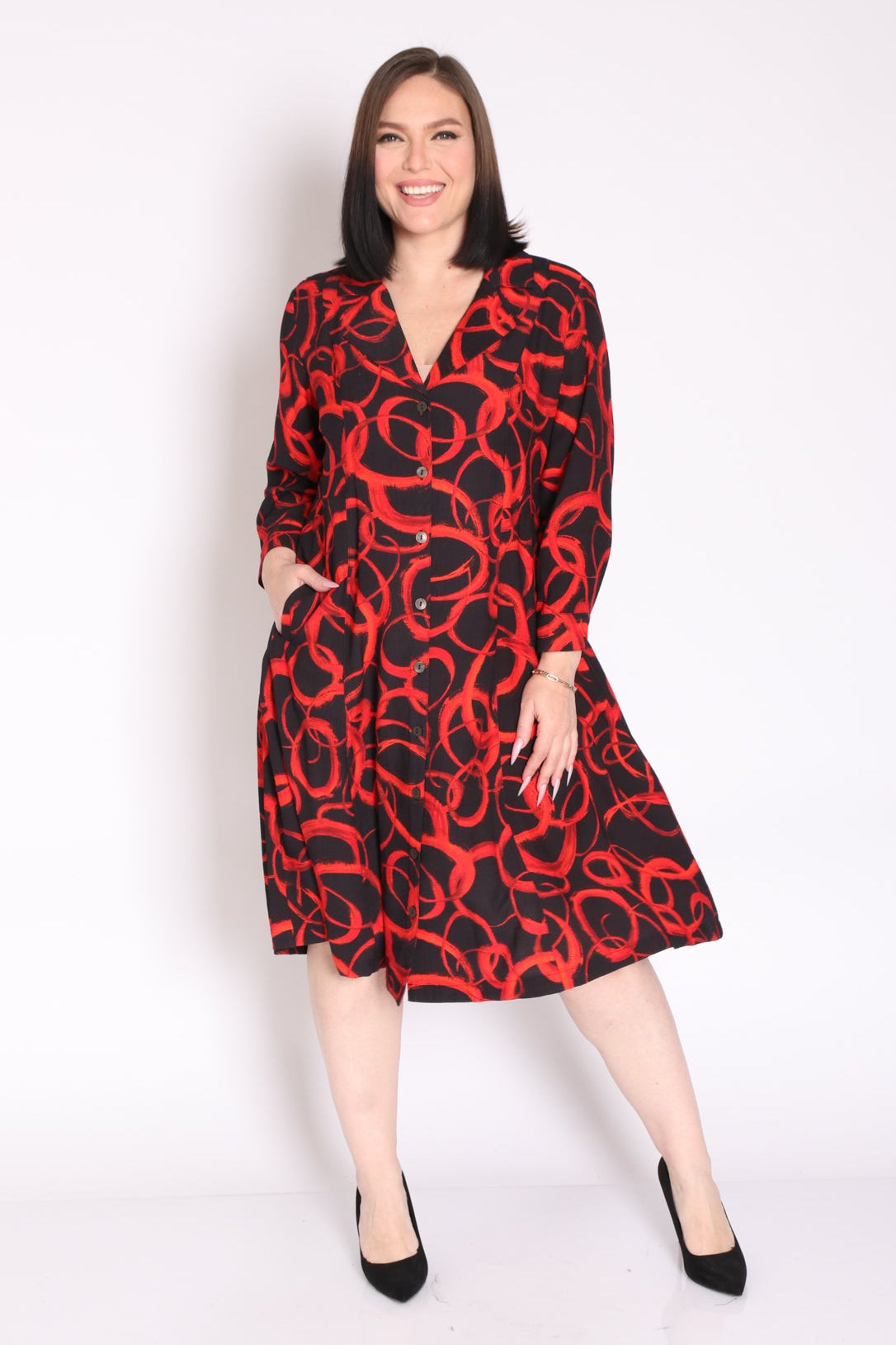 • שמלה מכופתרת מבד אריג מודפס מתרחבת ומחמיאה