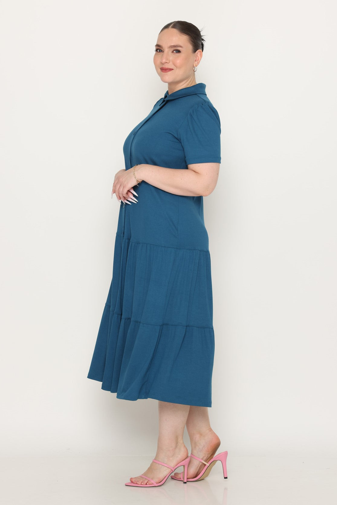 - שמלה ארוכה ומכופתרת, בגזרת קומות