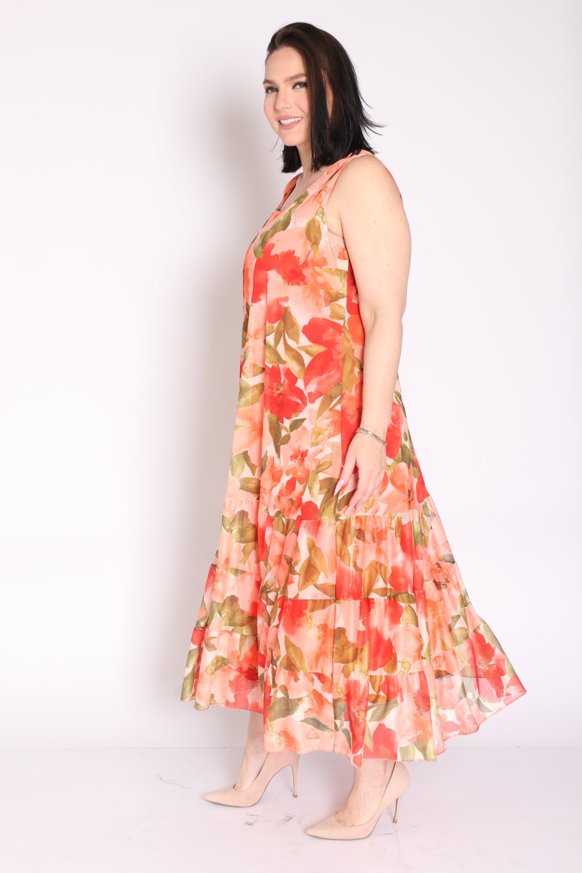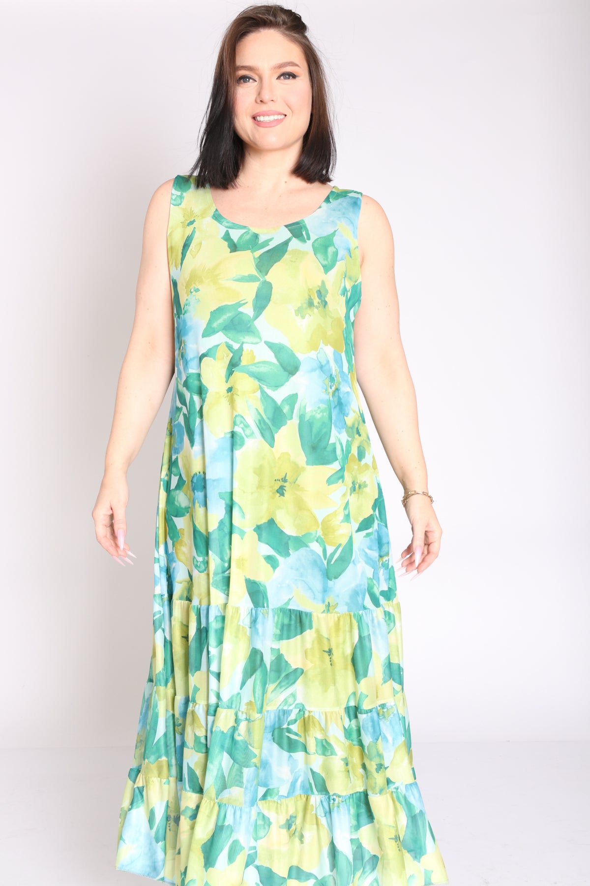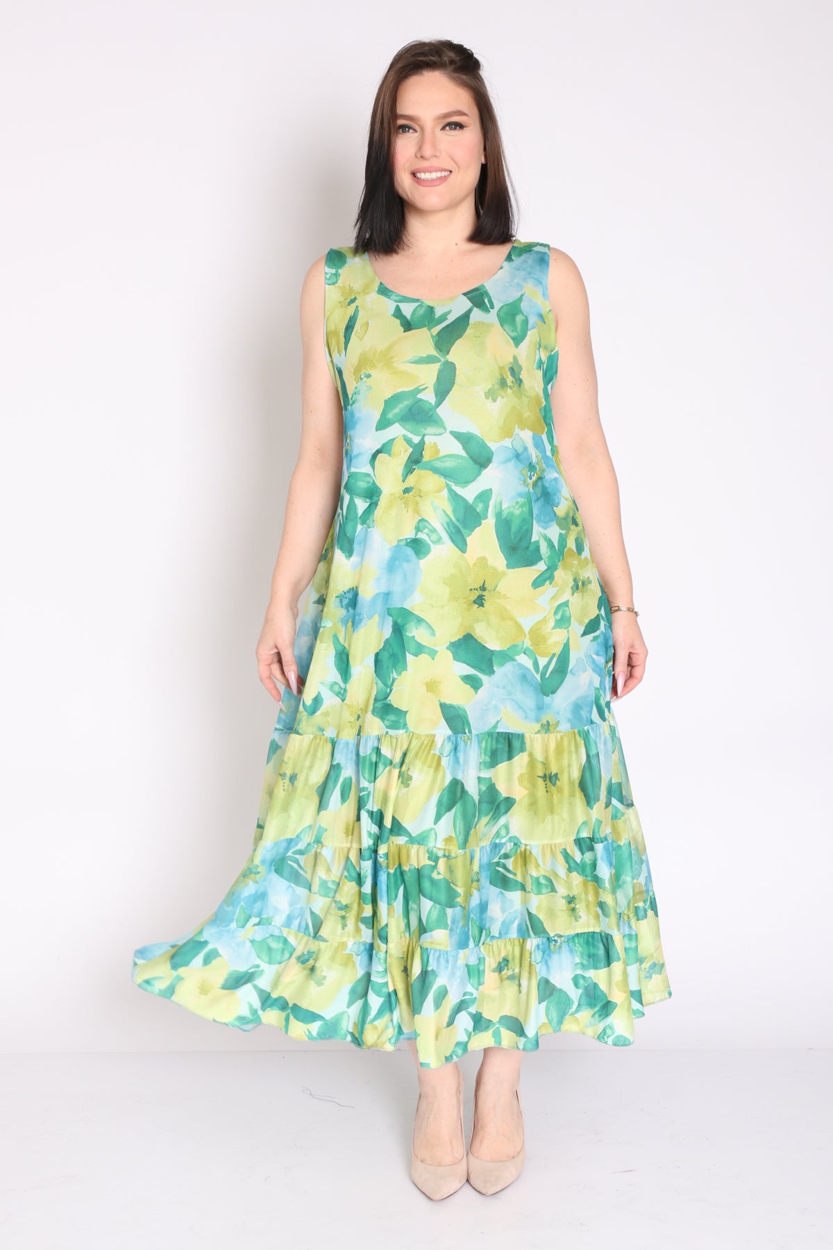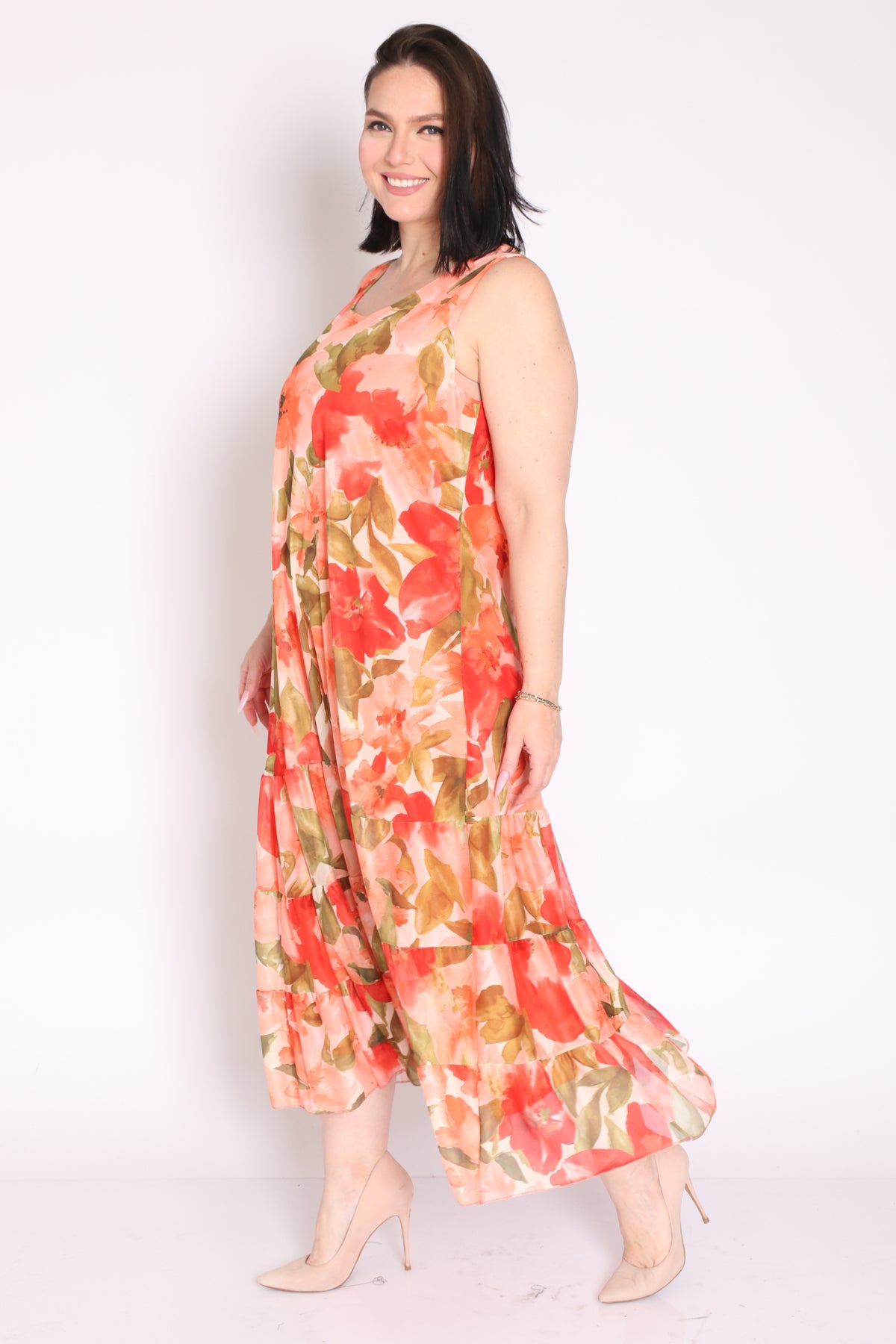 - שמלת גופייה בגזרת קומות מבד פרחוני נשפך