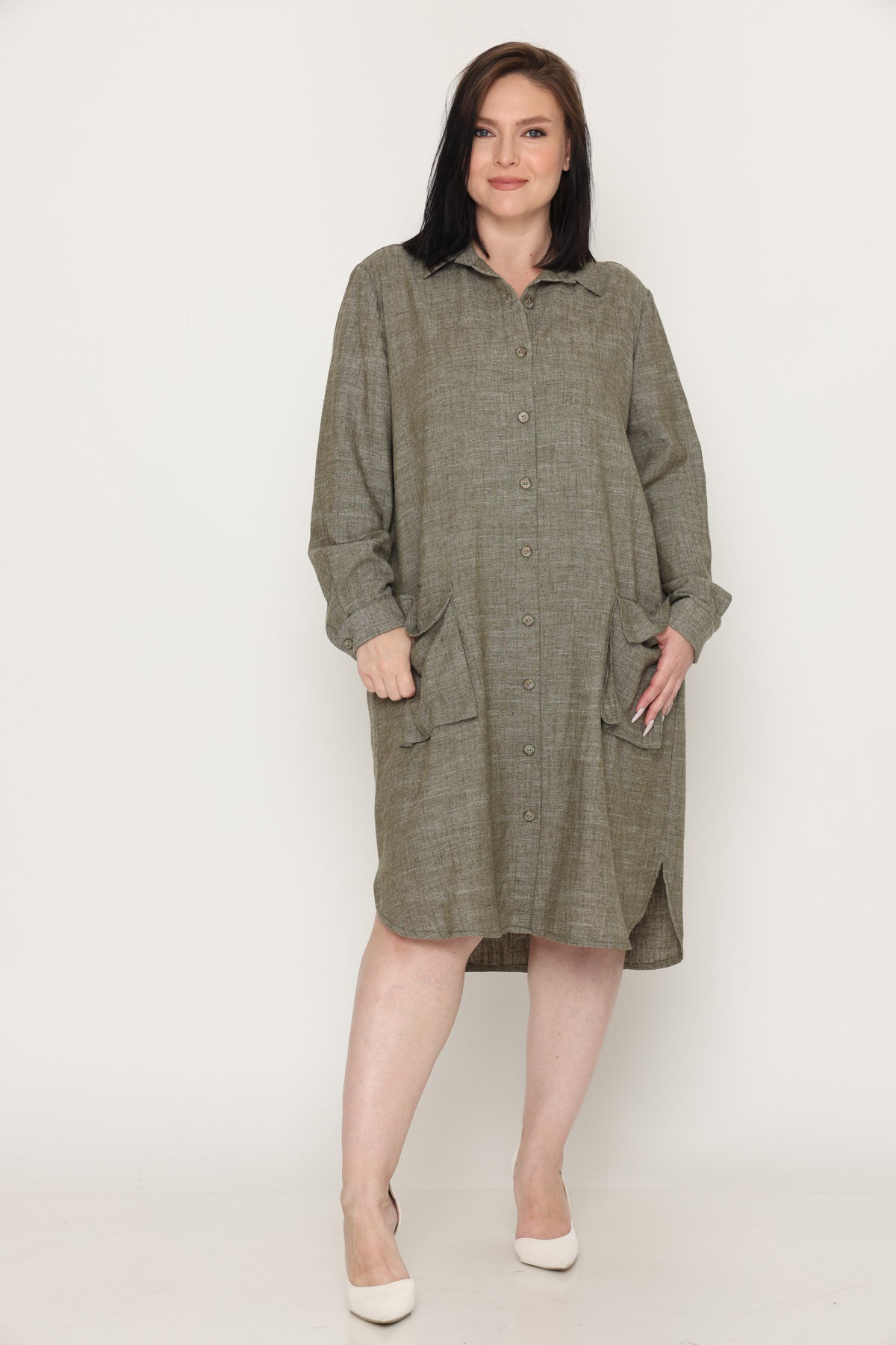 - צווארון פולו ושרוולים ארוכים, שני כיסים