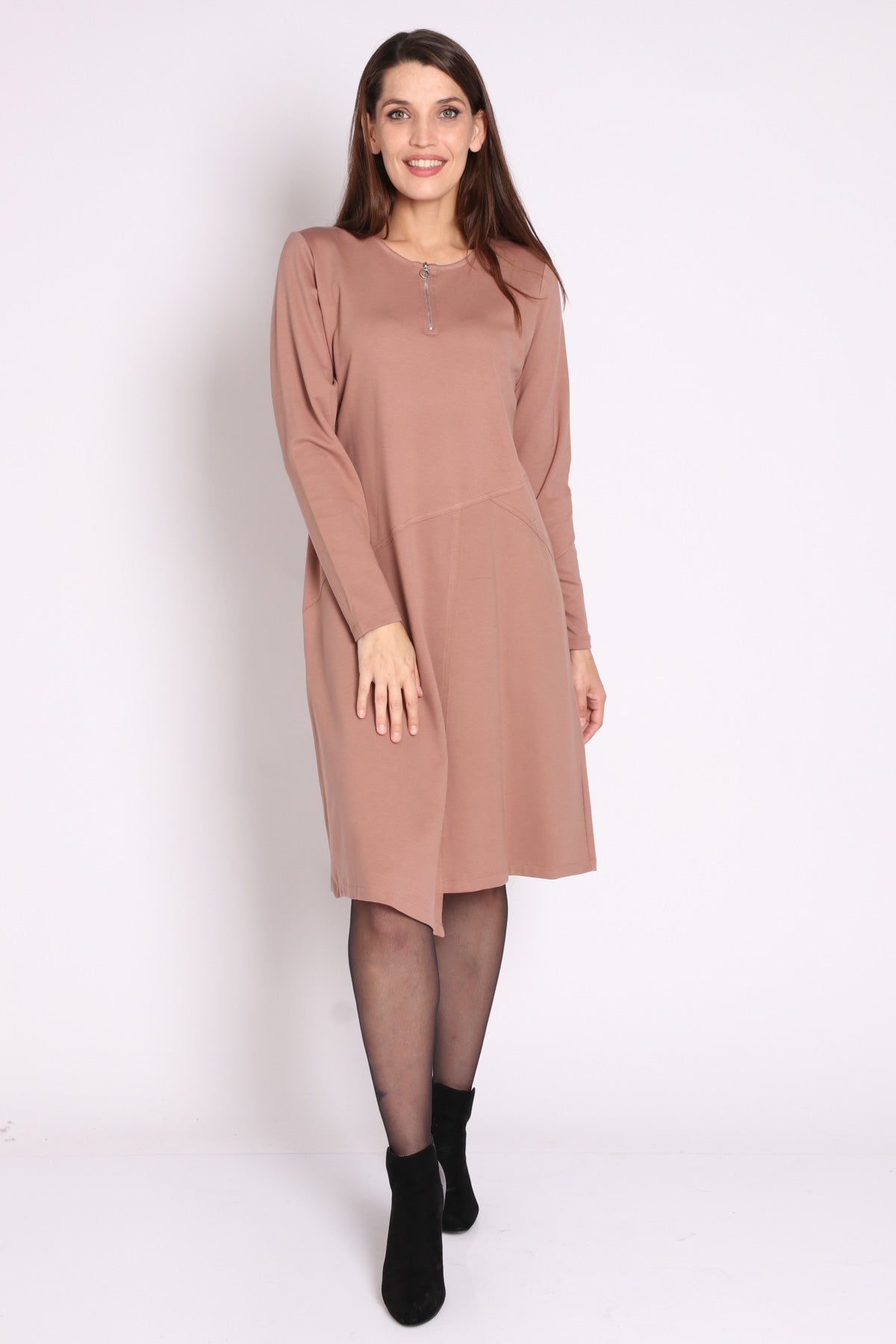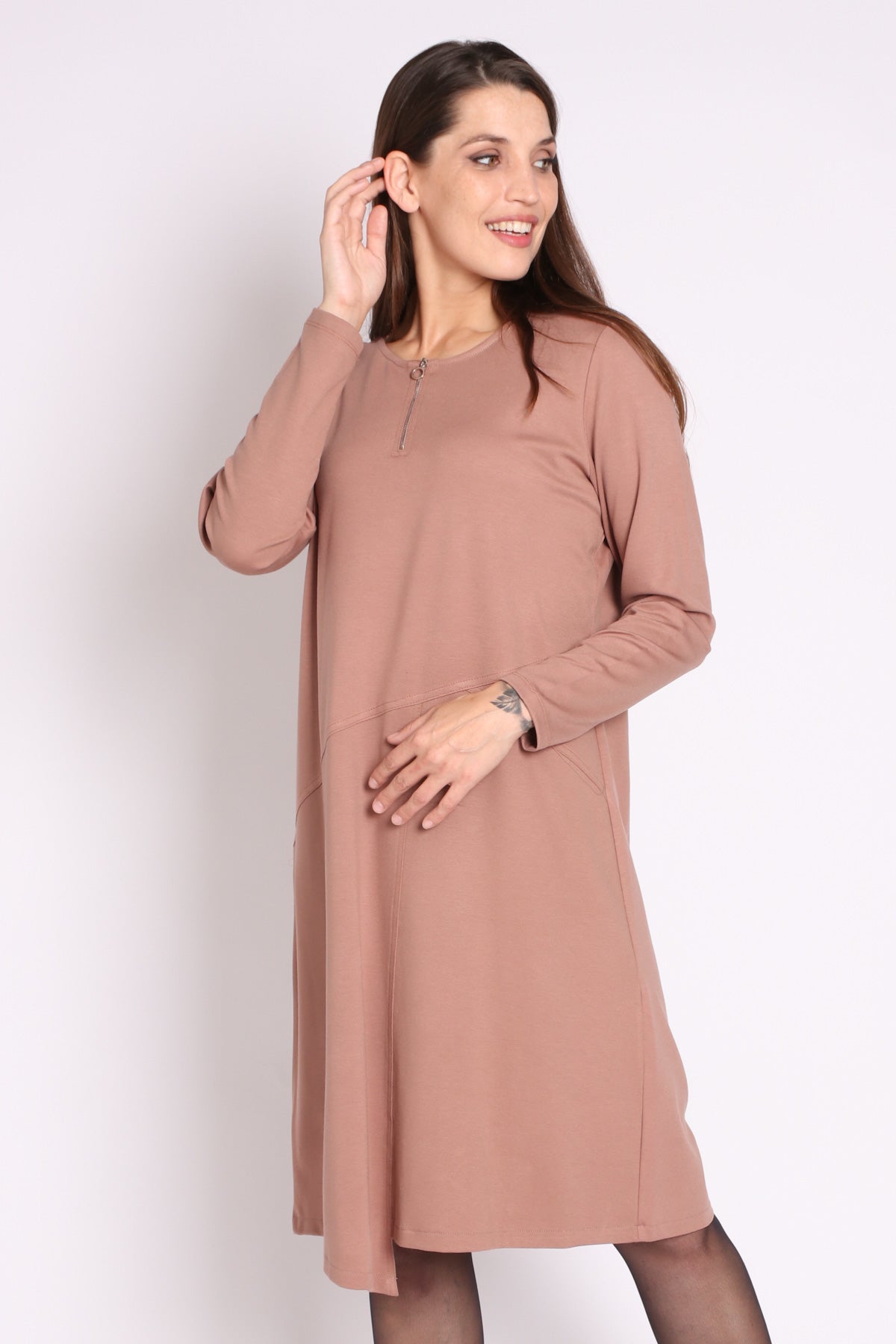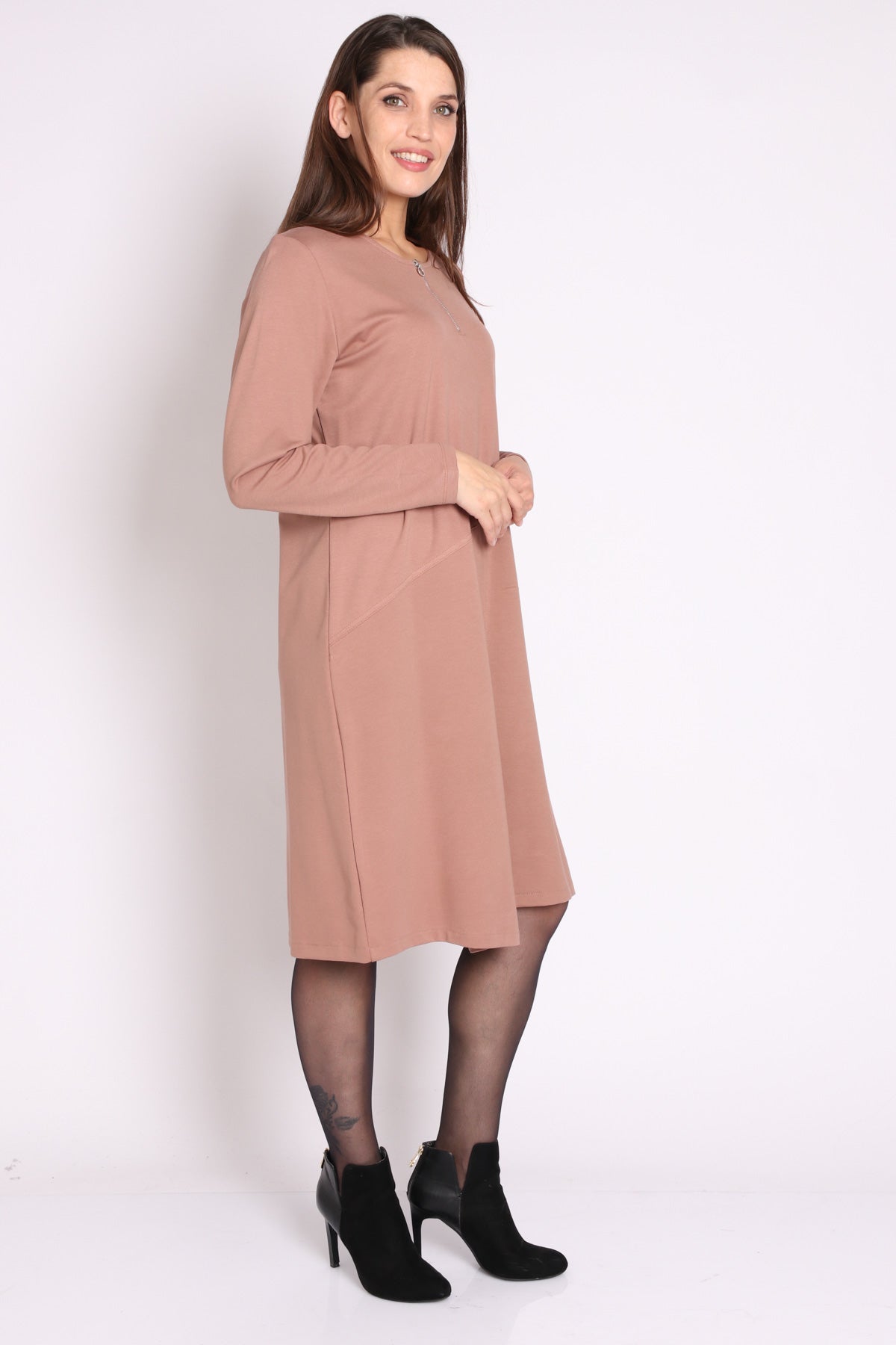 • מפתח צוואר עגול עם רוכסן ברזל ושרוולים ארוכים