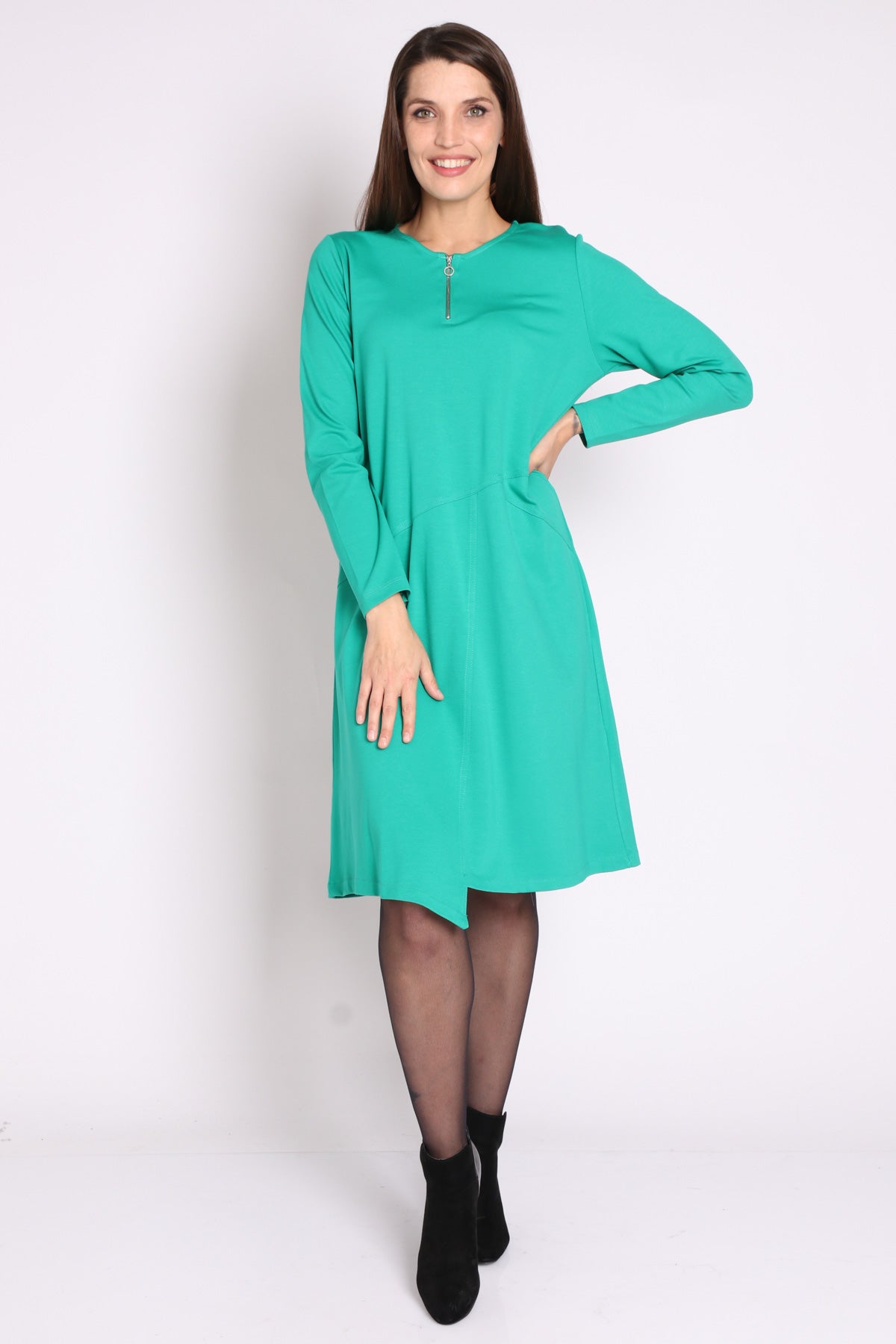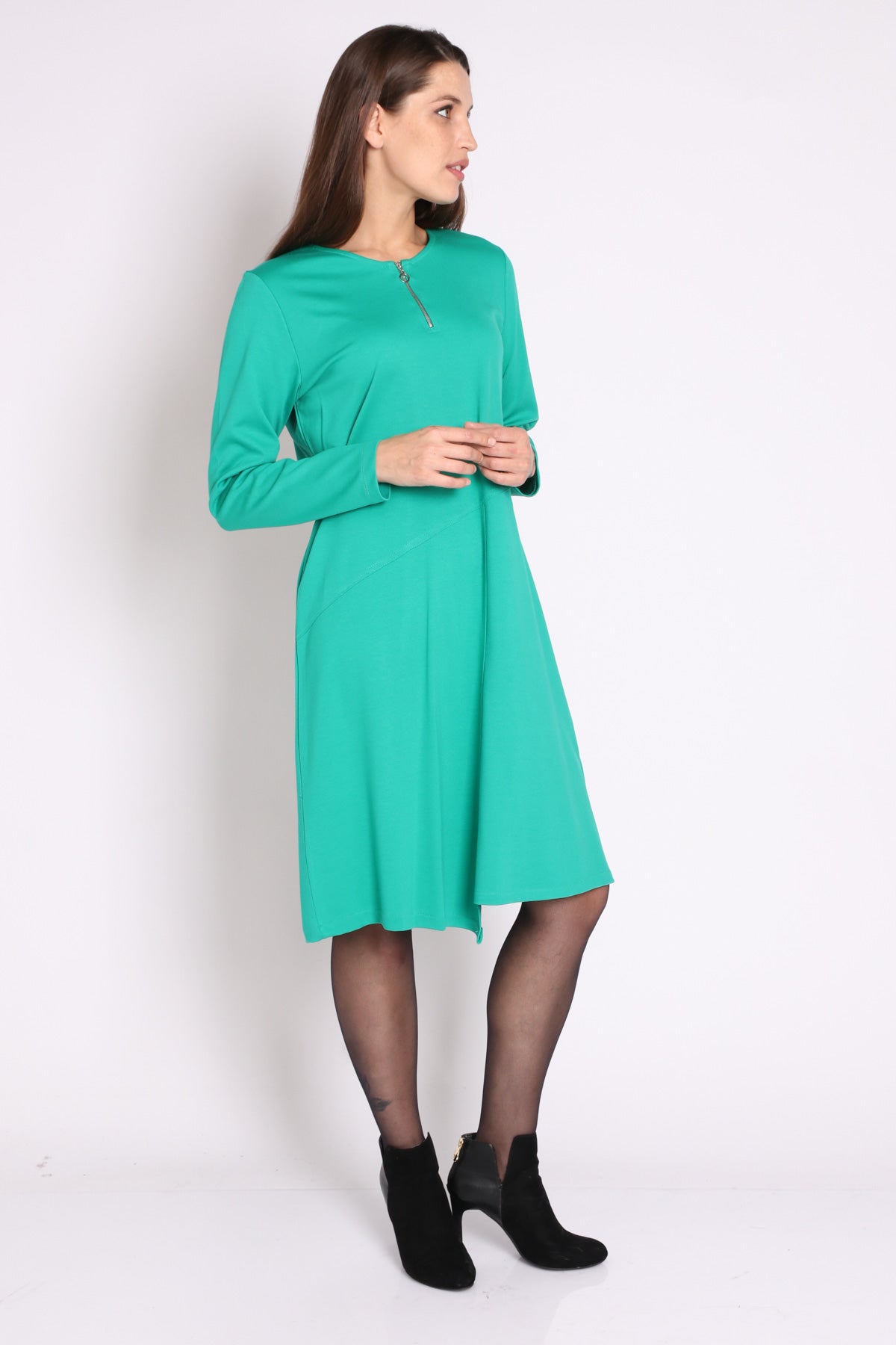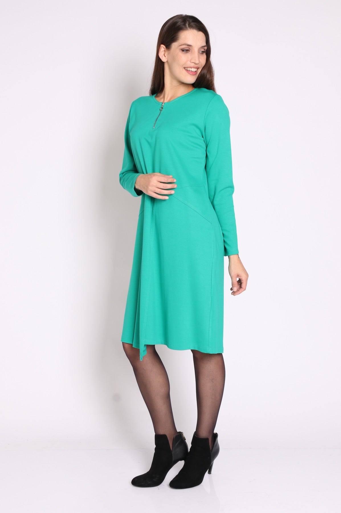 • מפתח צוואר עגול עם רוכסן ברזל ושרוולים ארוכים