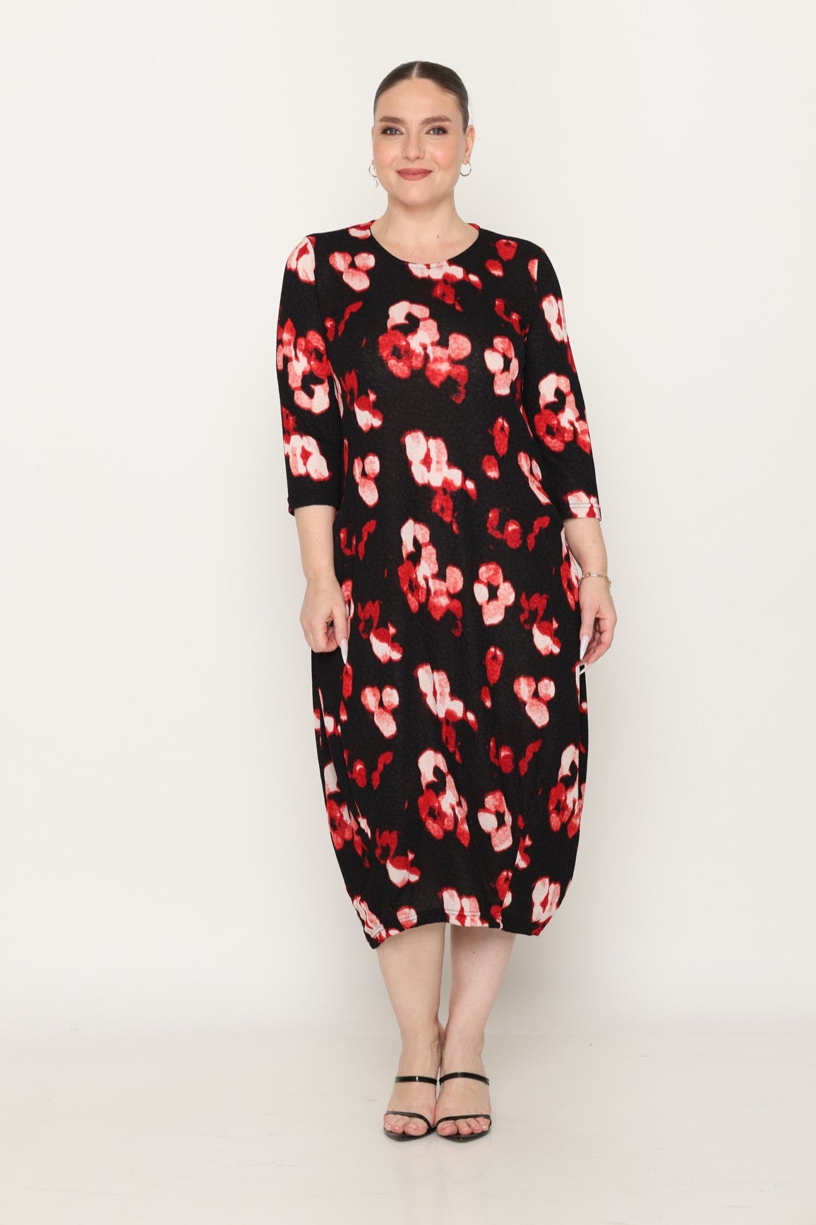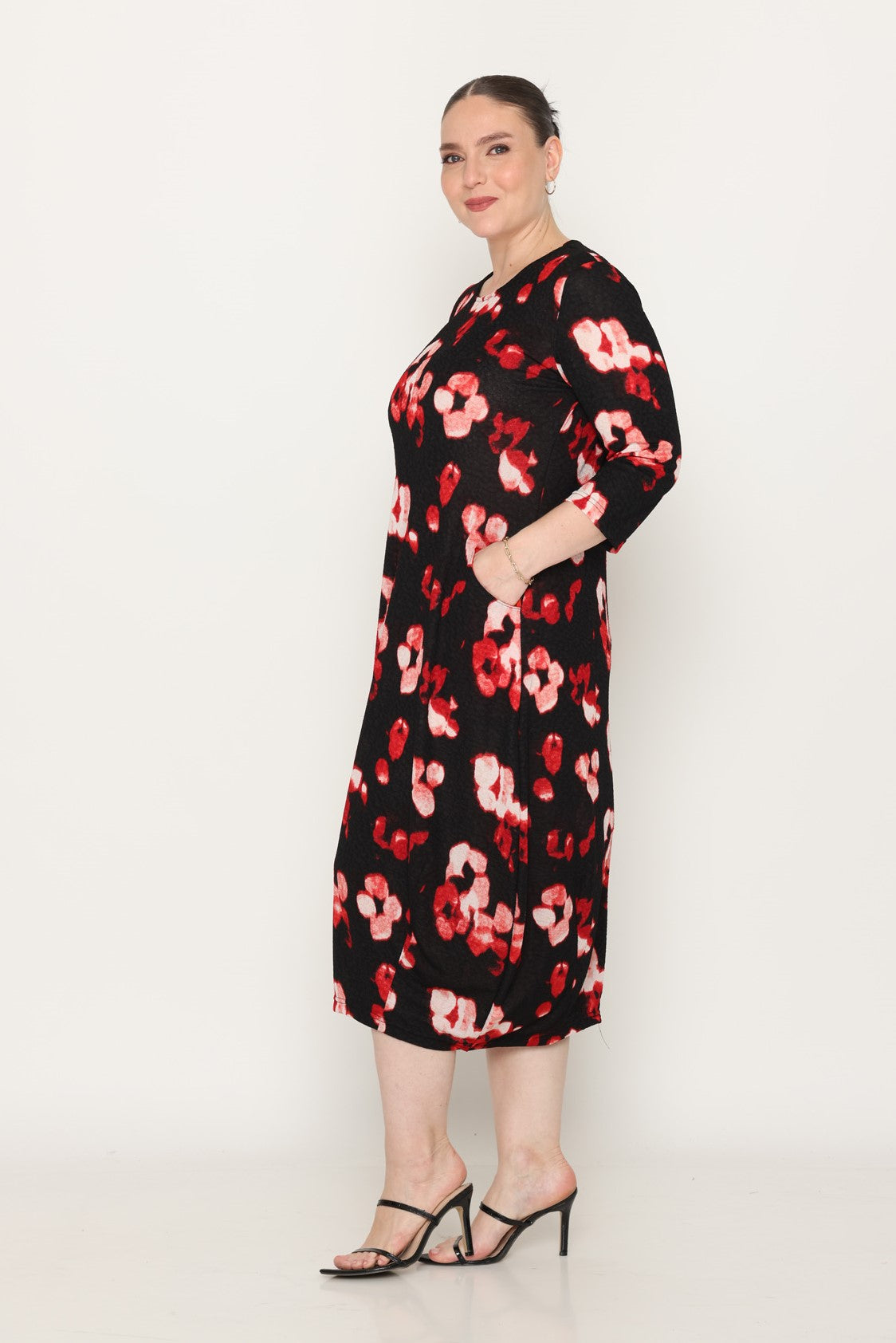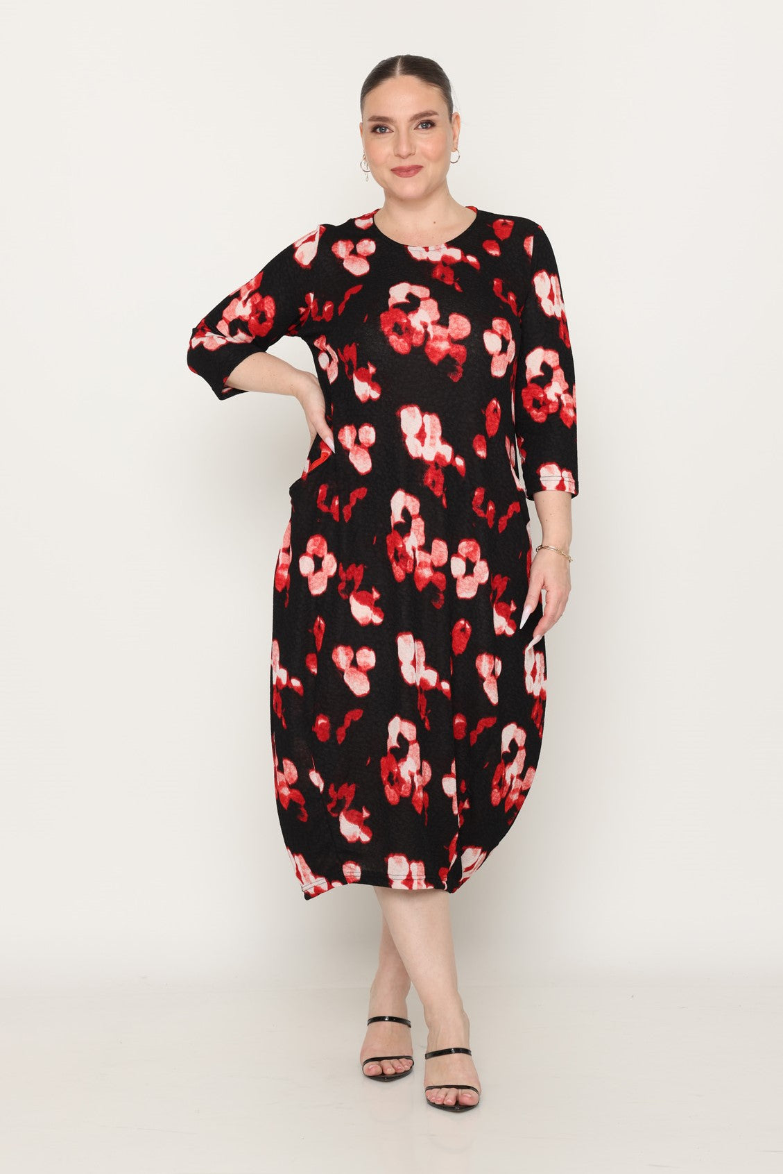 - שמלה פרחונית בגזרת בלון עדינה עם שני כיסים עם בטנה בצבע הפרח