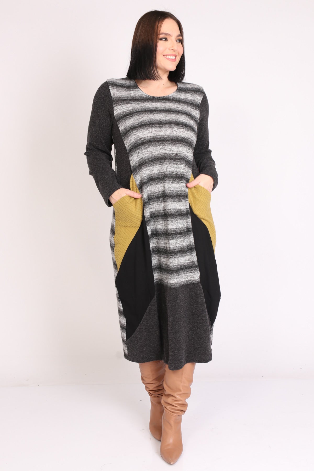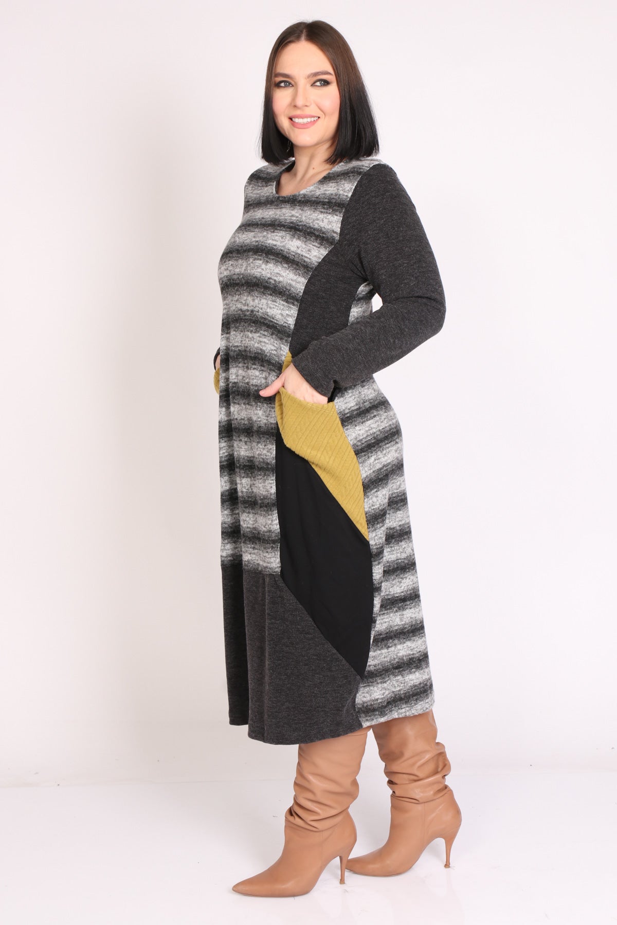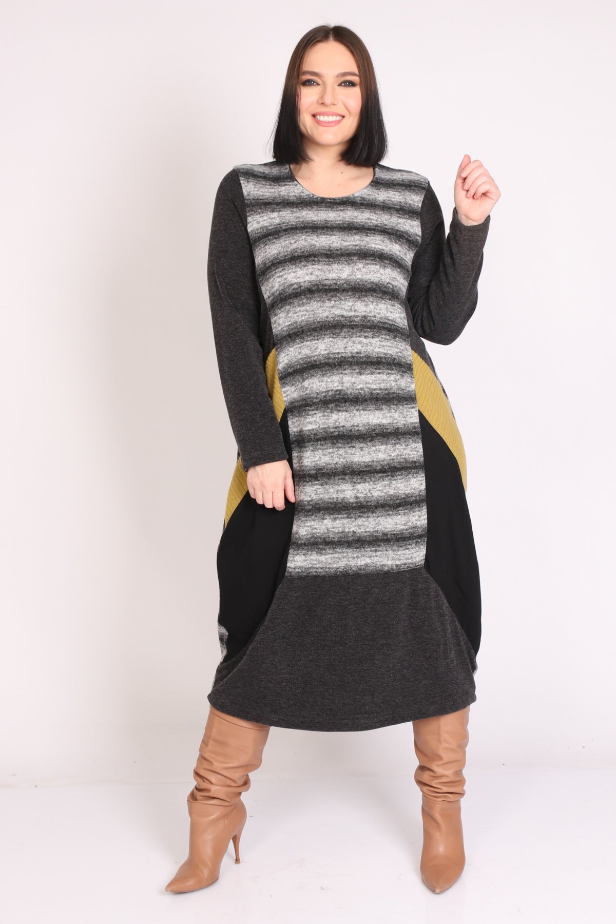 • שמלה בגזרת בלון עדינה משולבת בדים