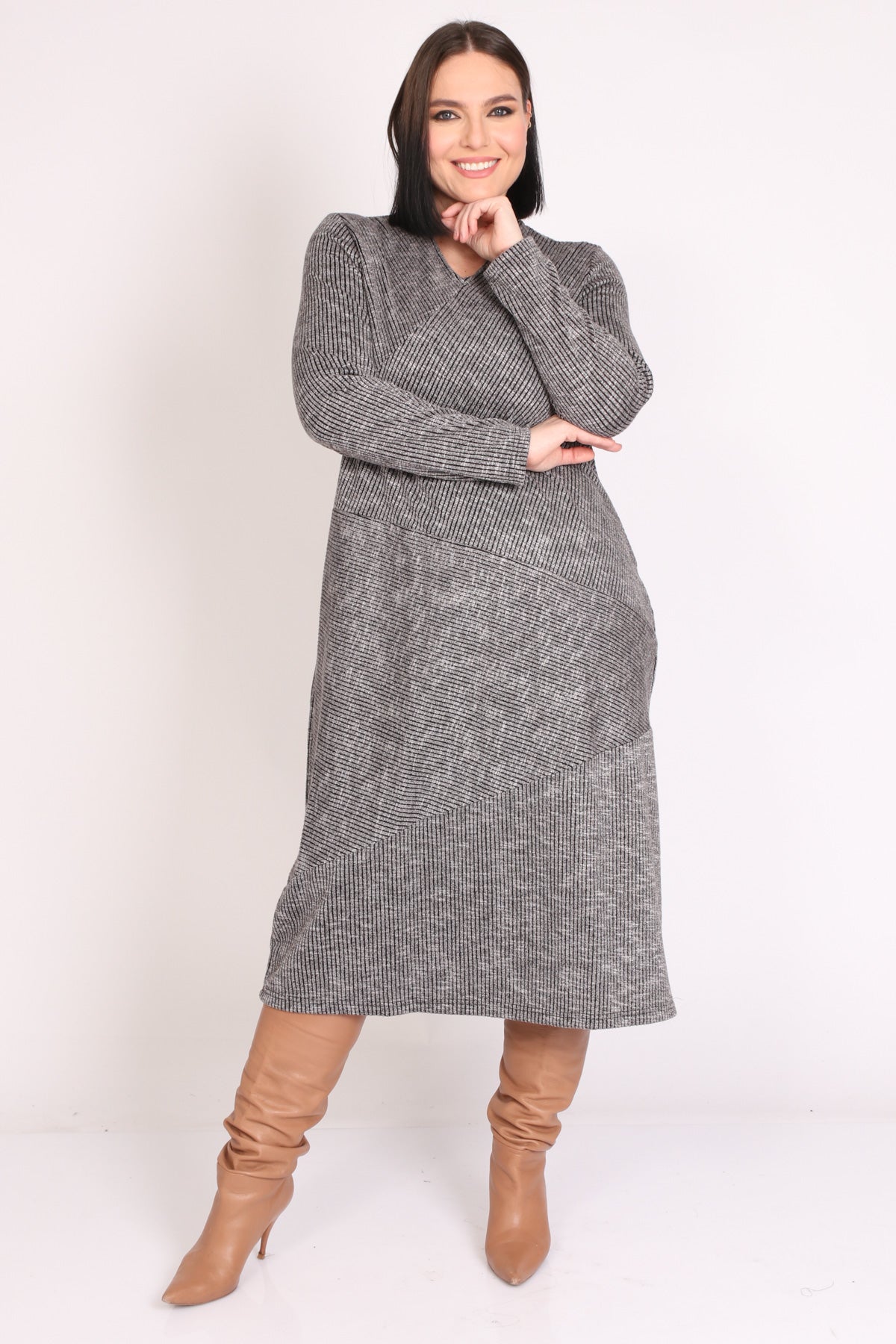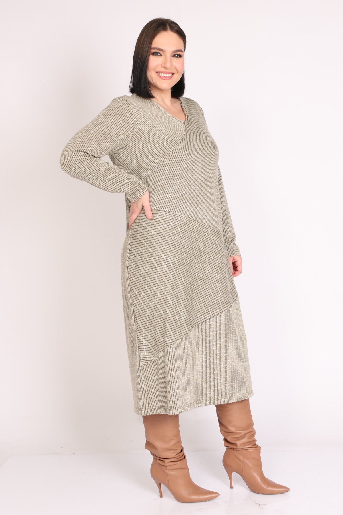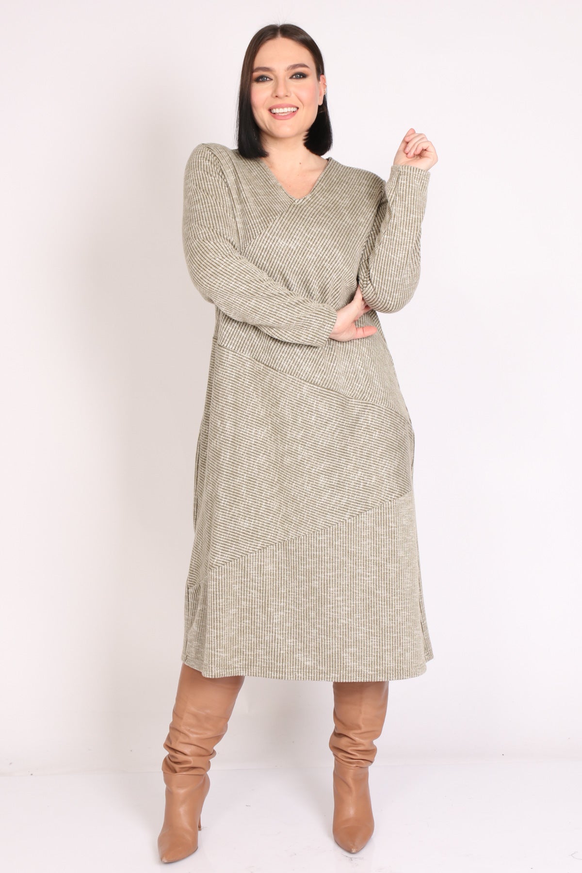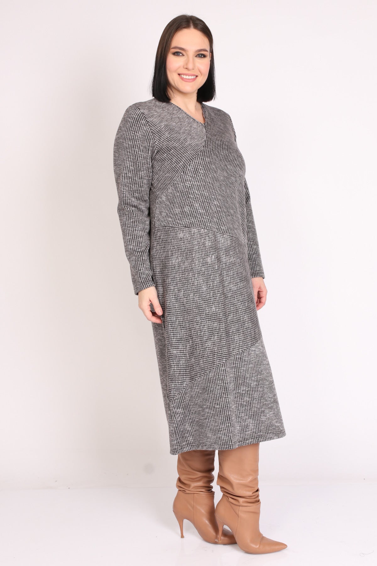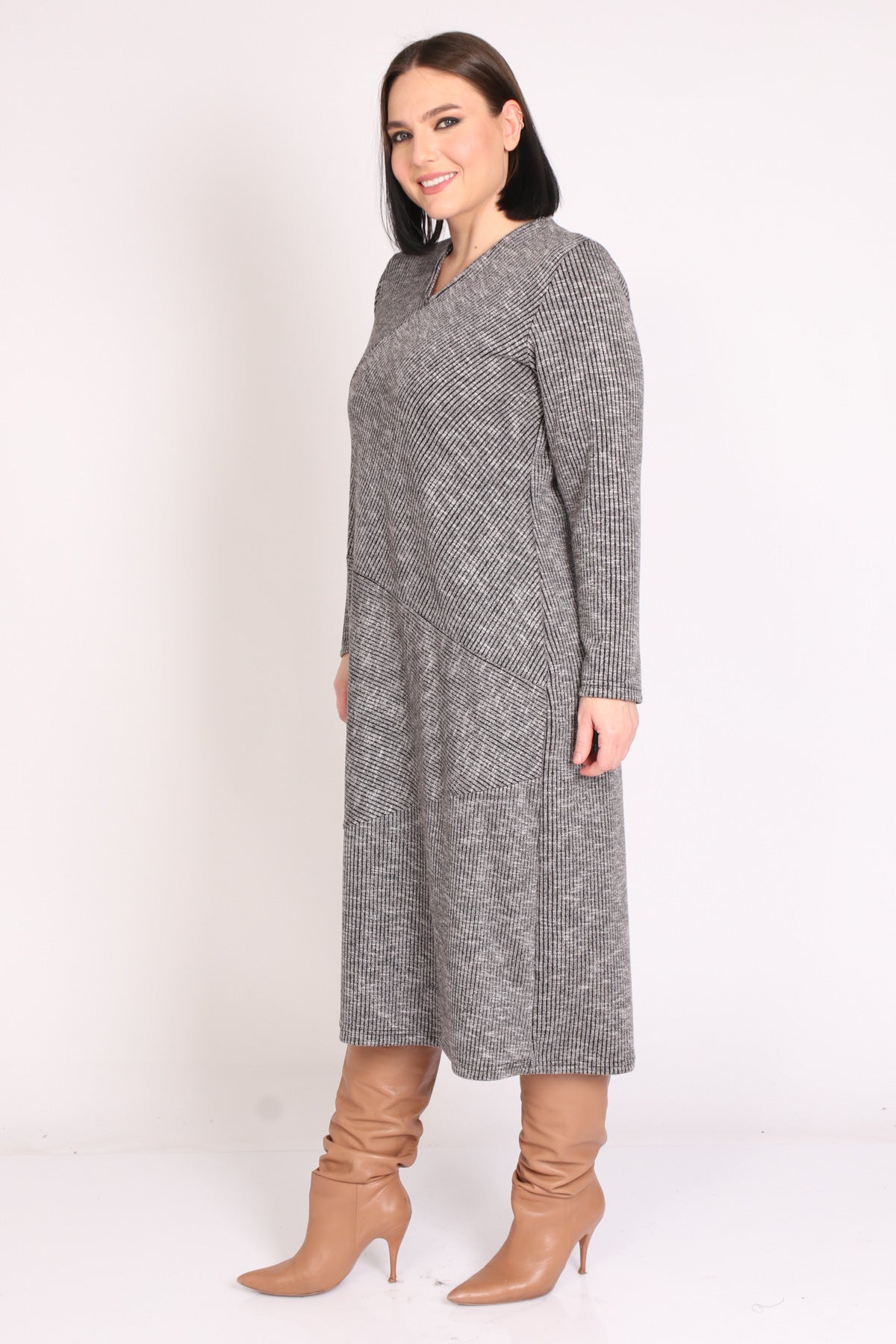 - שמלה ארוכה מבד ריב נעים ונוח בחיבורים אלכסוניים