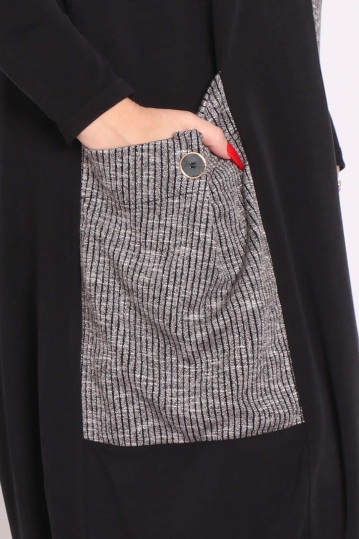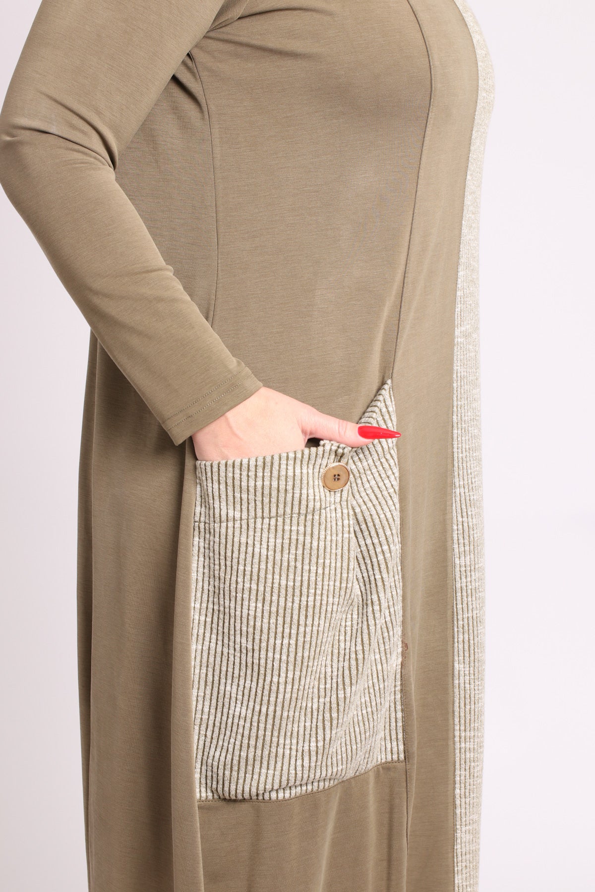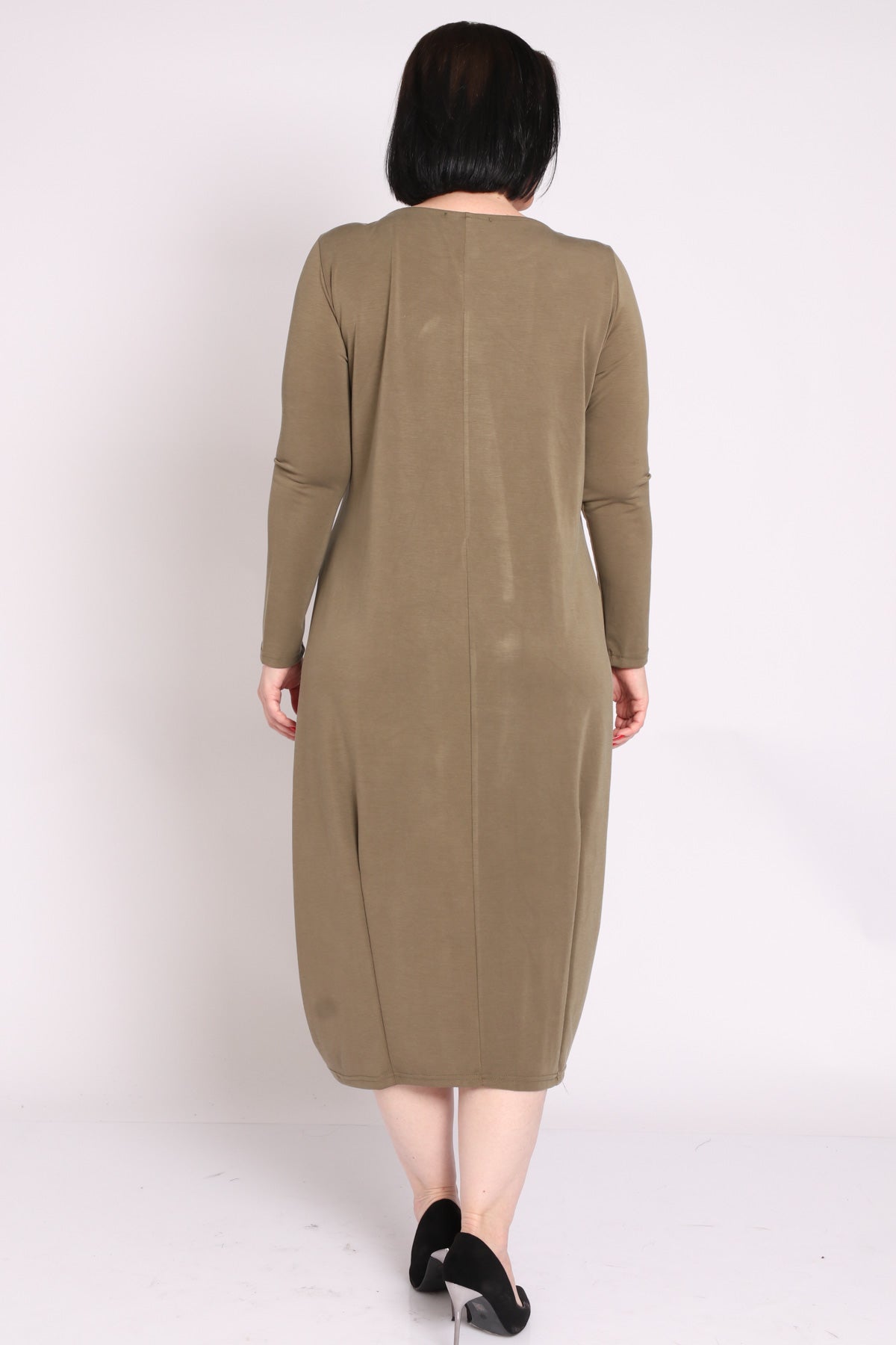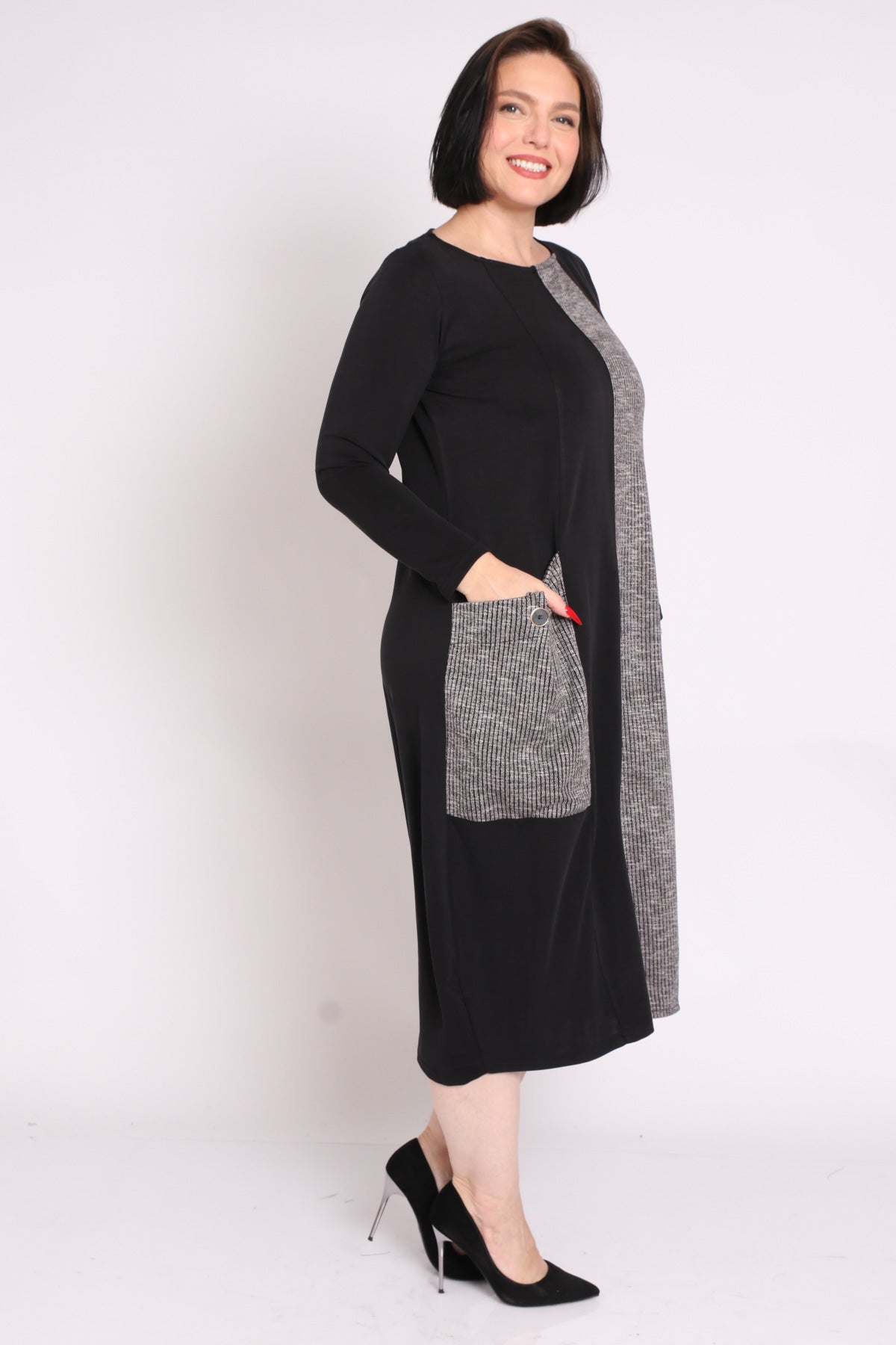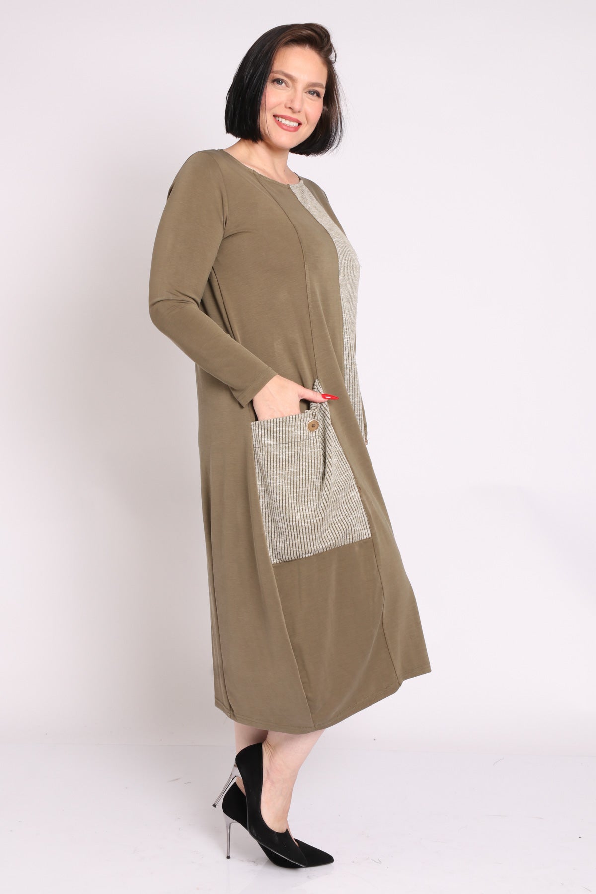 • שמלה בעלת צללית בלון עדינה משולב בד חלק ובד עם טקסטורה