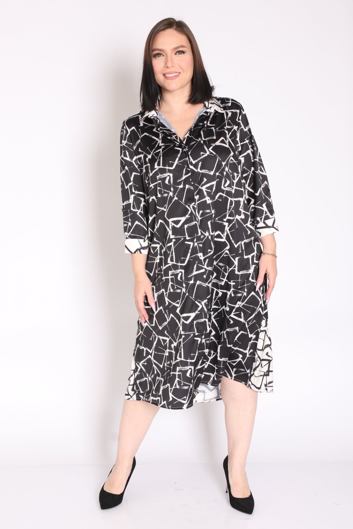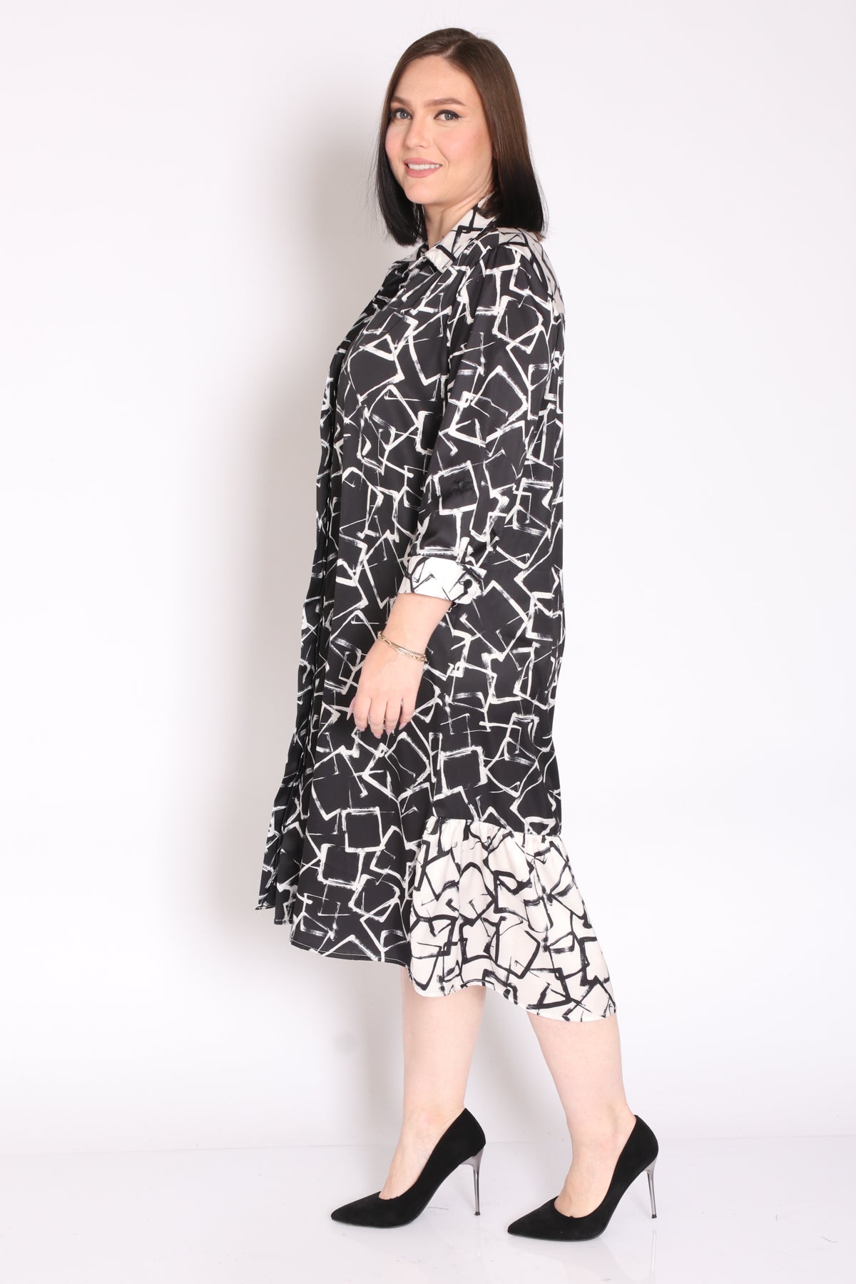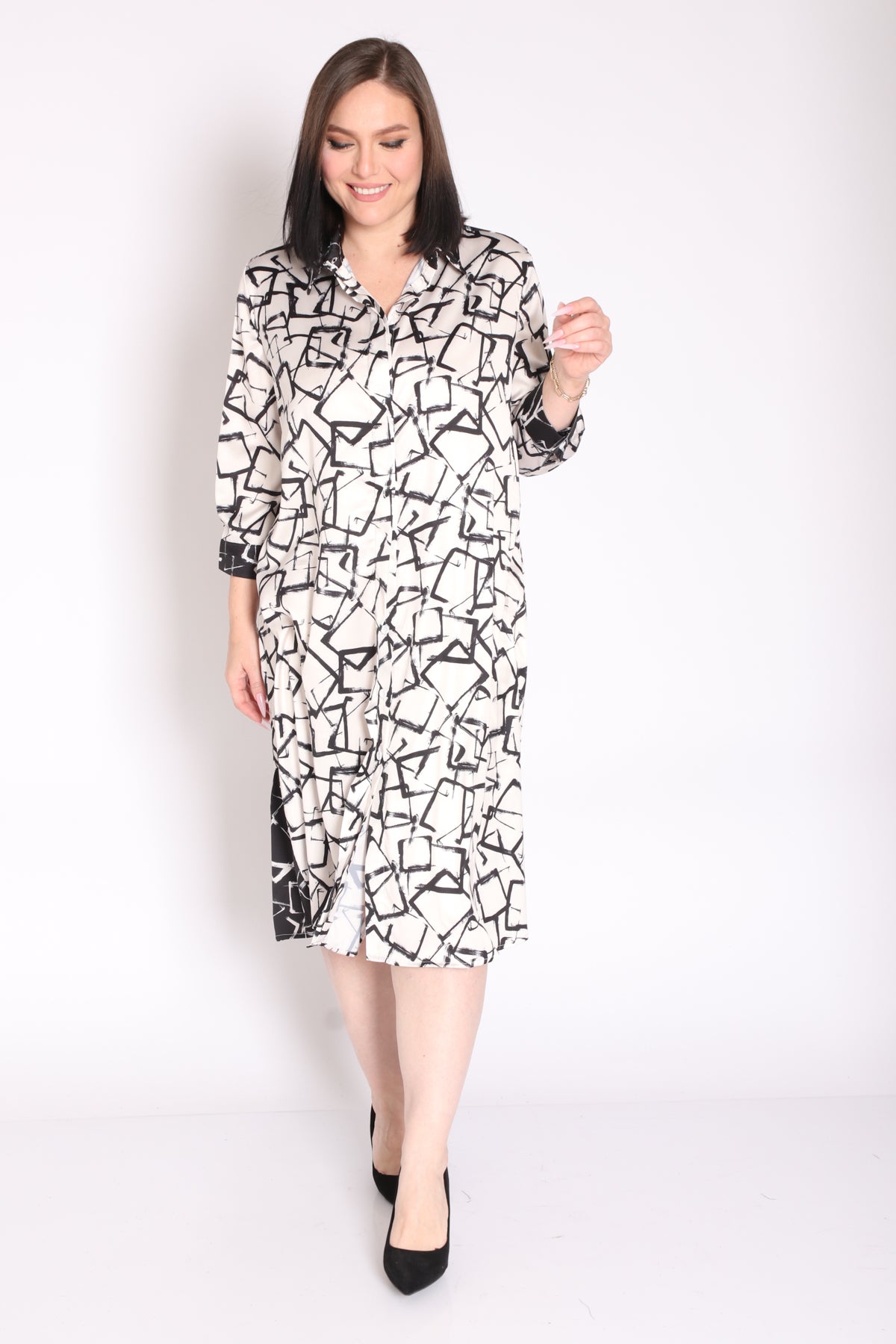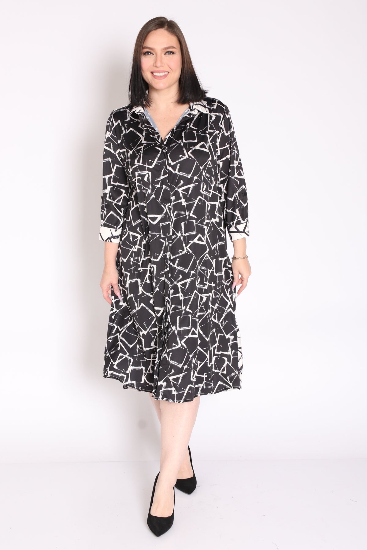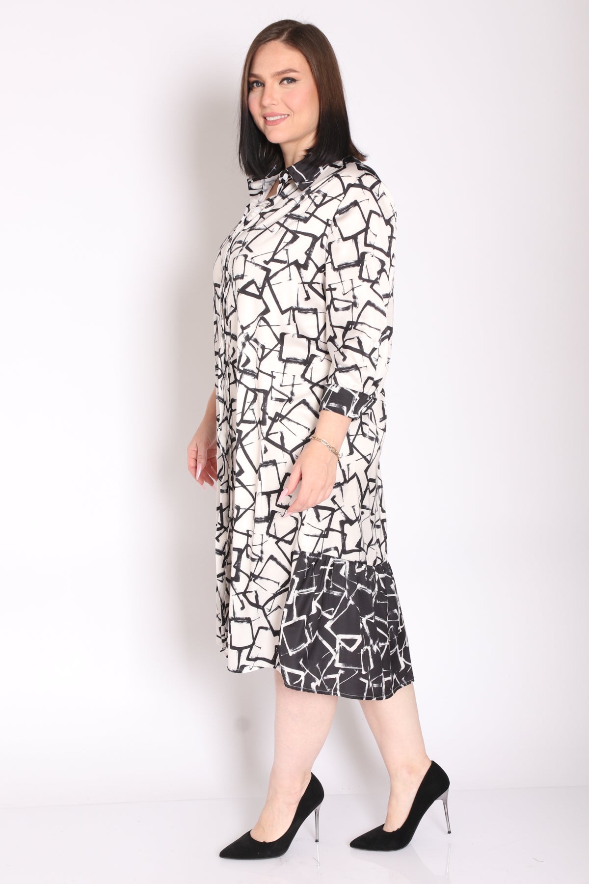 - שמלה מבד בדפוס מונוכרומטי