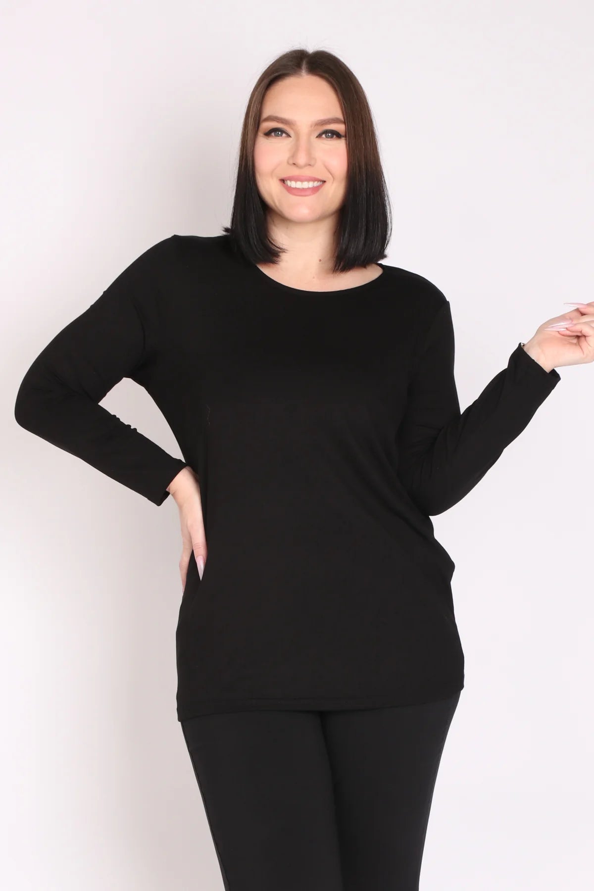 - חולצת בייסיק ארוכת שרוולים, מפתח צוואר ניקי