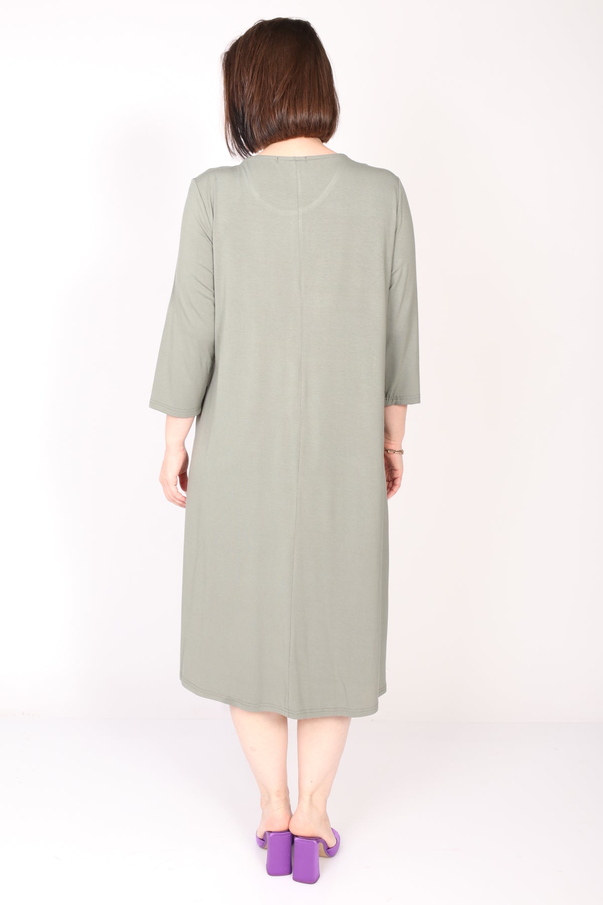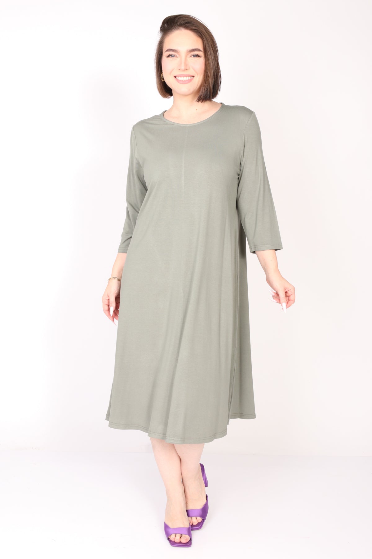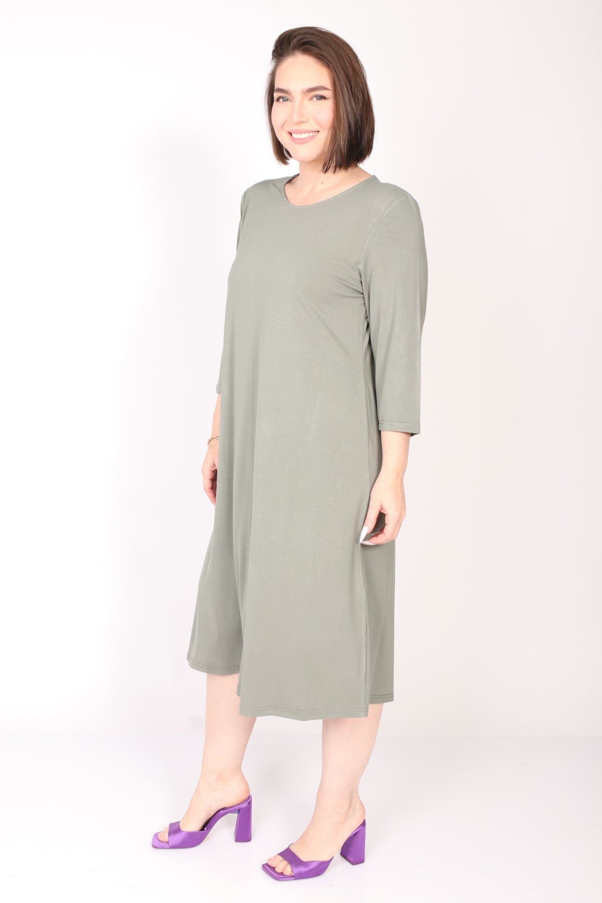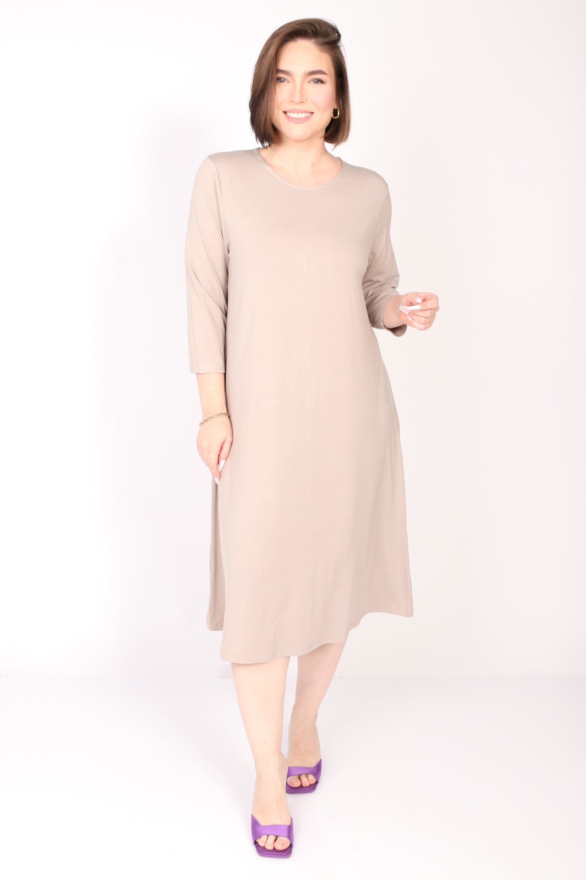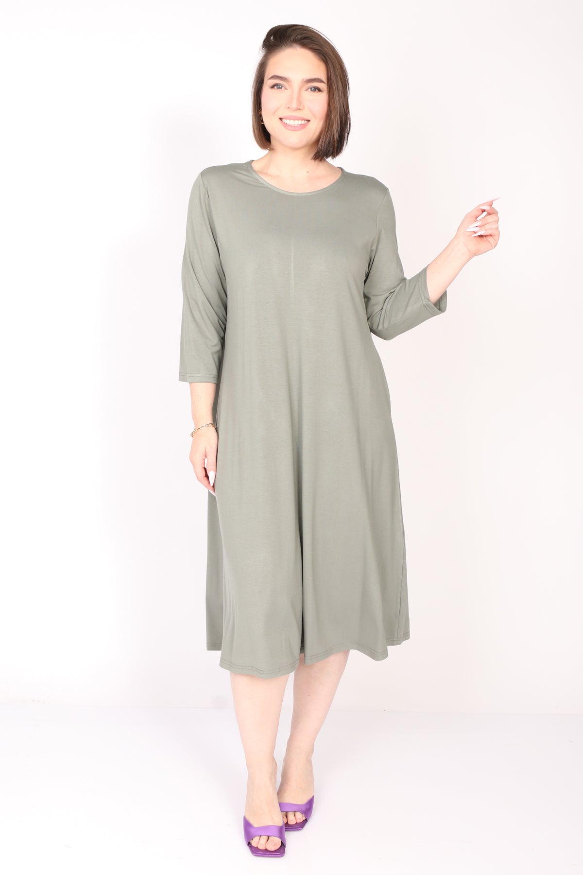- גזרה ישרה, מפתח צוואר עגול, שרוולים המכסים את המרפק