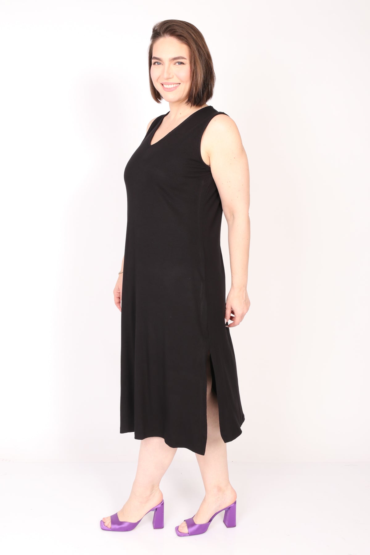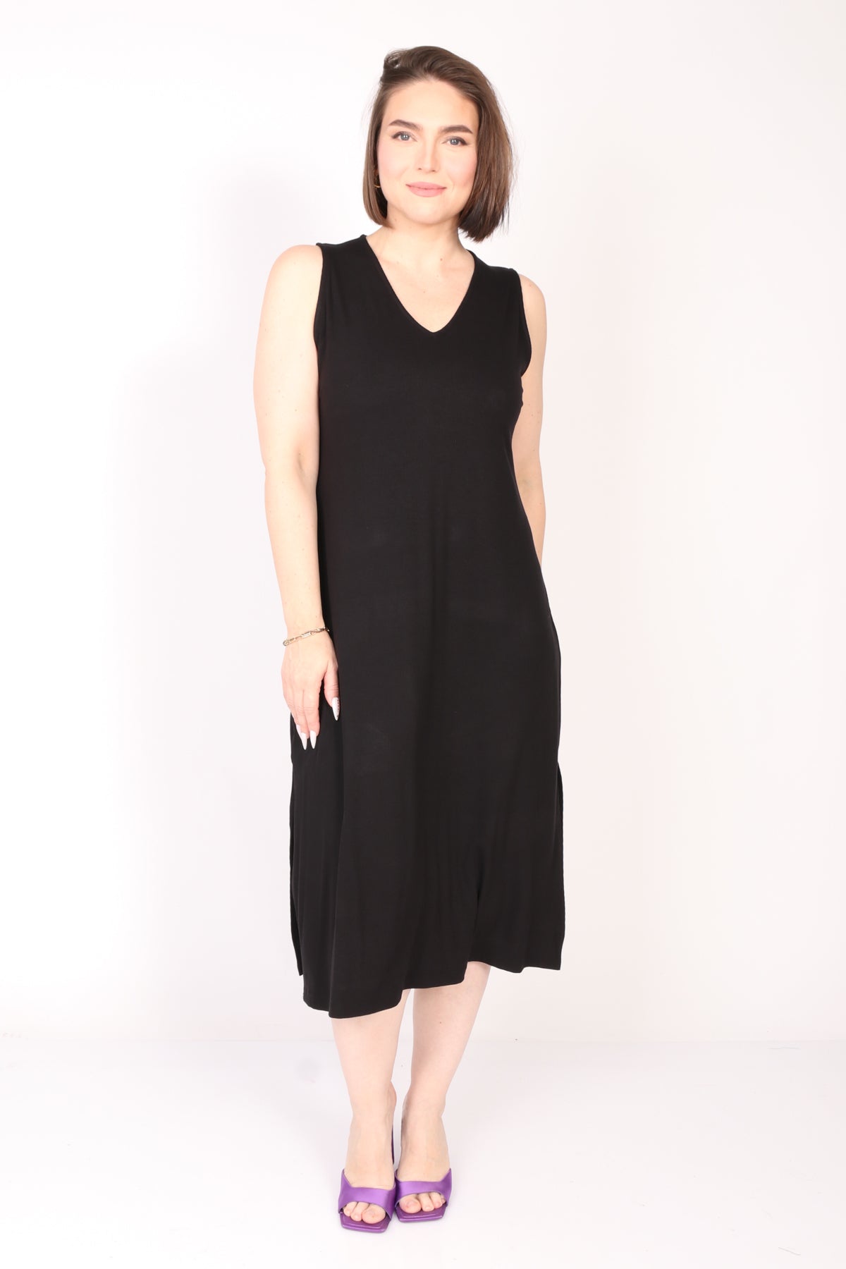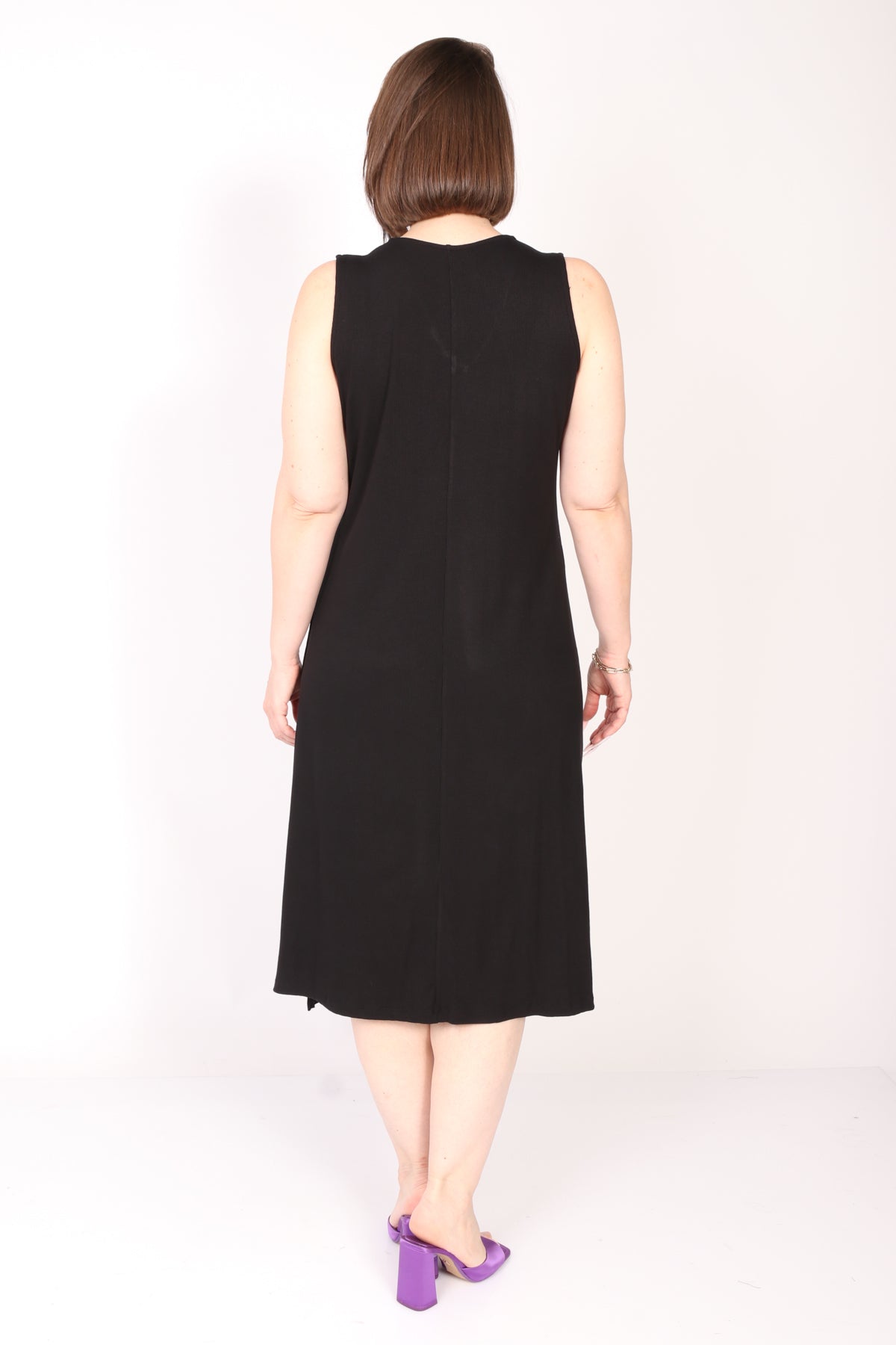 - שמלה קלאסית נטולת שרוולים בגזרת A .ליין מבד ריב