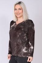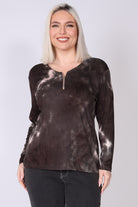 חולצה בגזרה ישרה ונקייה, עשויה בד ויסקוזה גמיש עם דפוס טאי-דאי עדין שמוסיף עניין וסטייל יומיומי. מפתח צוואר עגול עם רוכסן ברזל מעניק טאץ’ עדכני ומאפשר התאמה אישית של המראה, בעוד השרוולים הארוכים שומרים על מראה מוקפד ונוח לאורך כל היום.