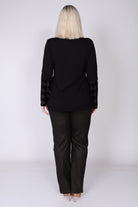 חולצה בגזרה ישרה קלאסית עם שרוולים ארוכים שמעניקה מראה נקי ומחמיא. השרוול מחולק לשני חלקים: חצי מבד החולצה וחצי מבד בטקסטורת משולשים קטיפה, שיוצר ניגוד מרשים ועדין. מפתח הצוואר בצורת V מוסיף אלגנטיות ועדינות, ומשלים את המראה הנשי והמתוחכם.