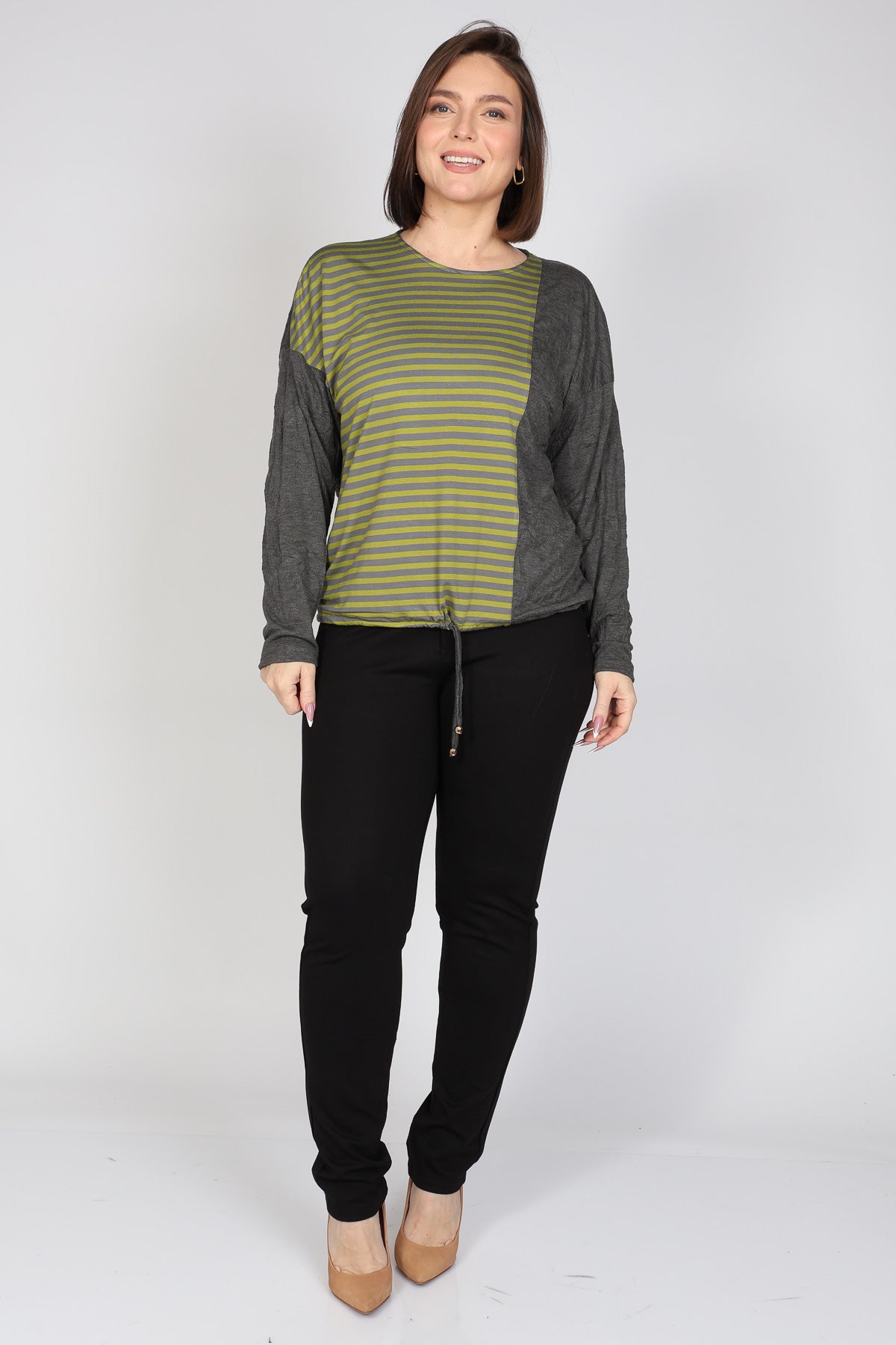 - חולצת משולבת עם דפוס פסים בגזרת אובר-סייז