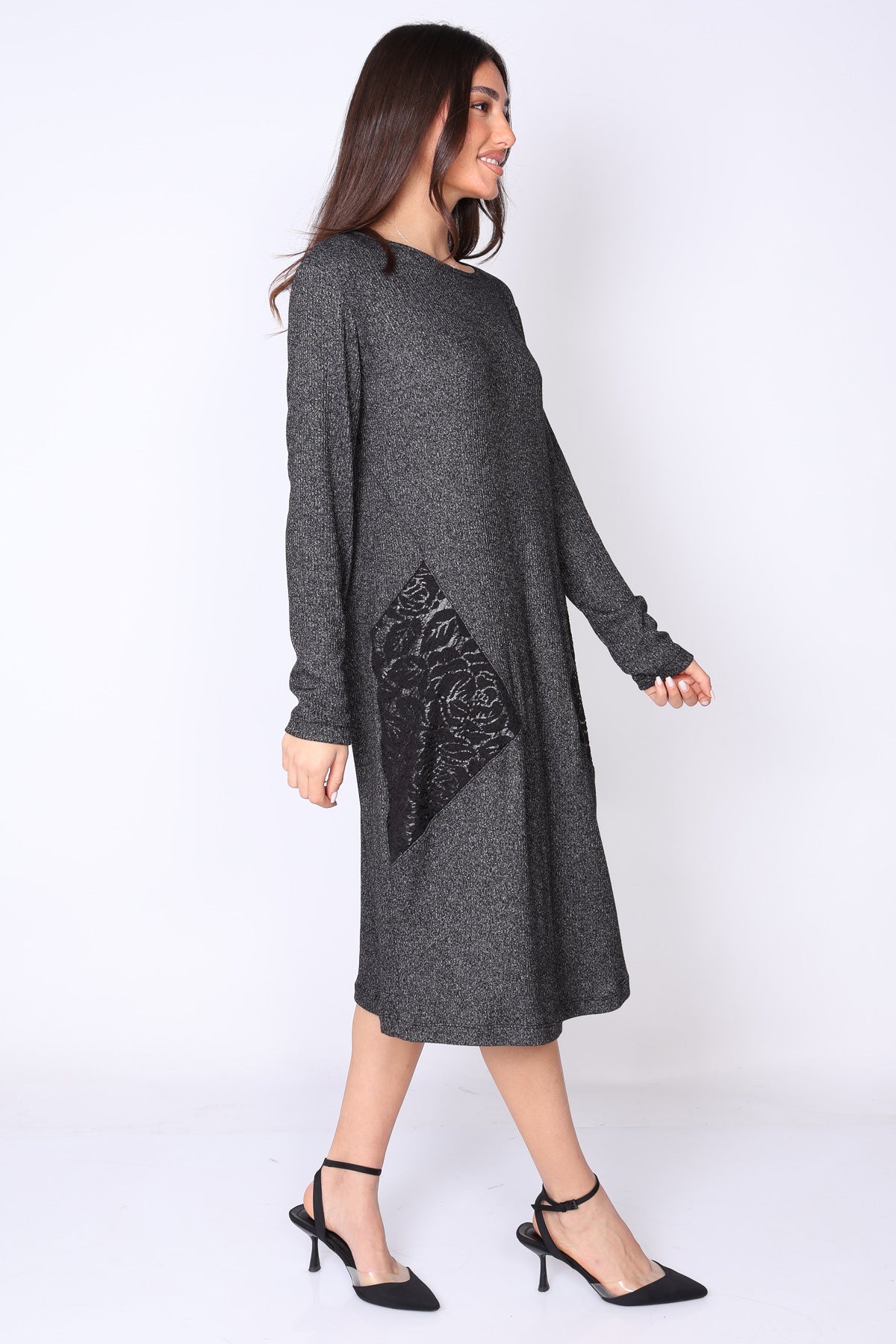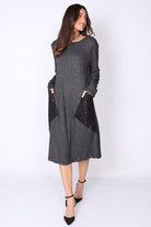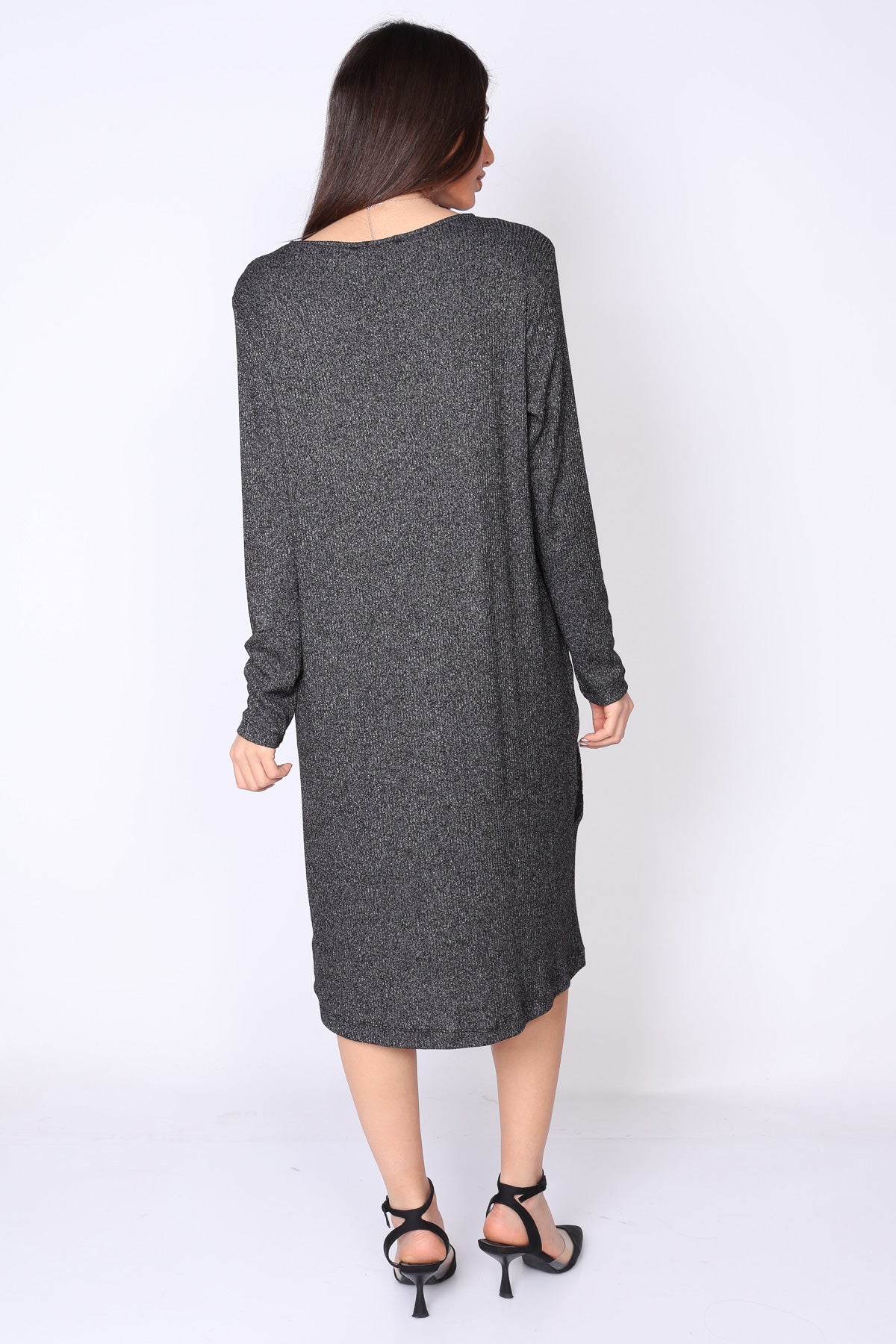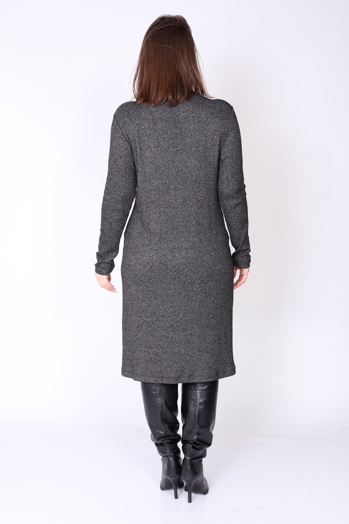 שמלת סריג בגזרה מתרחבת קלות שנשפכת על הגוף במראה מחמיא ונינוח.