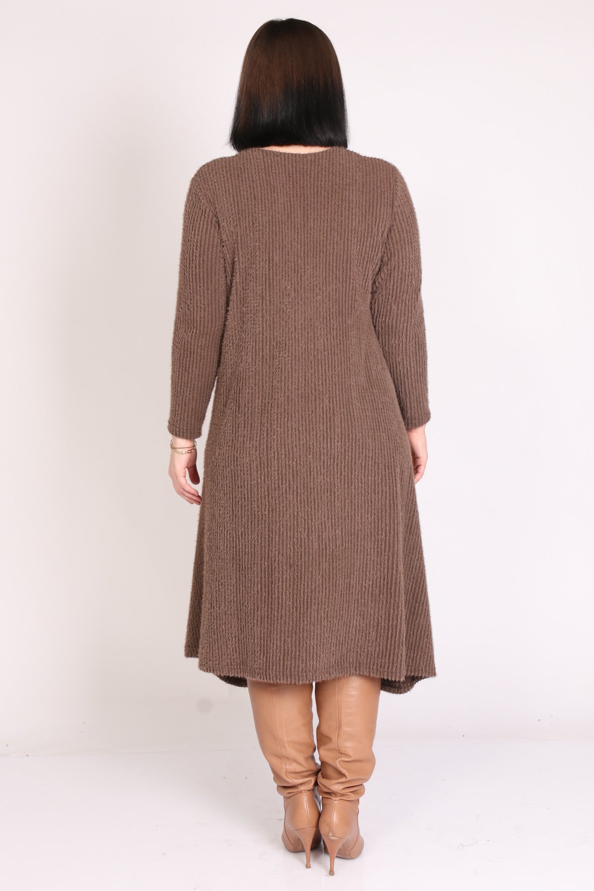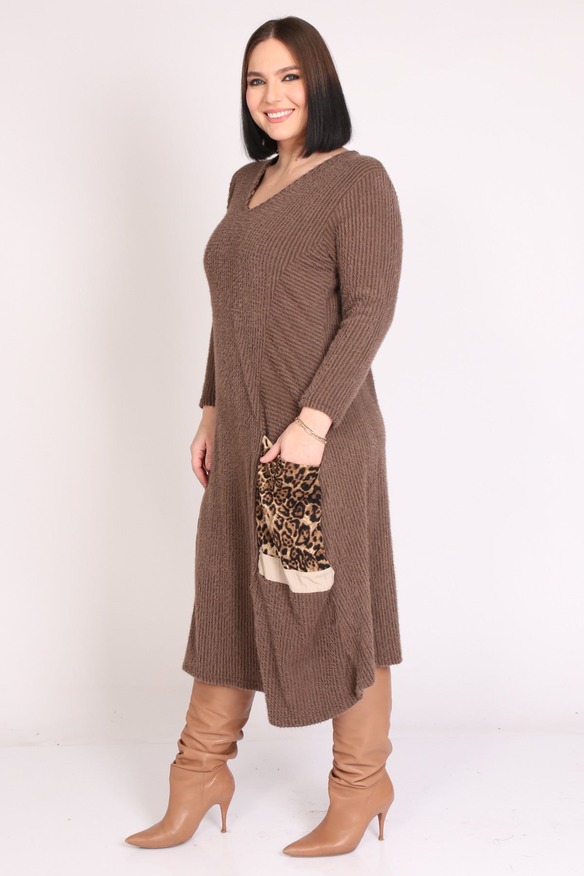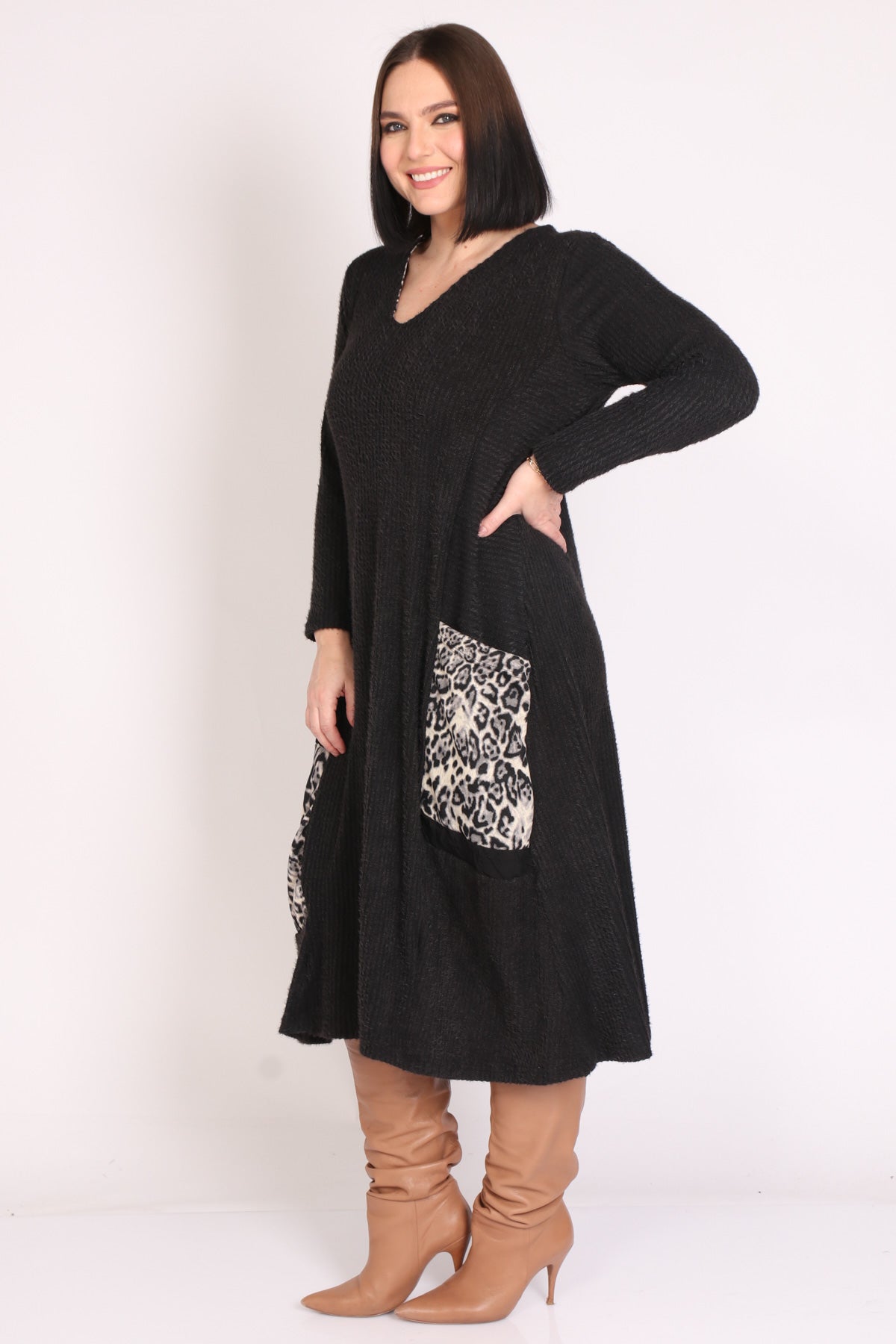 - שמלת סריג בגזרת A-ליין בשילוב בדים בחיבור א-סימטרי בדפוס מנומר