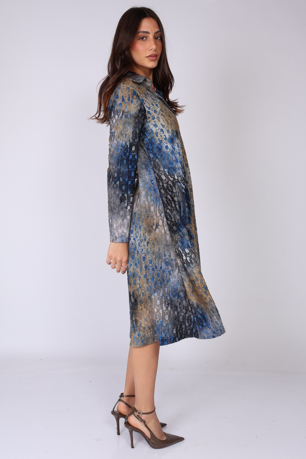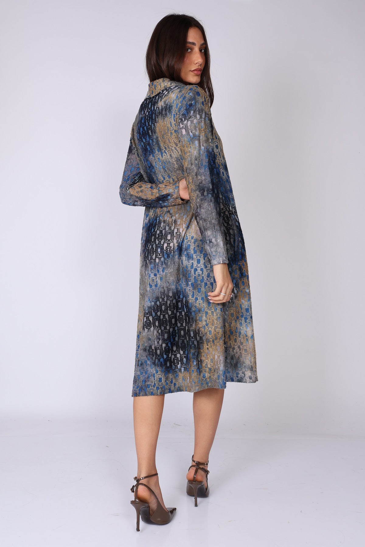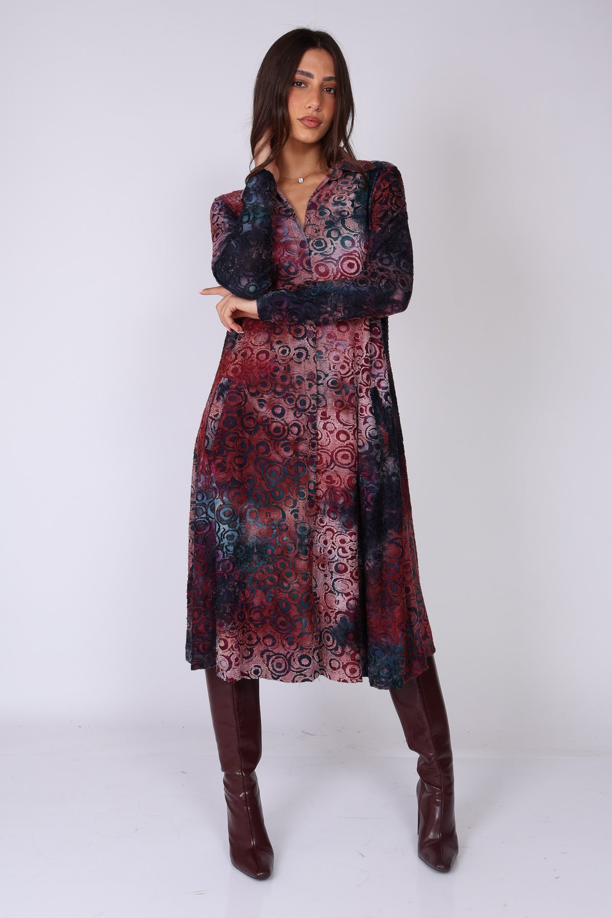 •  שרוול ארוך וסגירת כפתורים לכל האורך השמלה