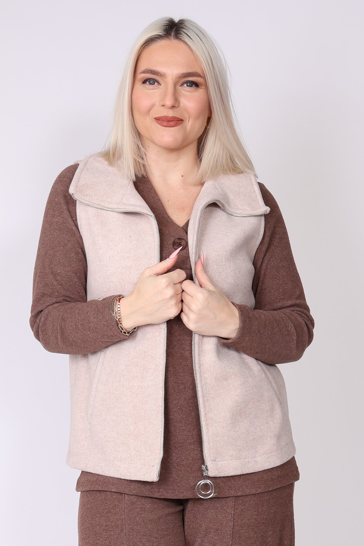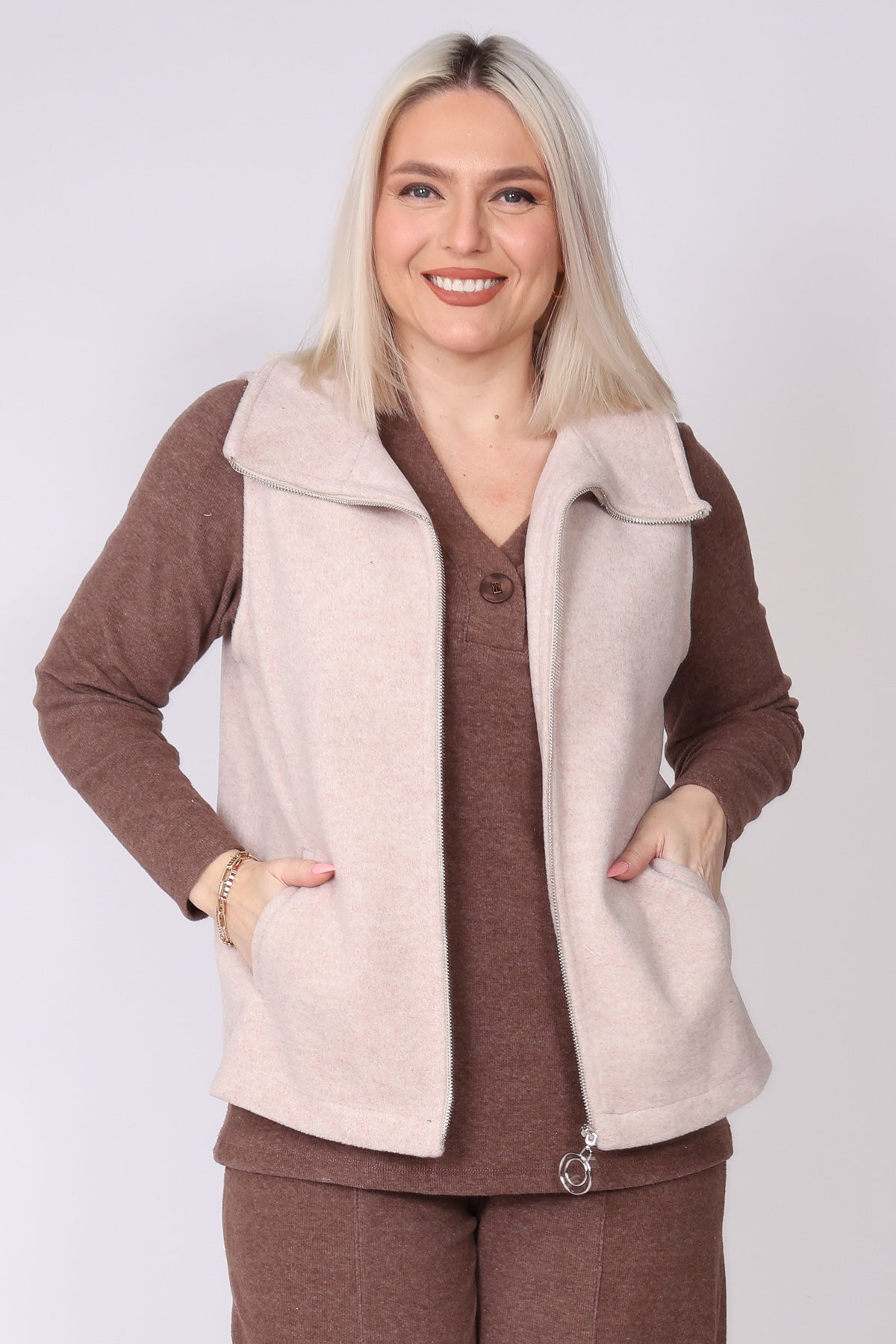 ווסט מבד במראה בלתי-ארוג, עם סגירת רוכסן ברזל וצווארון מוארך שמעניק מראה מוקפד ועדכני. הגזרה נוחה ומרווחת, והבד קליל וגמיש - מושלם ללבישה שכבתית בחורף הישראלי. הפריט משתלב בקלות עם כל לוק, בין אם על חולצה קלאסית או סוודר נעים.