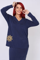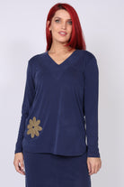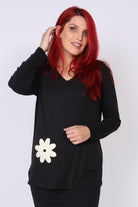 - חולצה מבד נעים ונוח בגזרה ישרה עם עיטור פרח