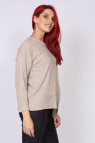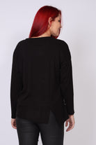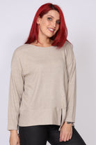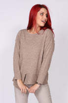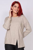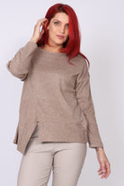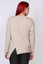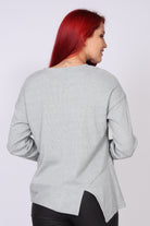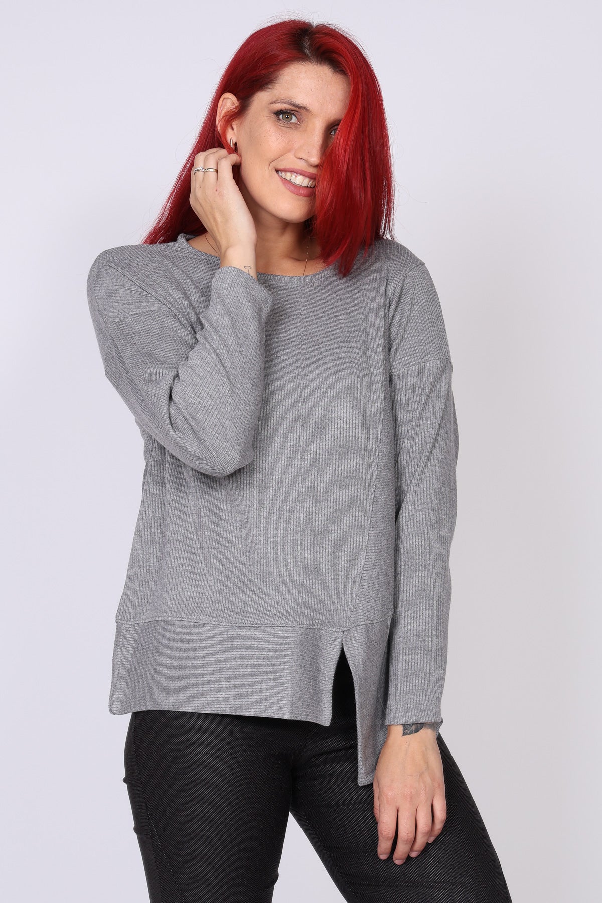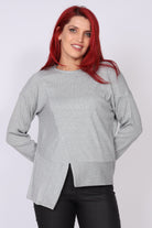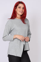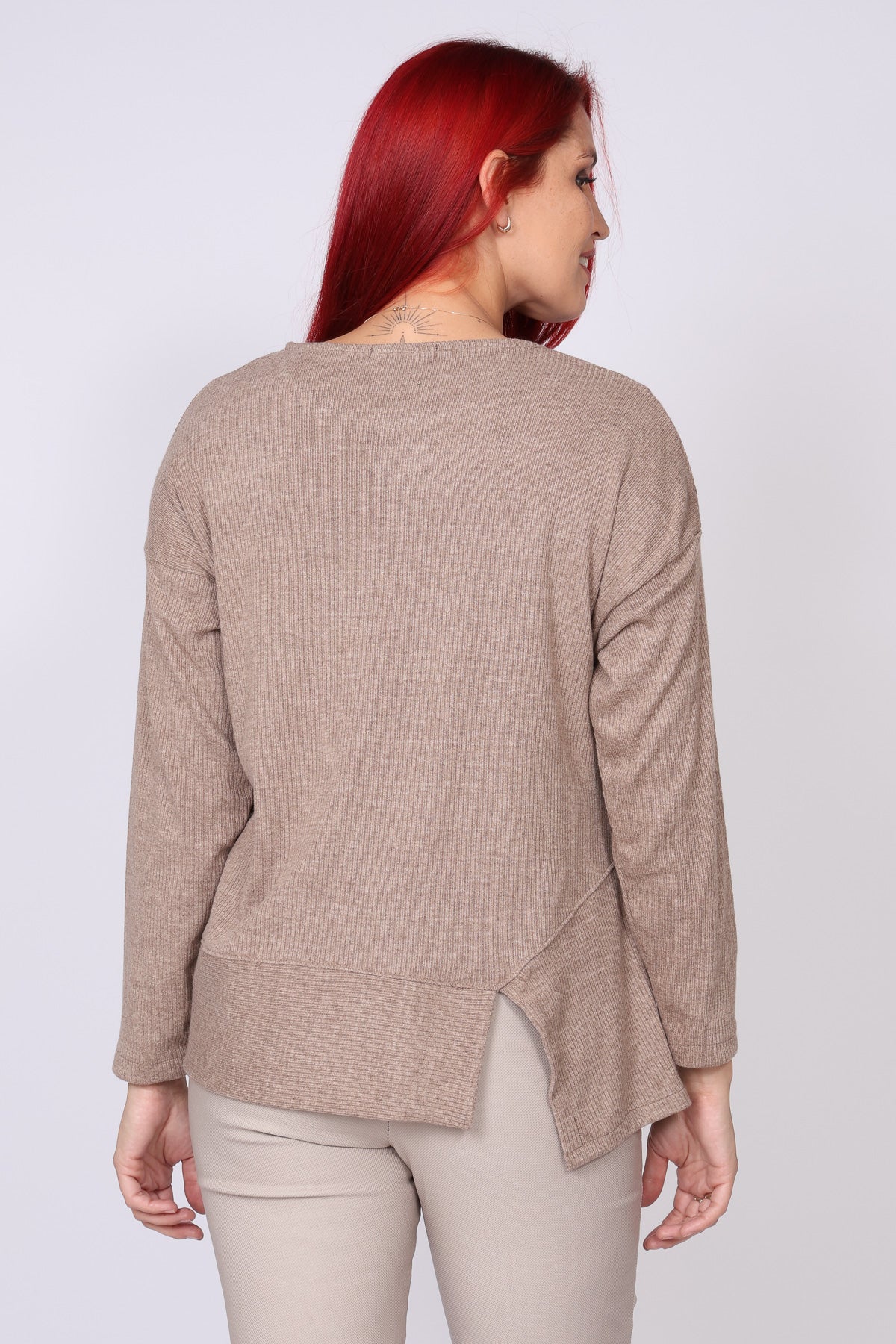 • חולצת סריג ארוכה עם מפתח צווארון עגול