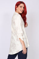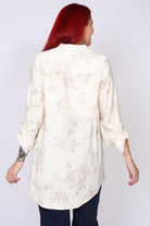 - הדפס פרחים עדין , צווארון סיני וכפתורים בחזית