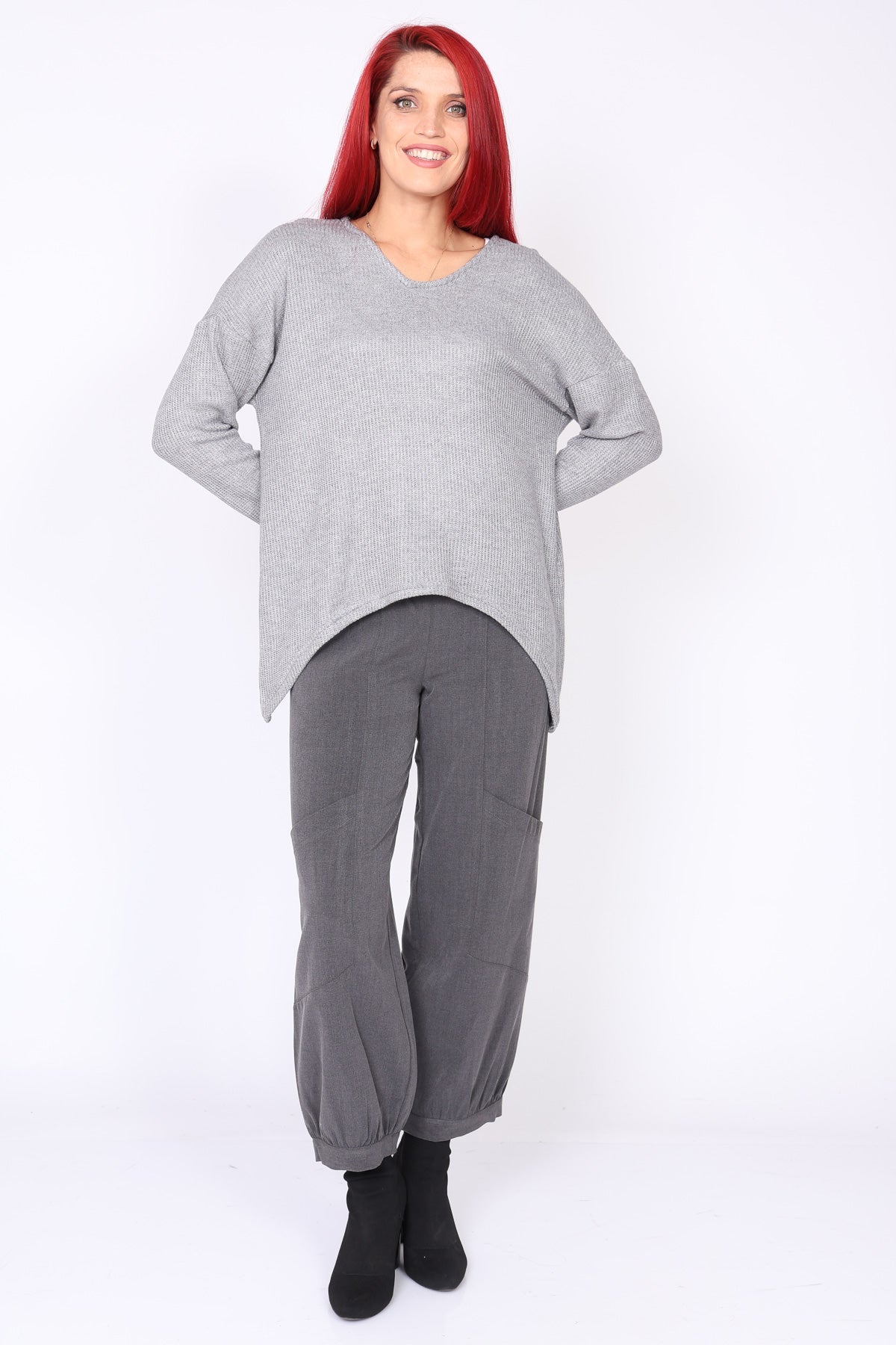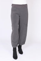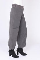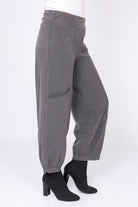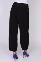 - מכנסיים בגזרה רחבה עם גומי במותן
