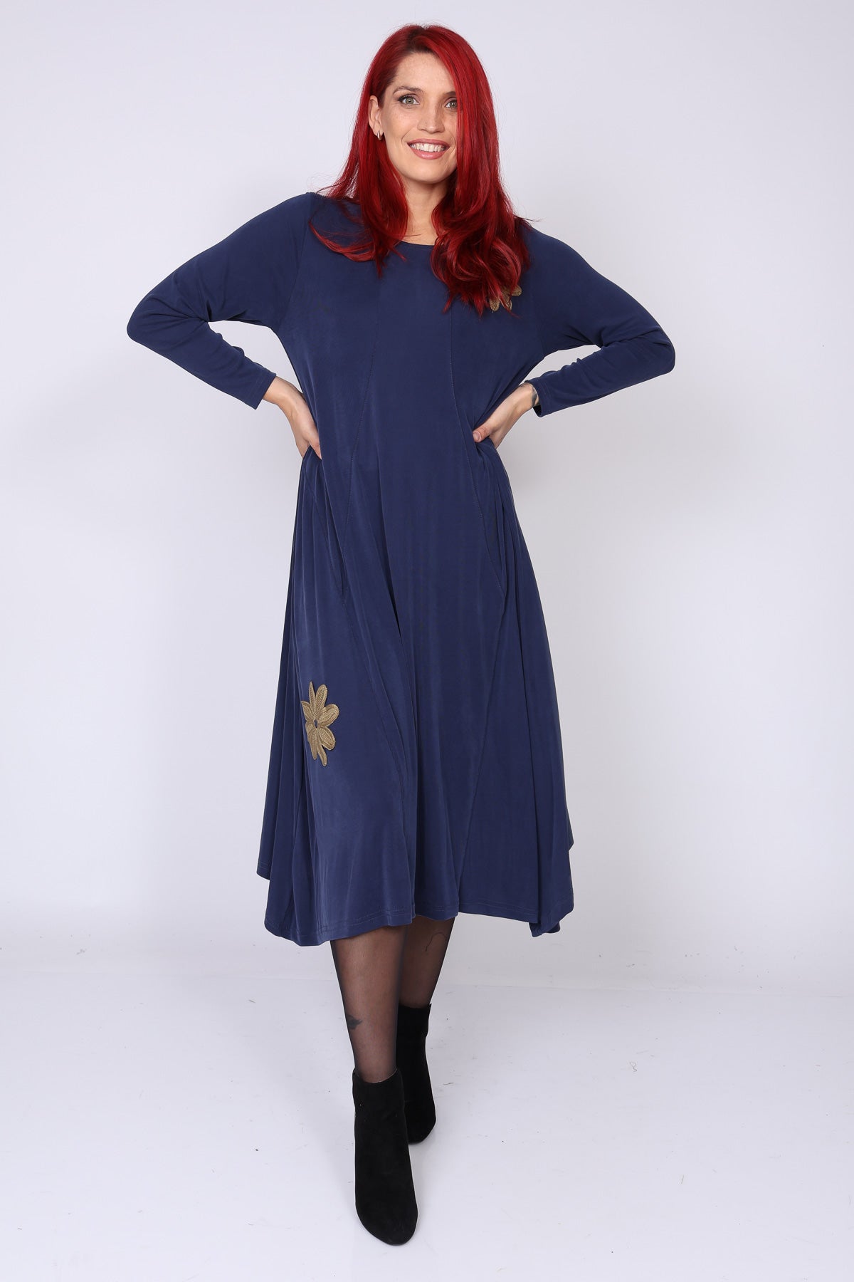 • עיטור פרח תלת-ממדי בחזה ובתחתית השמלה