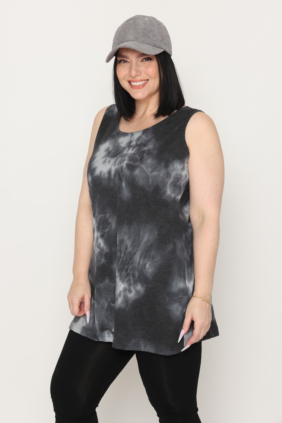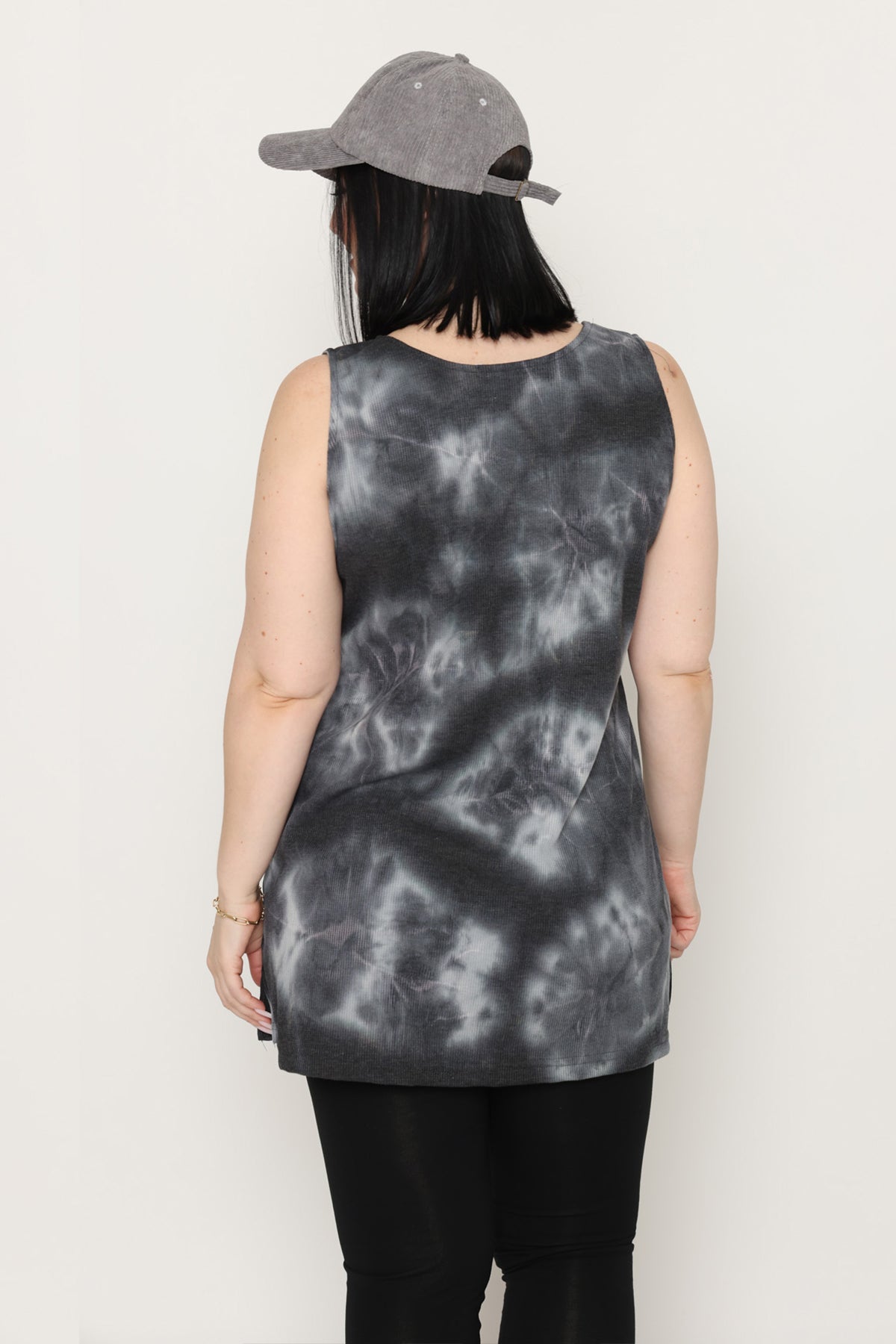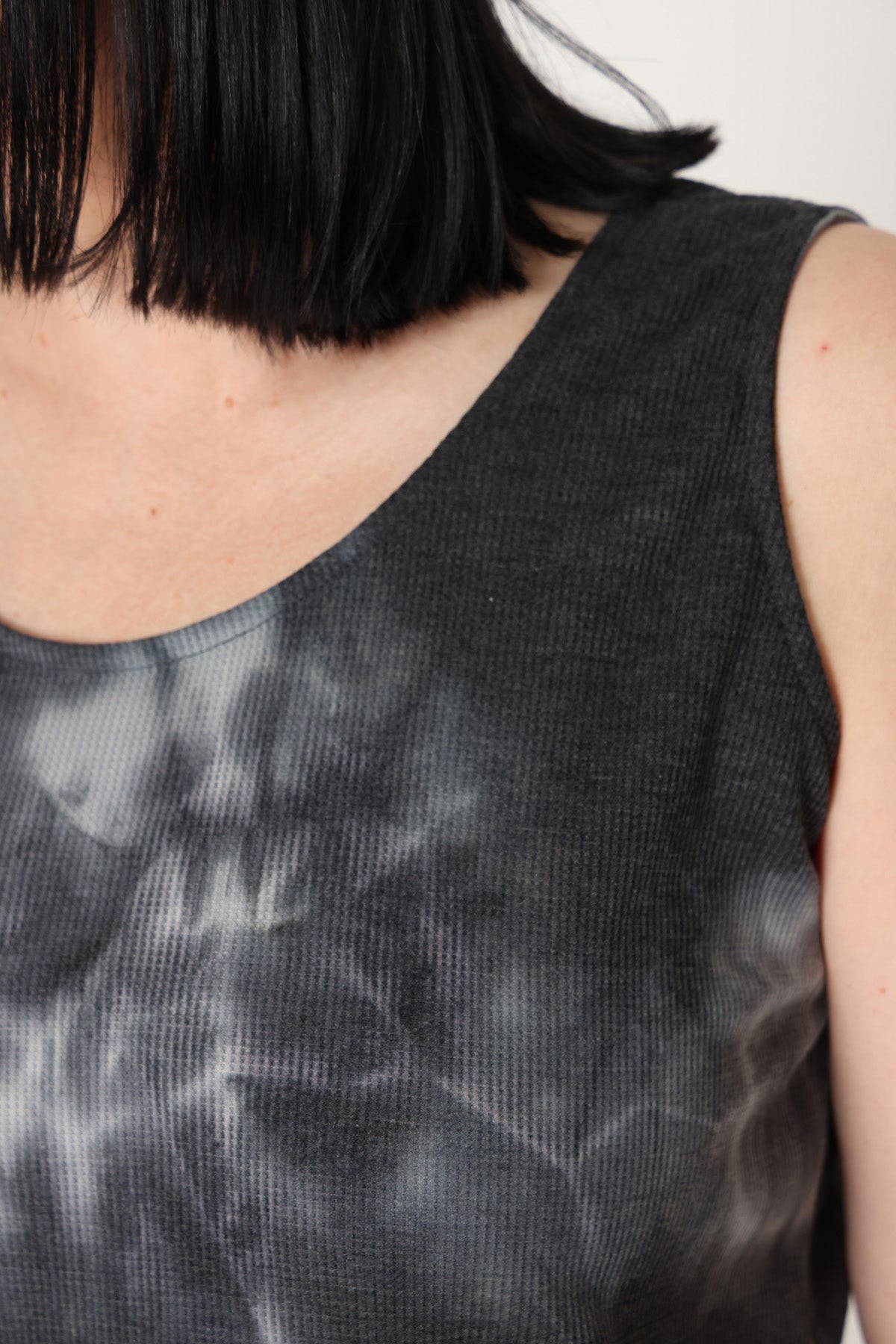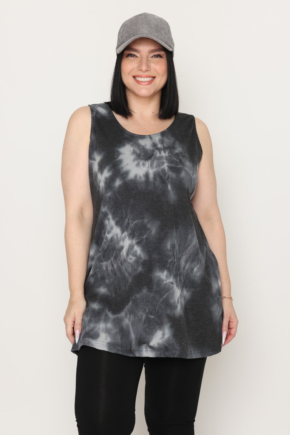 - גופייה בגזרה ארוכה מבד וופל בדפוס טאי-דאי