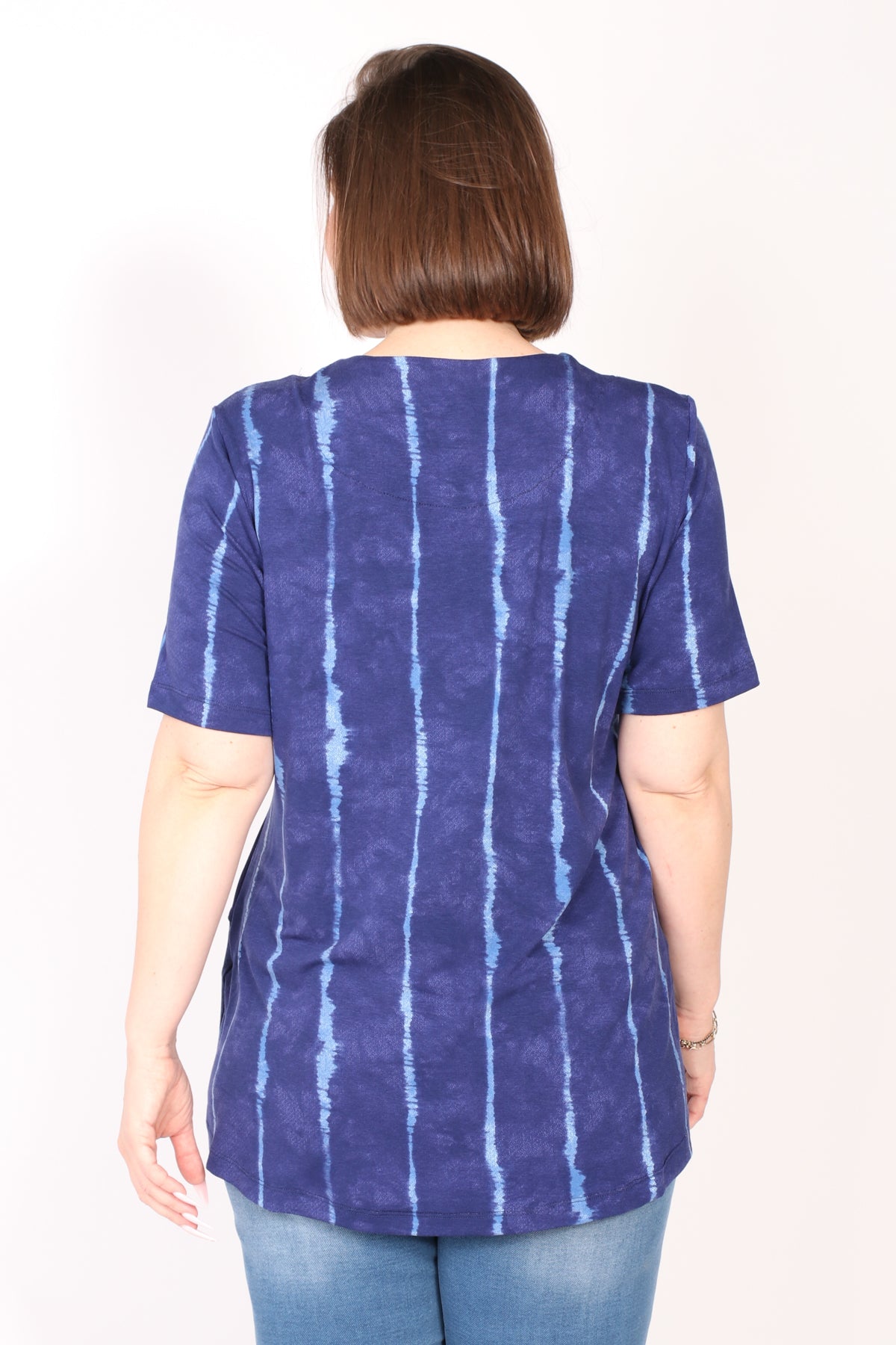 • טוניקת משולבת בד פסים טאי-דאי, בחיבור אנכי ואורכי מקו המותן ומטה עם שני כיסים