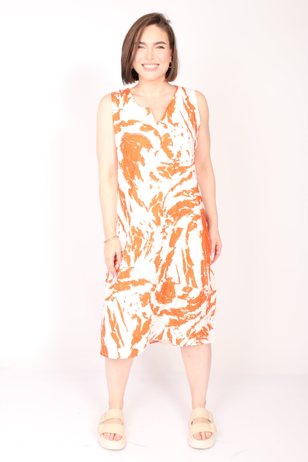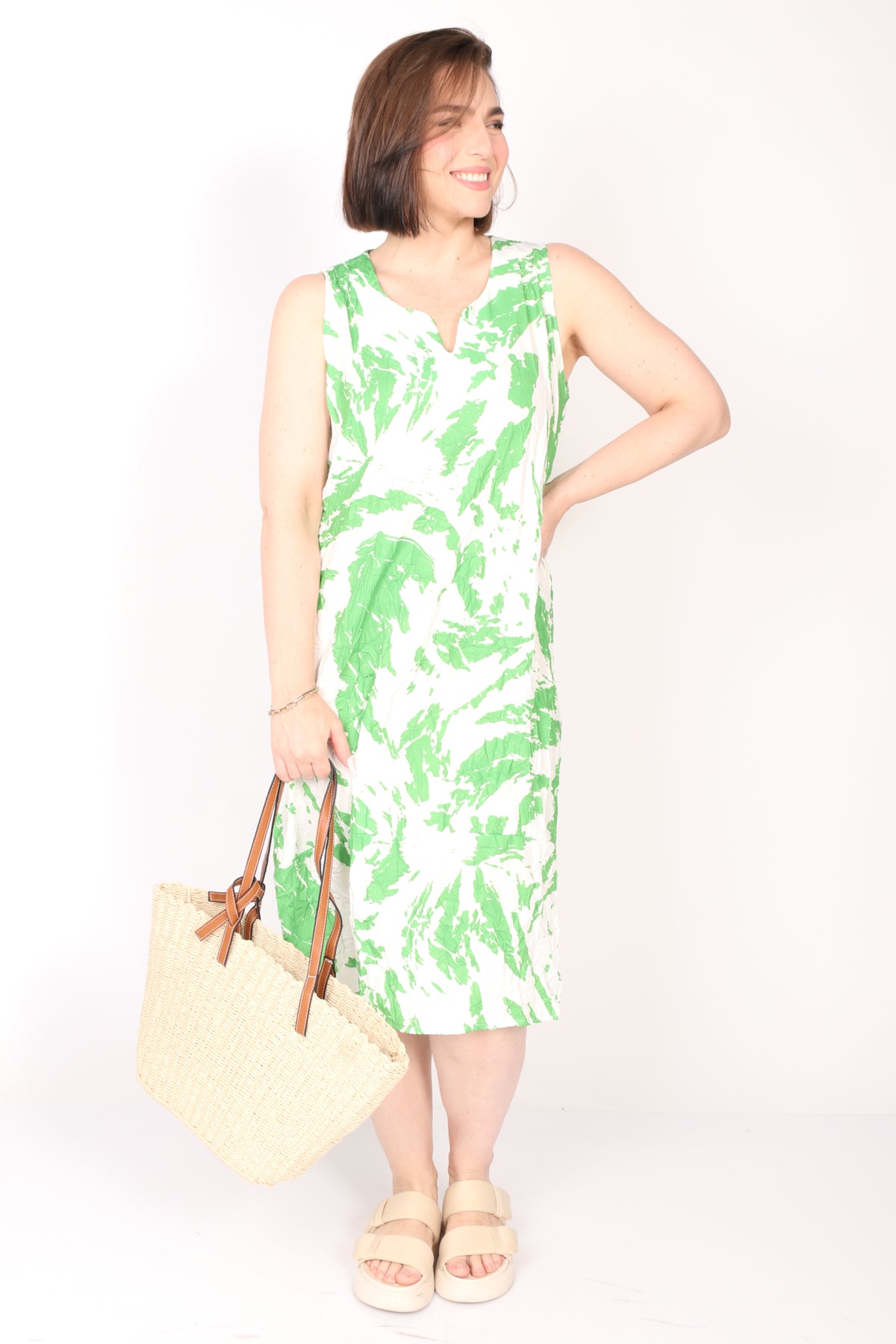 - שמלת גופייה מבד אריג נעים, בדפוס במראה קייצי ומרענן