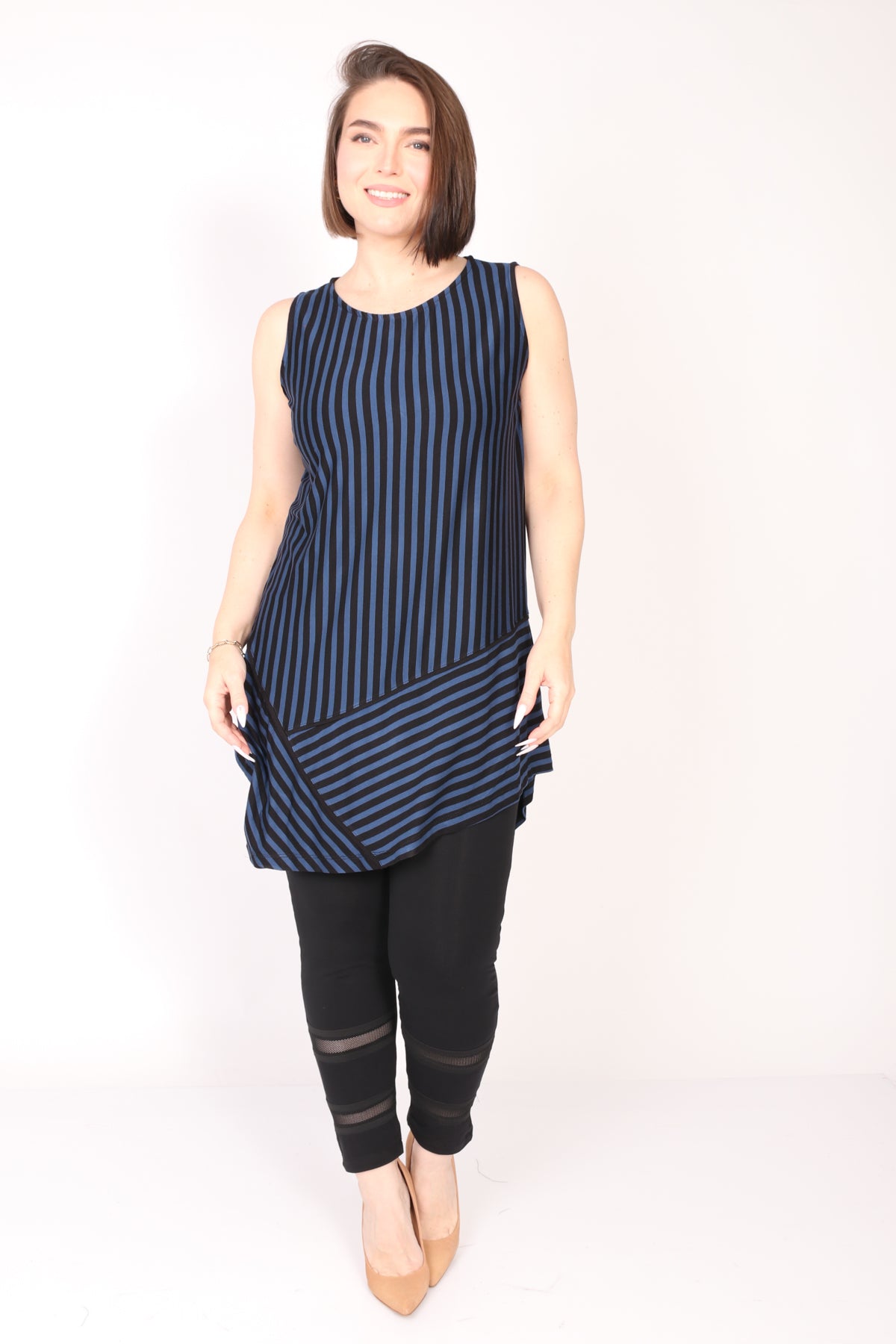 - טוניקת גופייה מבד פסים, בחיבור אלכסוני מקו המותן ומטה