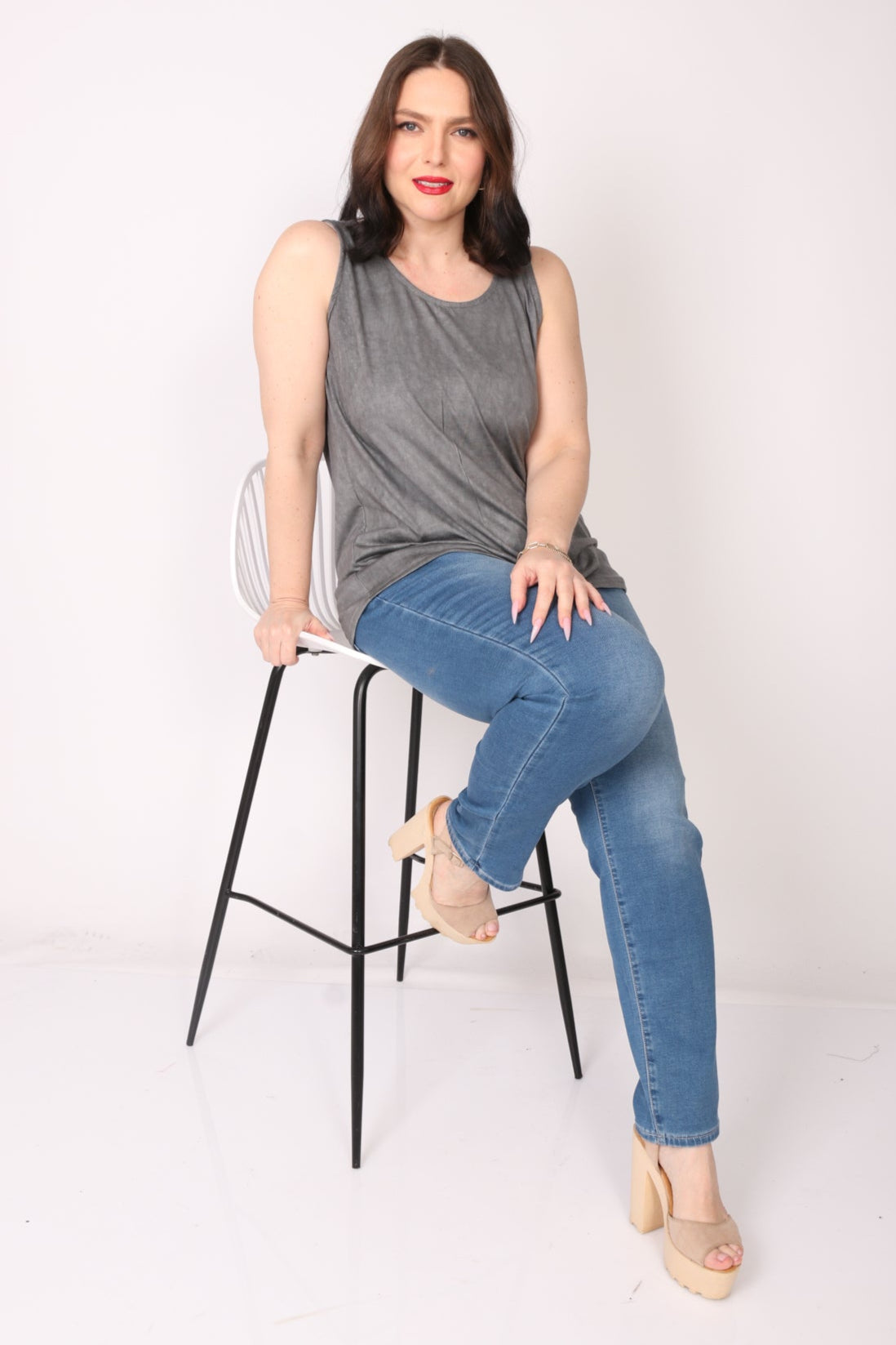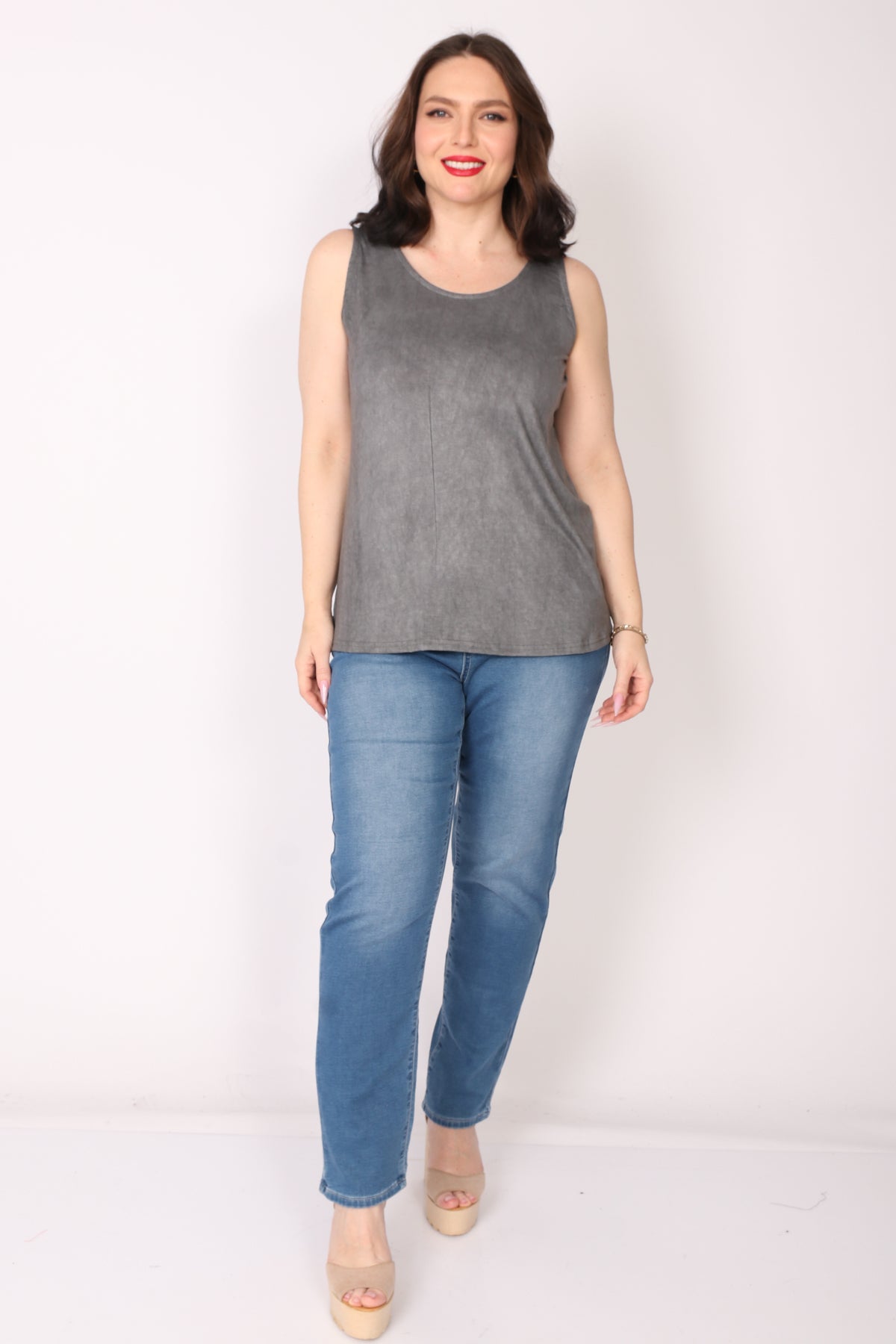 - גופייה בגזרה ארוכה מעט, במראה טאי-דאי