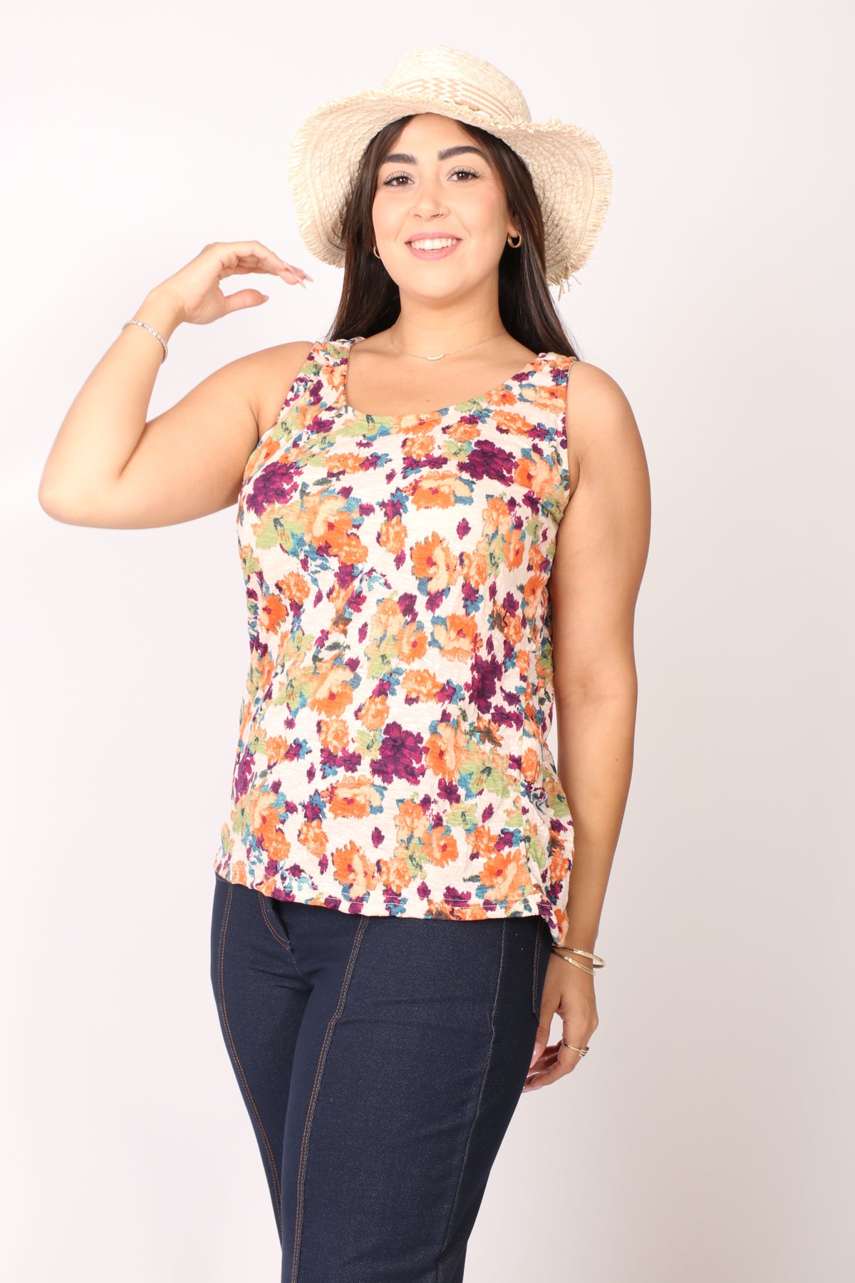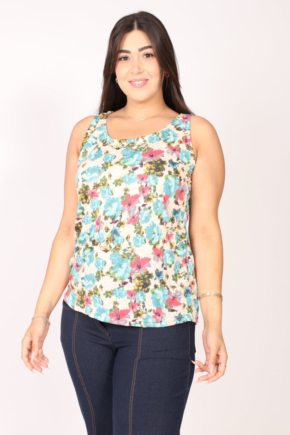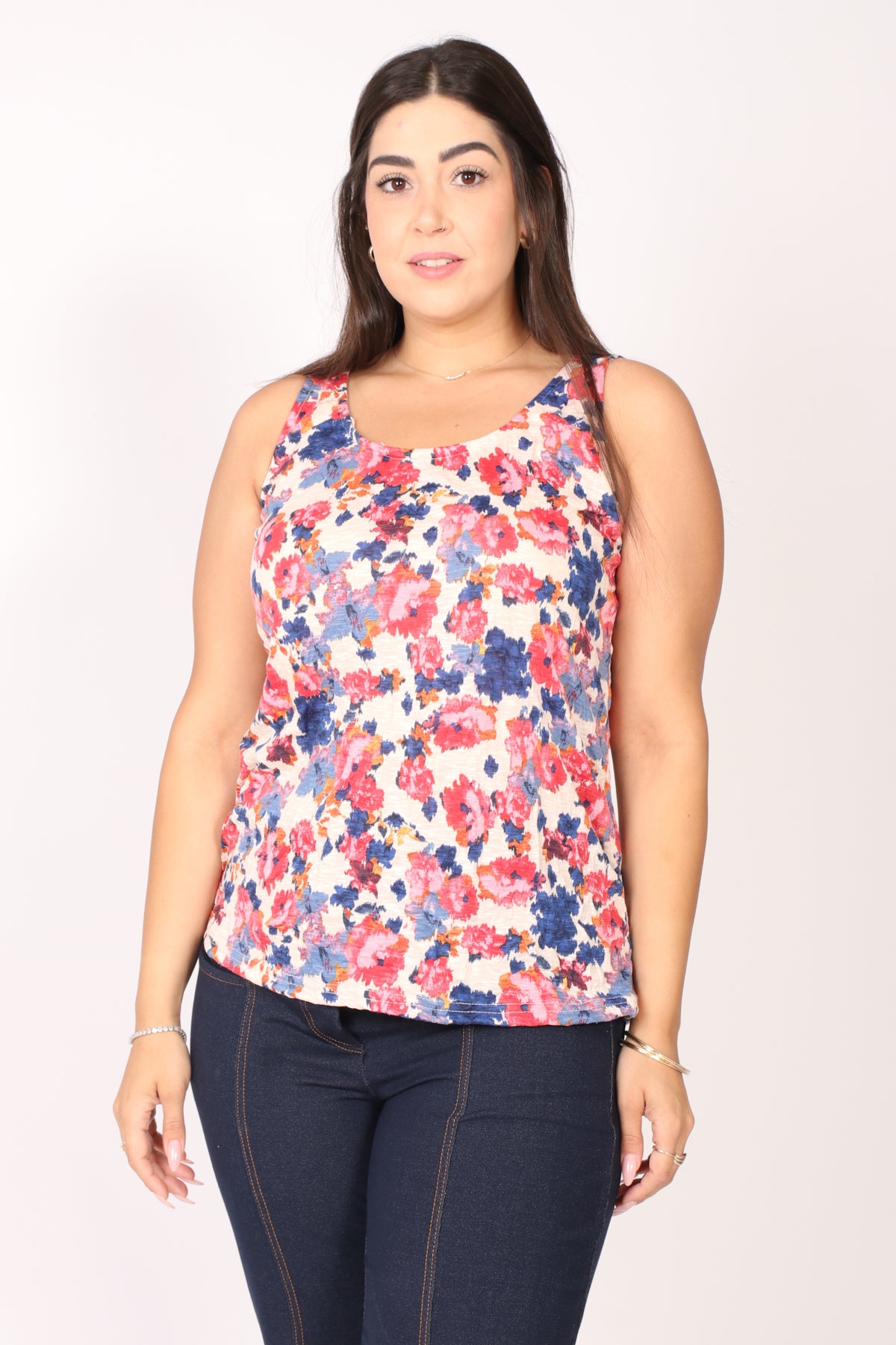 - גופייה בגזרה ישרה עם דפוס פרחים