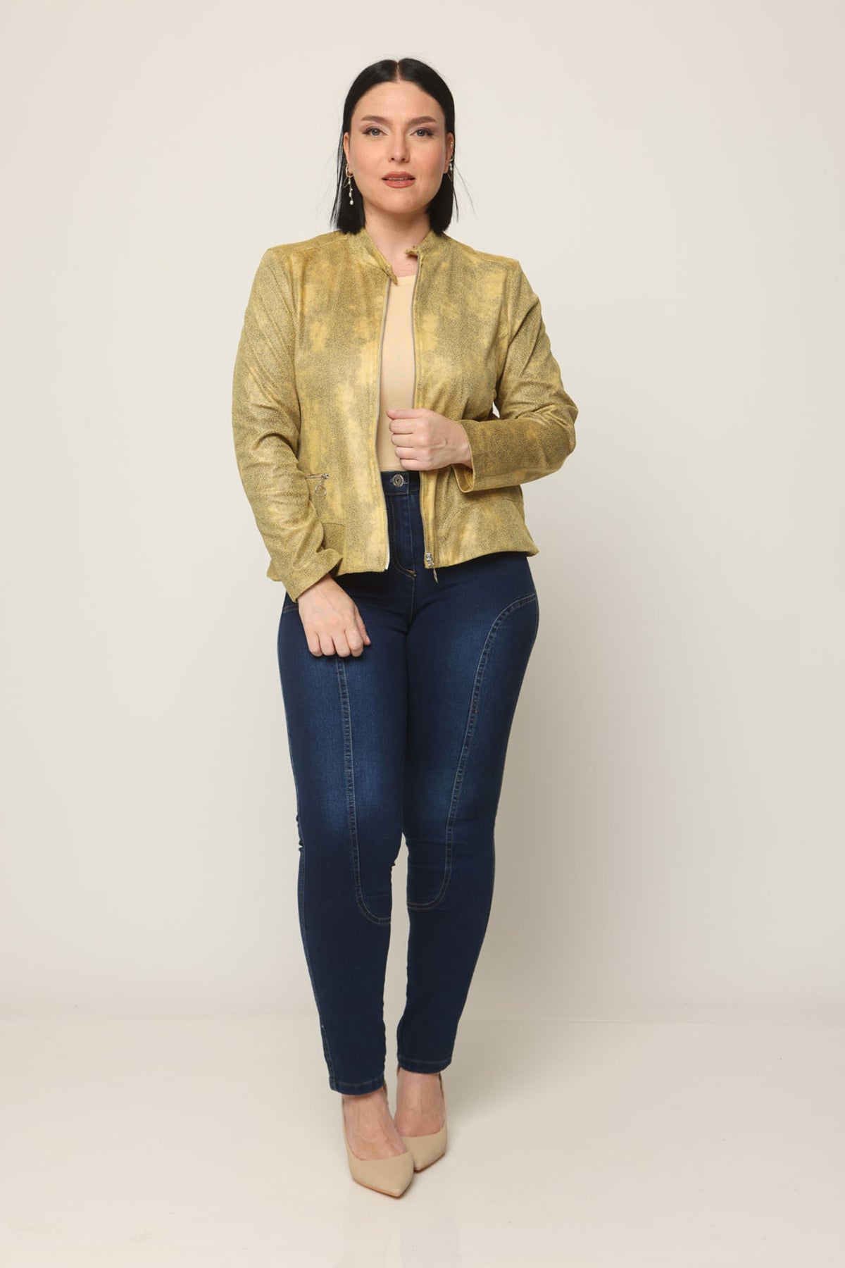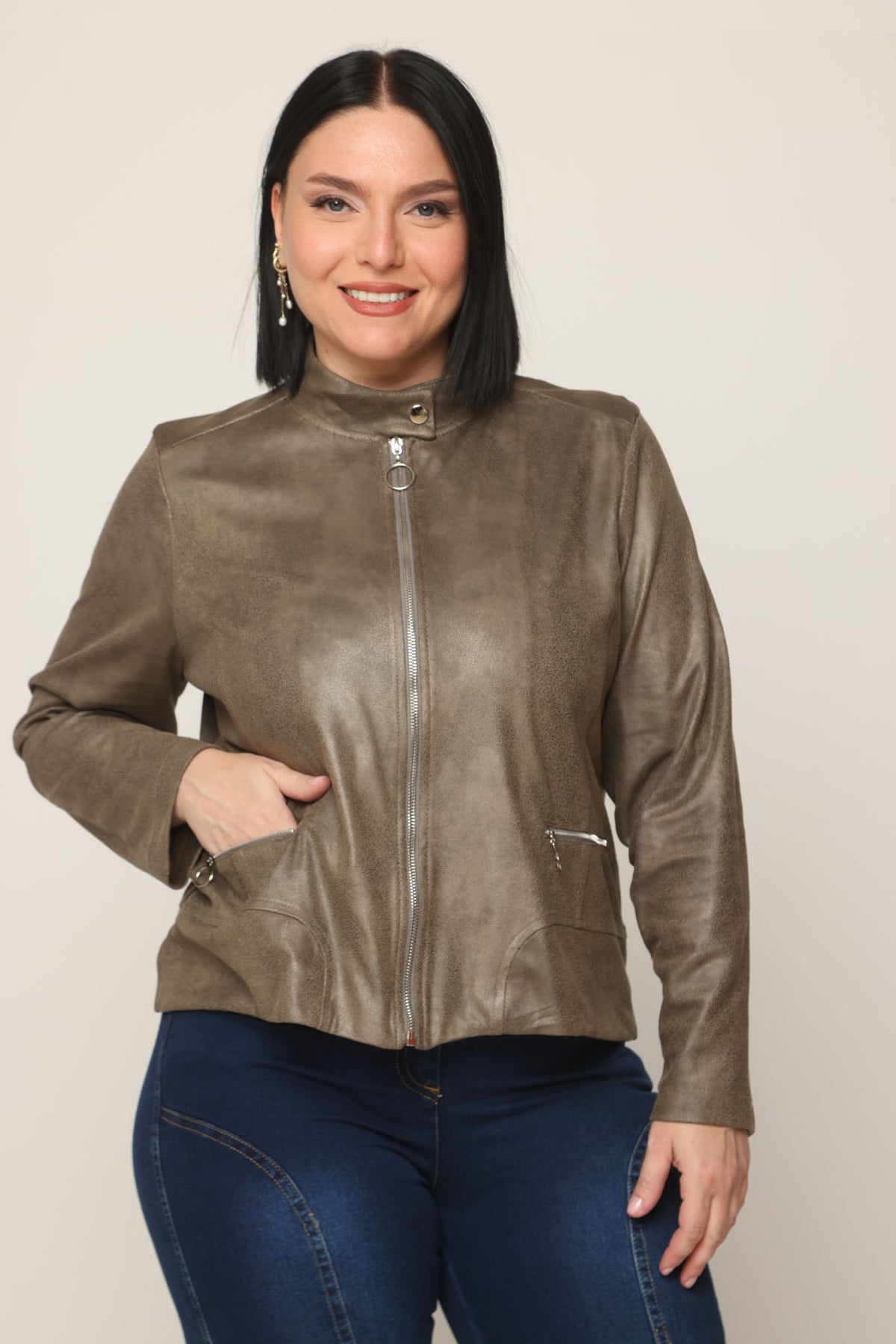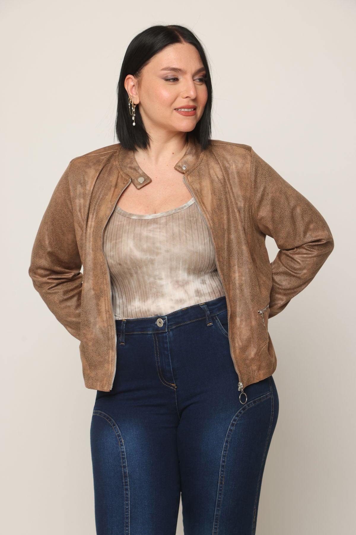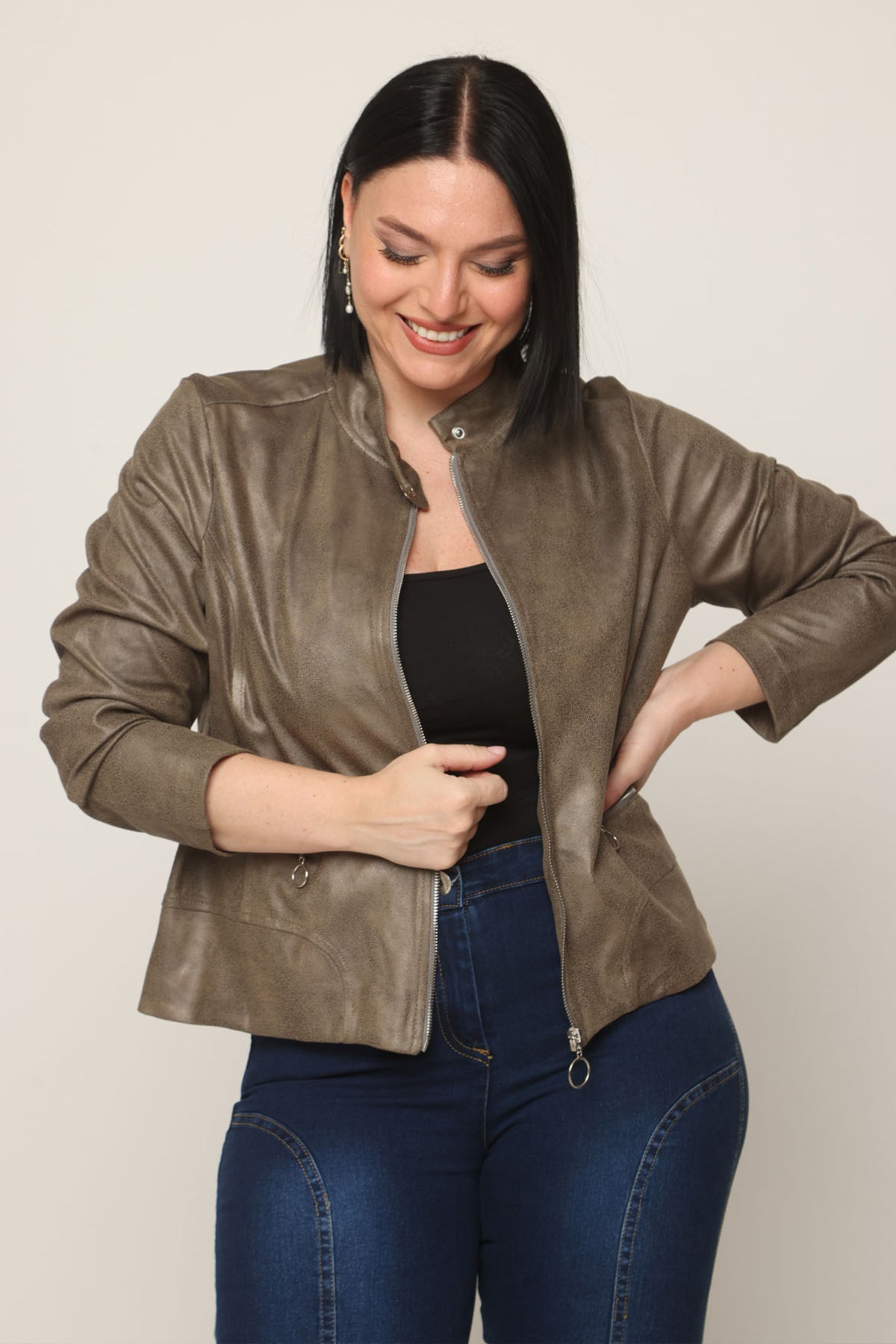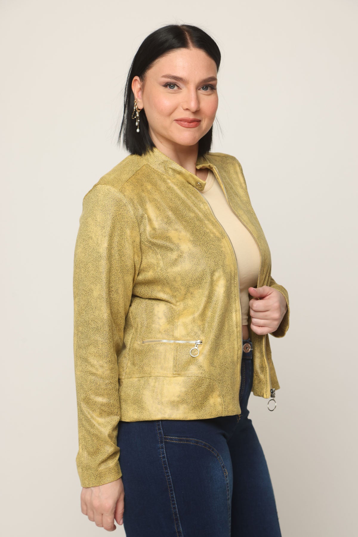 ג’קט מבד דמוי עור בעל טקסטורה, הנסגר באמצעות רוכסן ברזל קדמי. לג’קט כיסים עם סגירת רוכסן ברזל וסגירת כפתור בצווארון