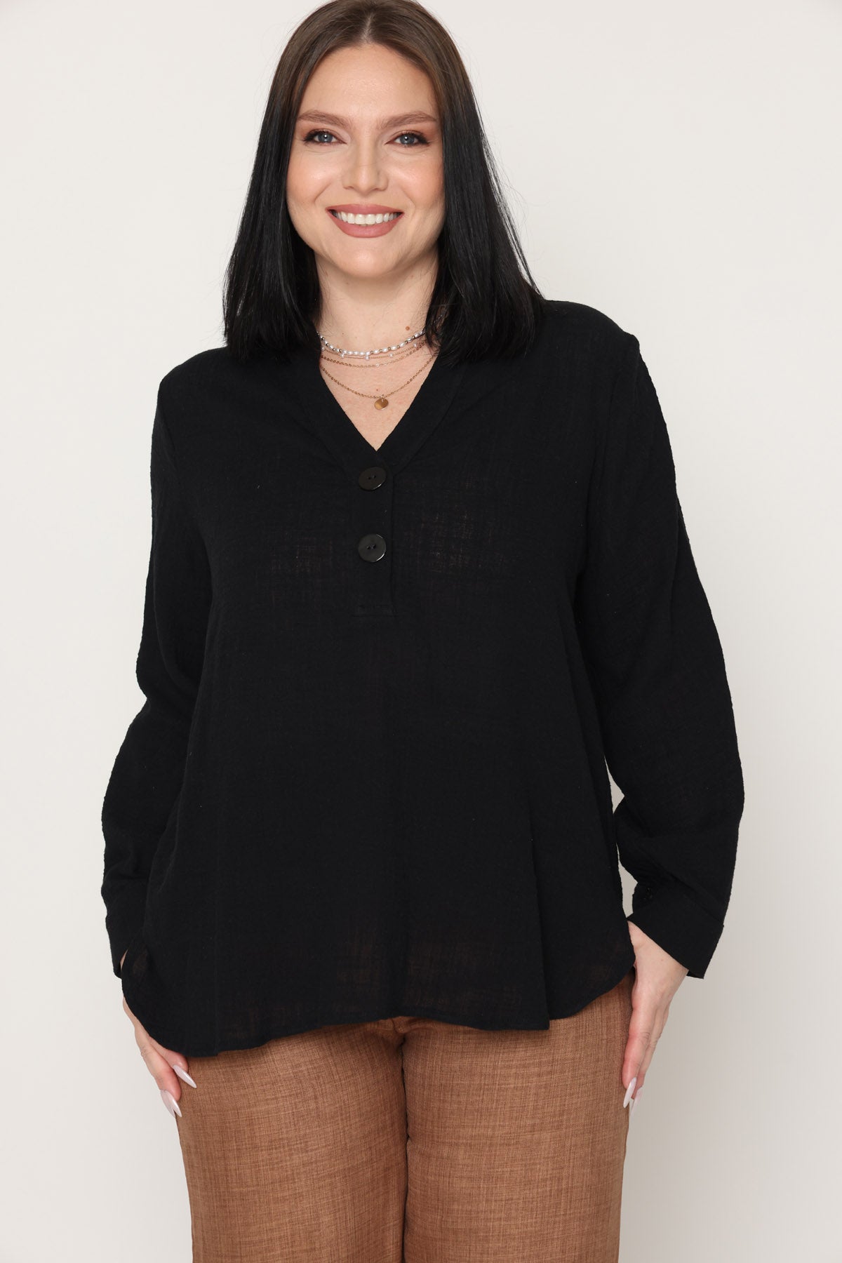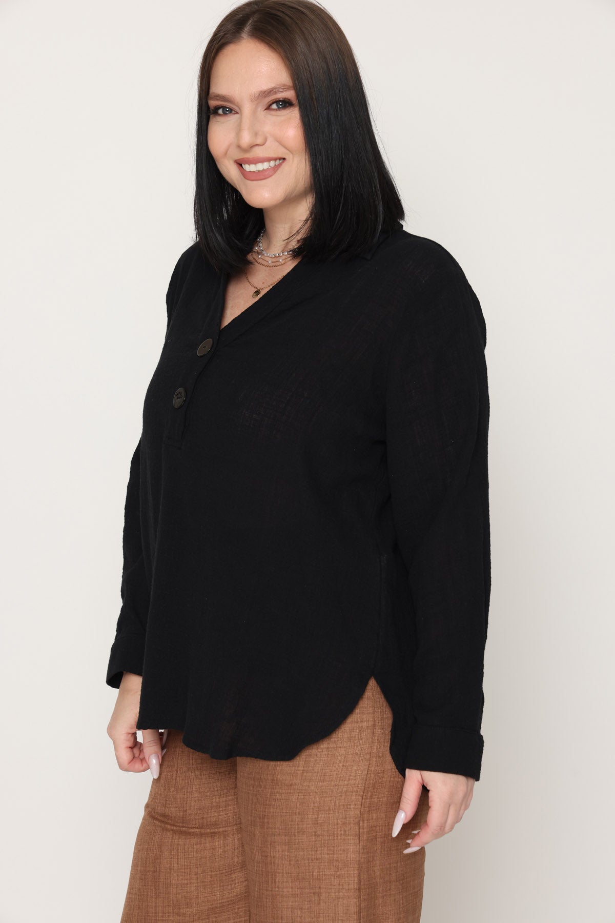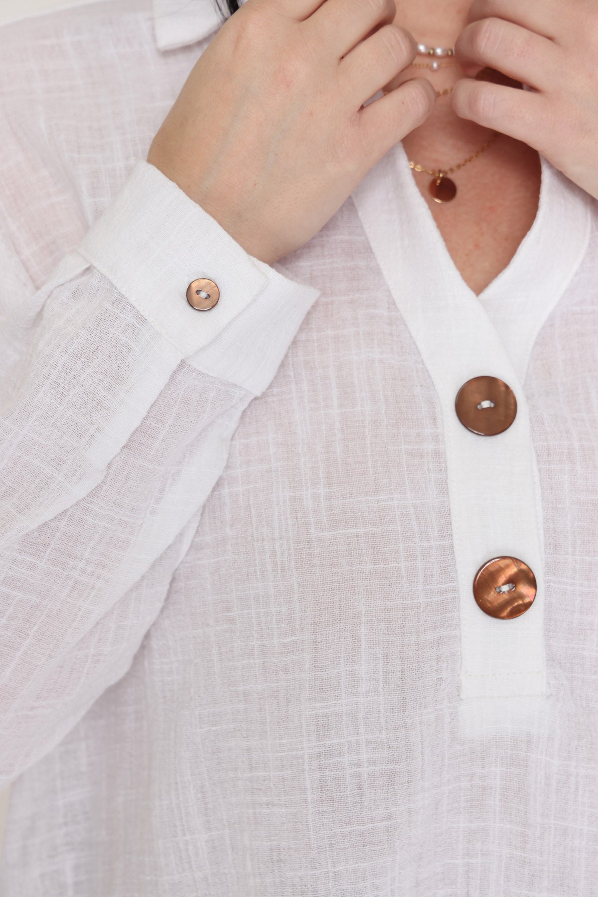 - חולצת כותנה עם צווארון פולו ושני כפתורים