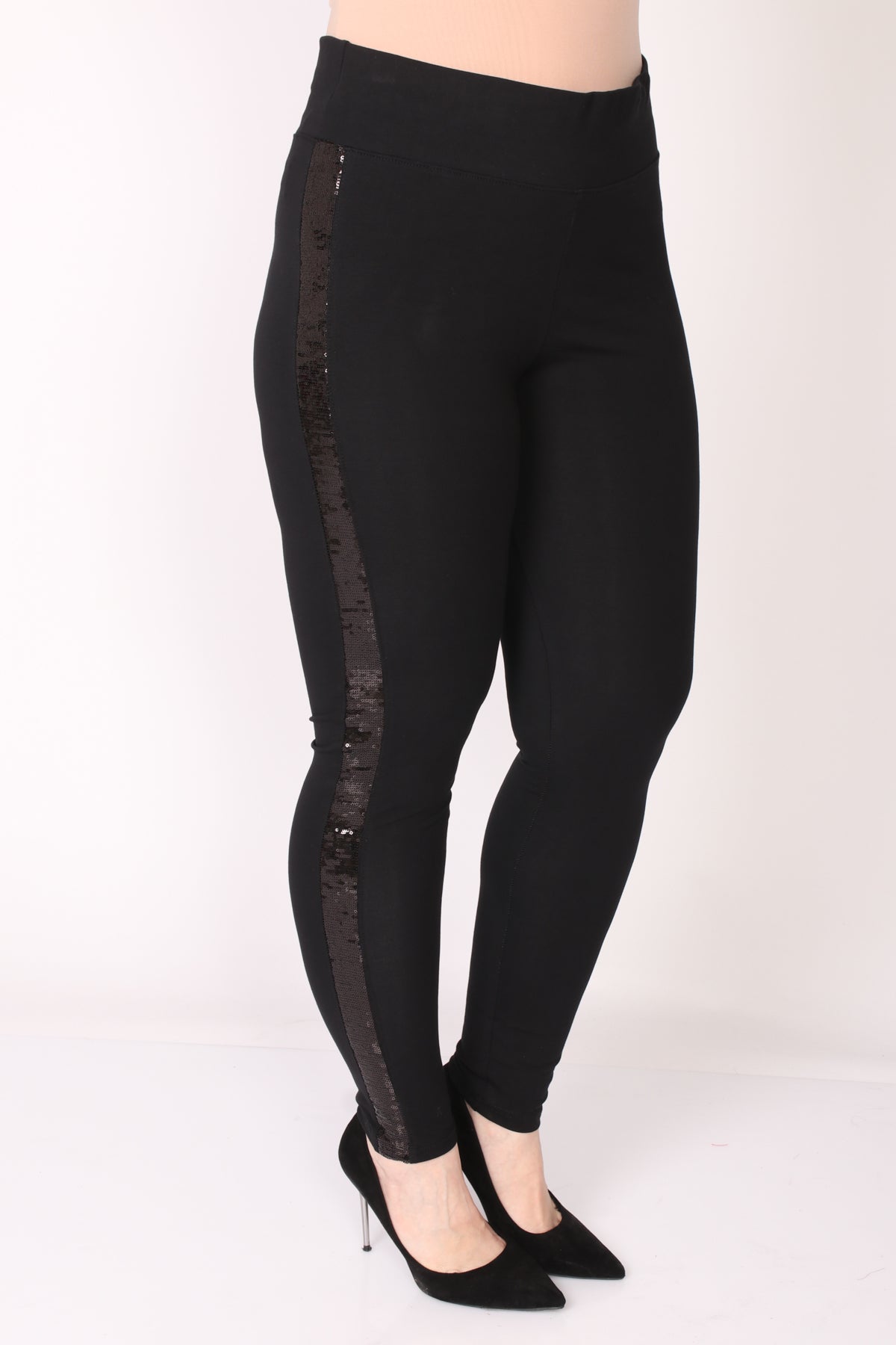 - טייץ עם גומי במותן בעיטור פס פאייטים לכל האורך