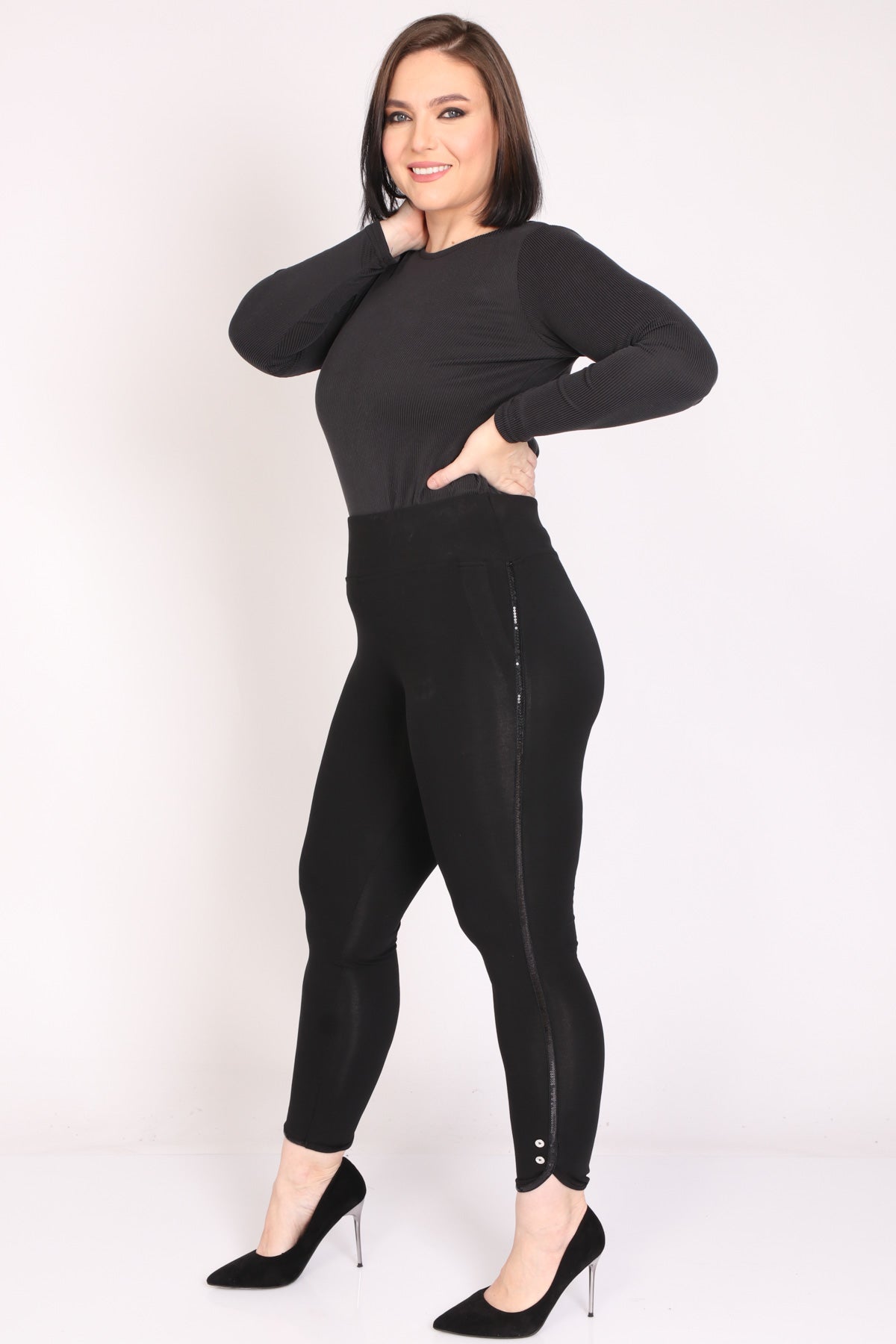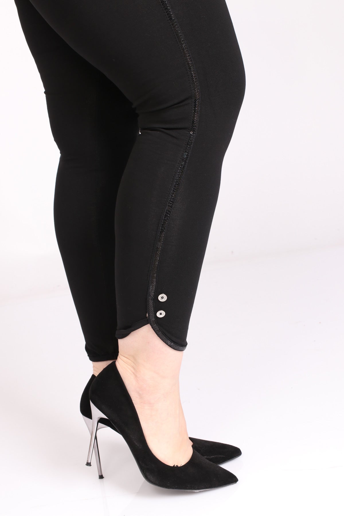 - טייץ עם גומי במותן בעיטור פס פאייטים לכל האורך ושני כפתורים דמוי יהלום