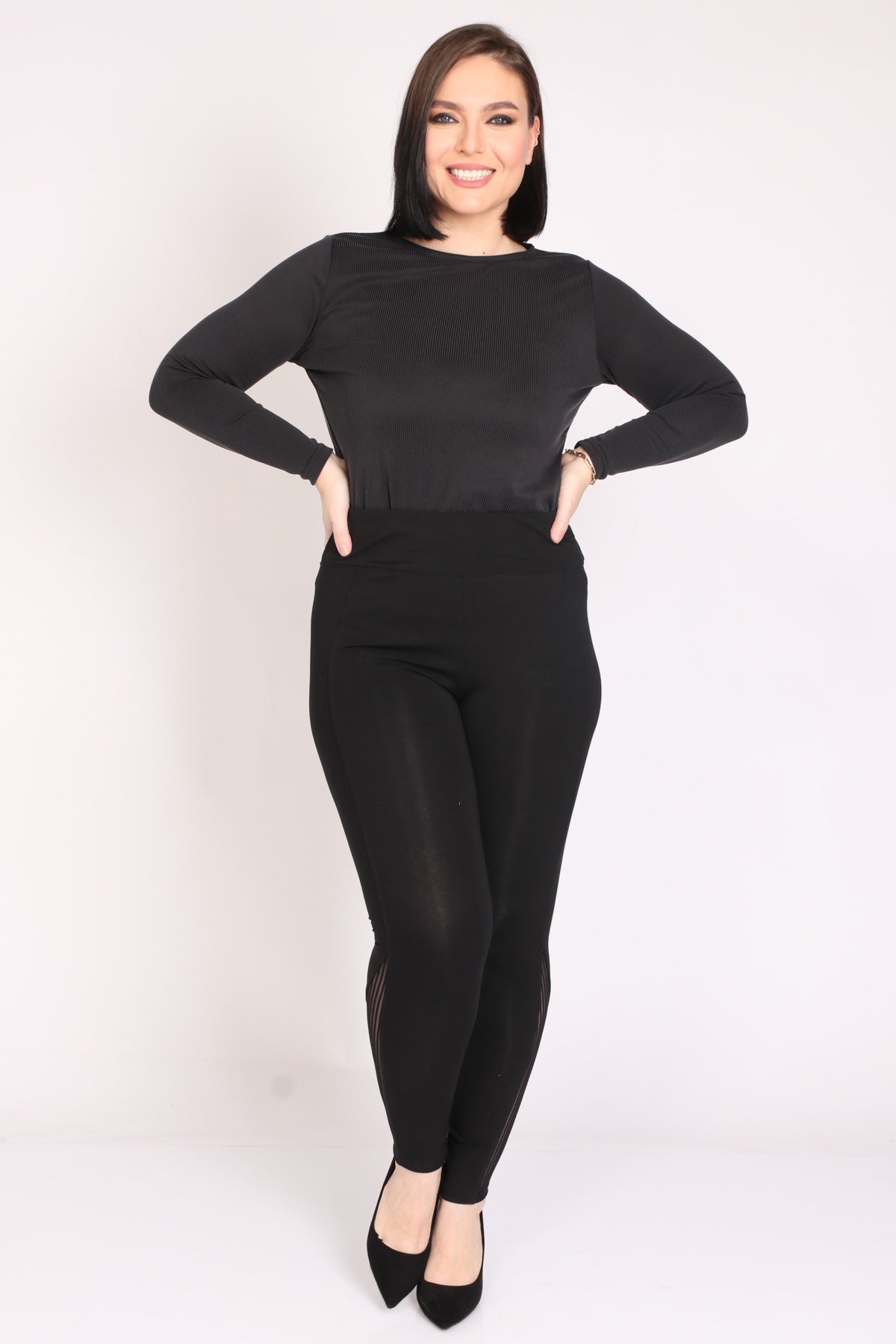- טייץ כותנה עם גומי במותן בעיטור רשת בסיומת