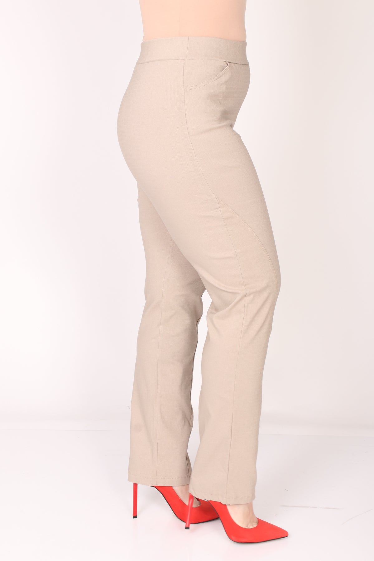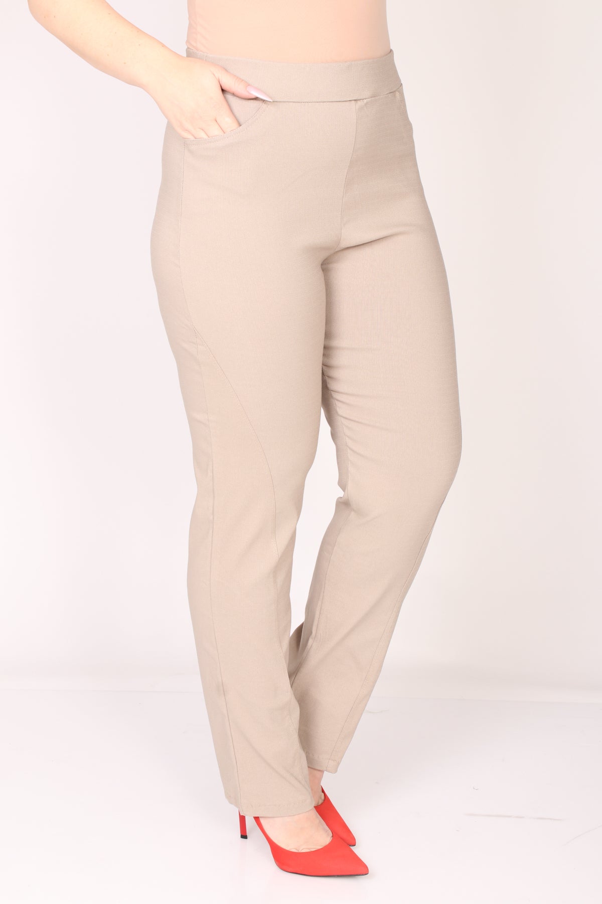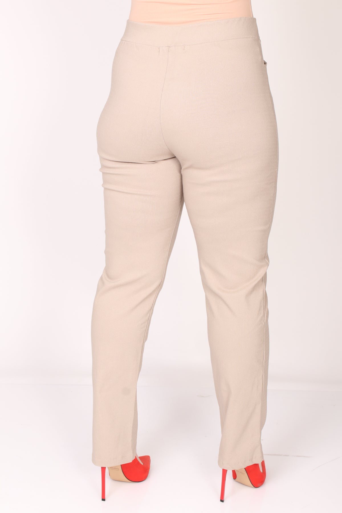 מכנס עם גומי במותן וכיסים בגזרת סקיני עם תיפורים המחמיאים מבד גמיש ומחטב.