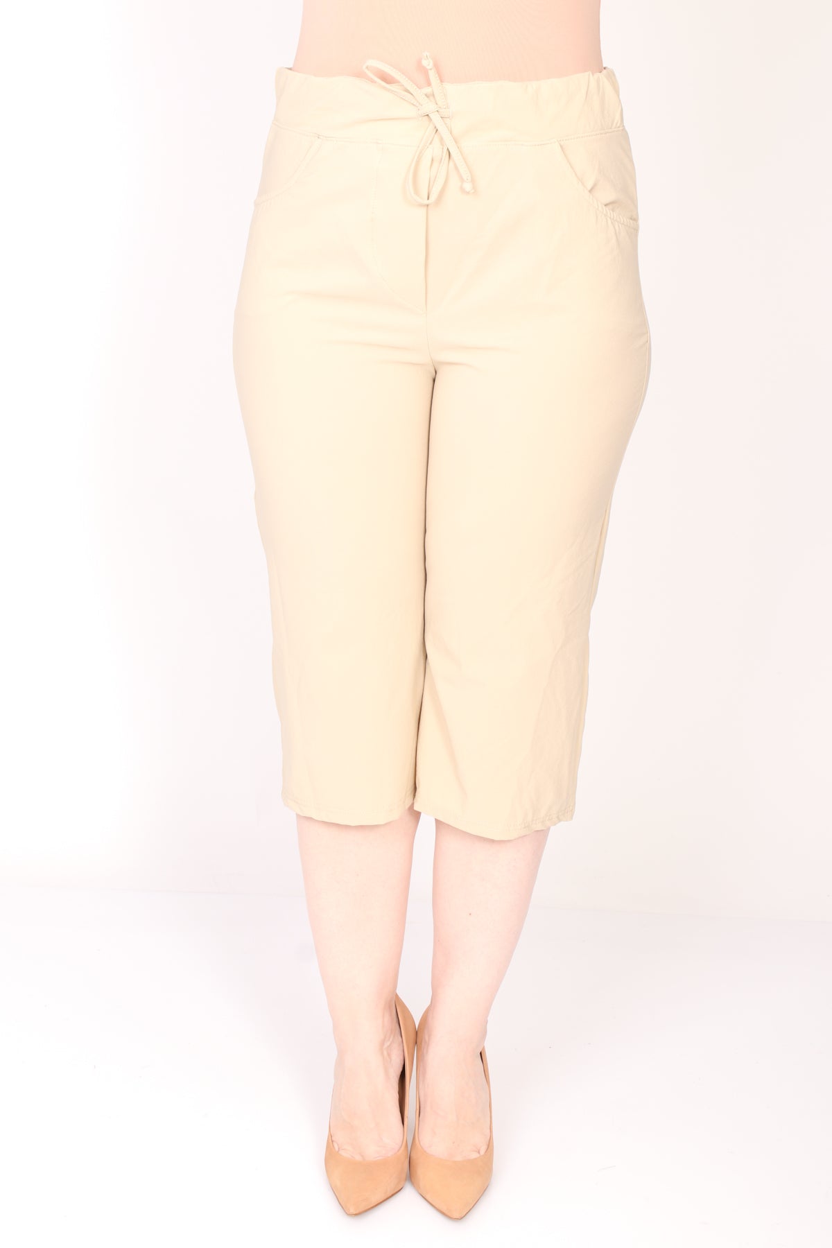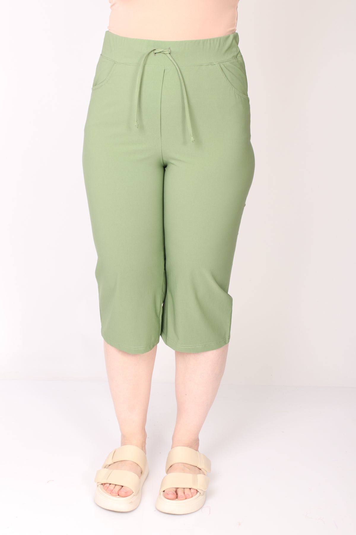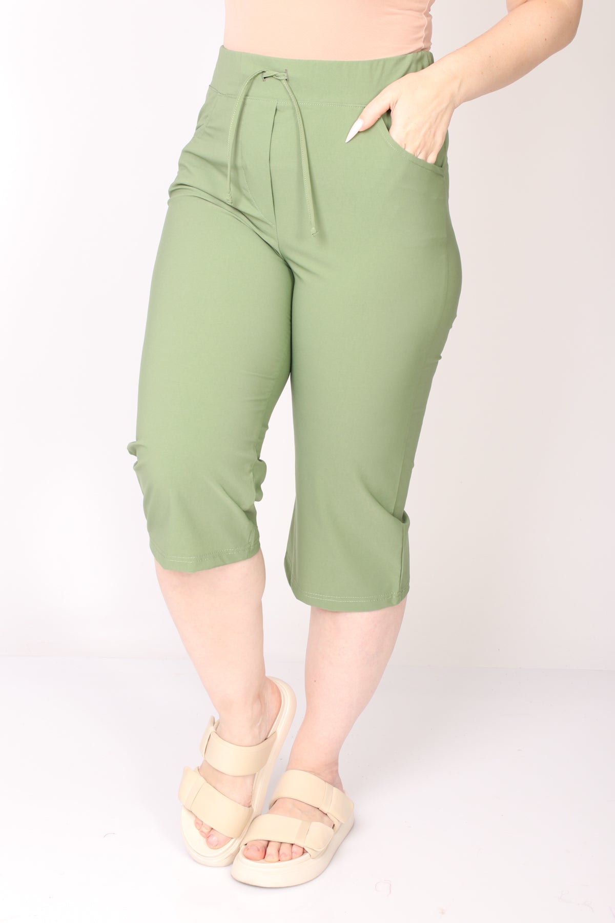 - מכנסיים עם גומי במותן ושרוך לכיווץ באורך 7/8, מבד מחטב ונוח