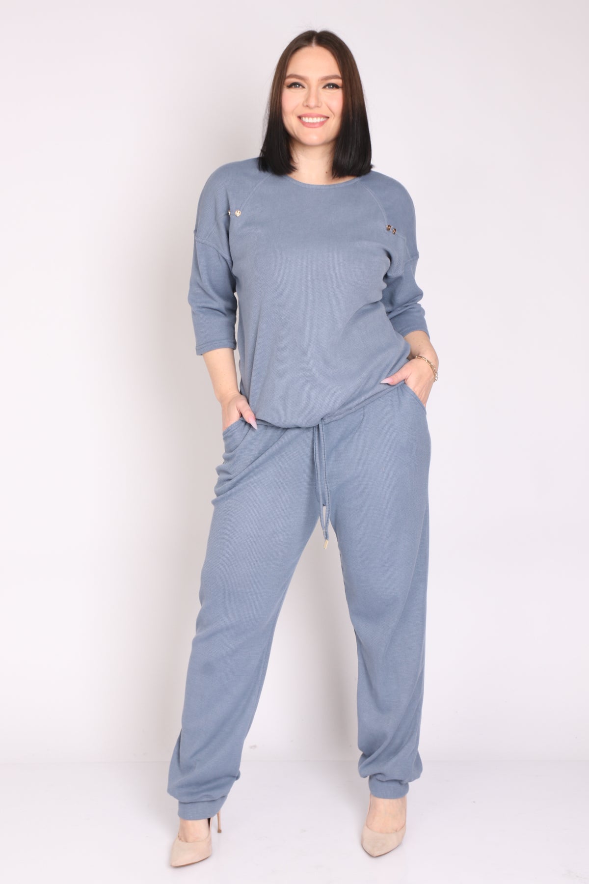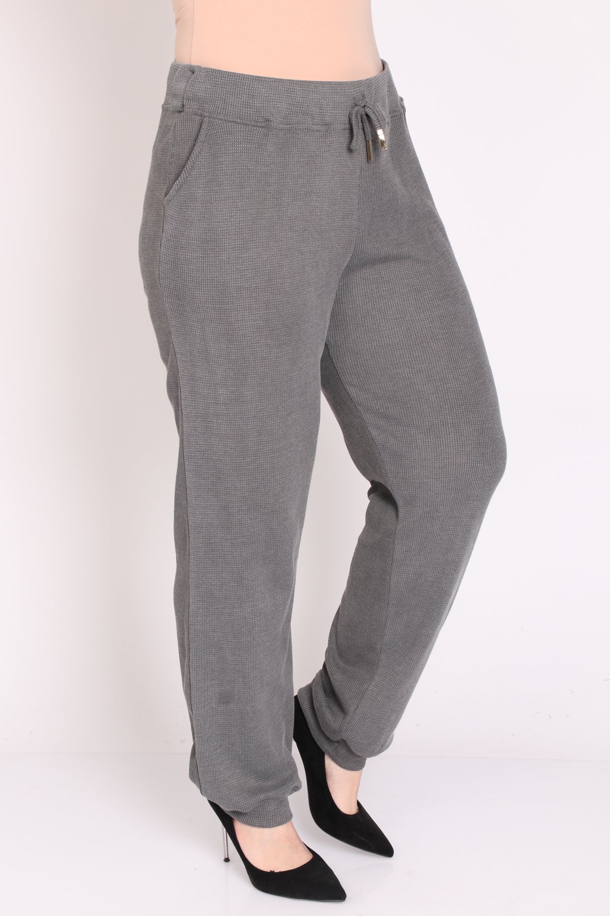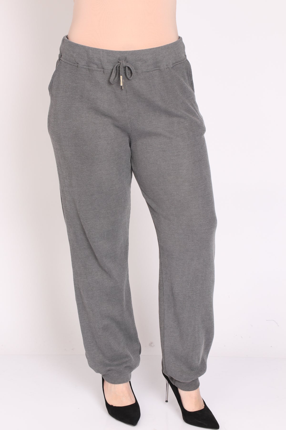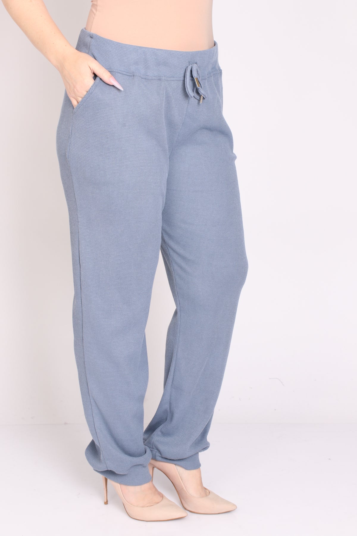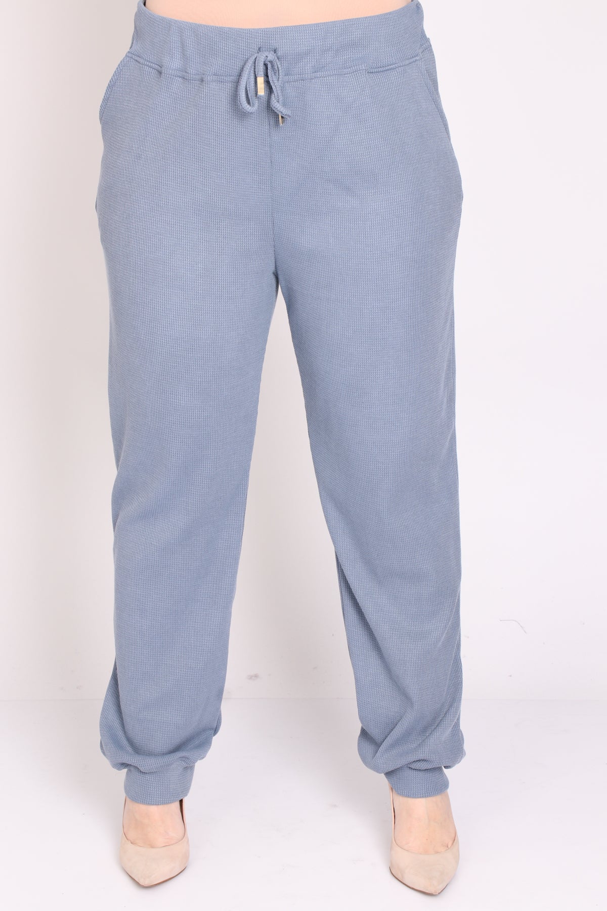 - מכנס עם גומי במותן מבד וופל במראה ספורטיבי