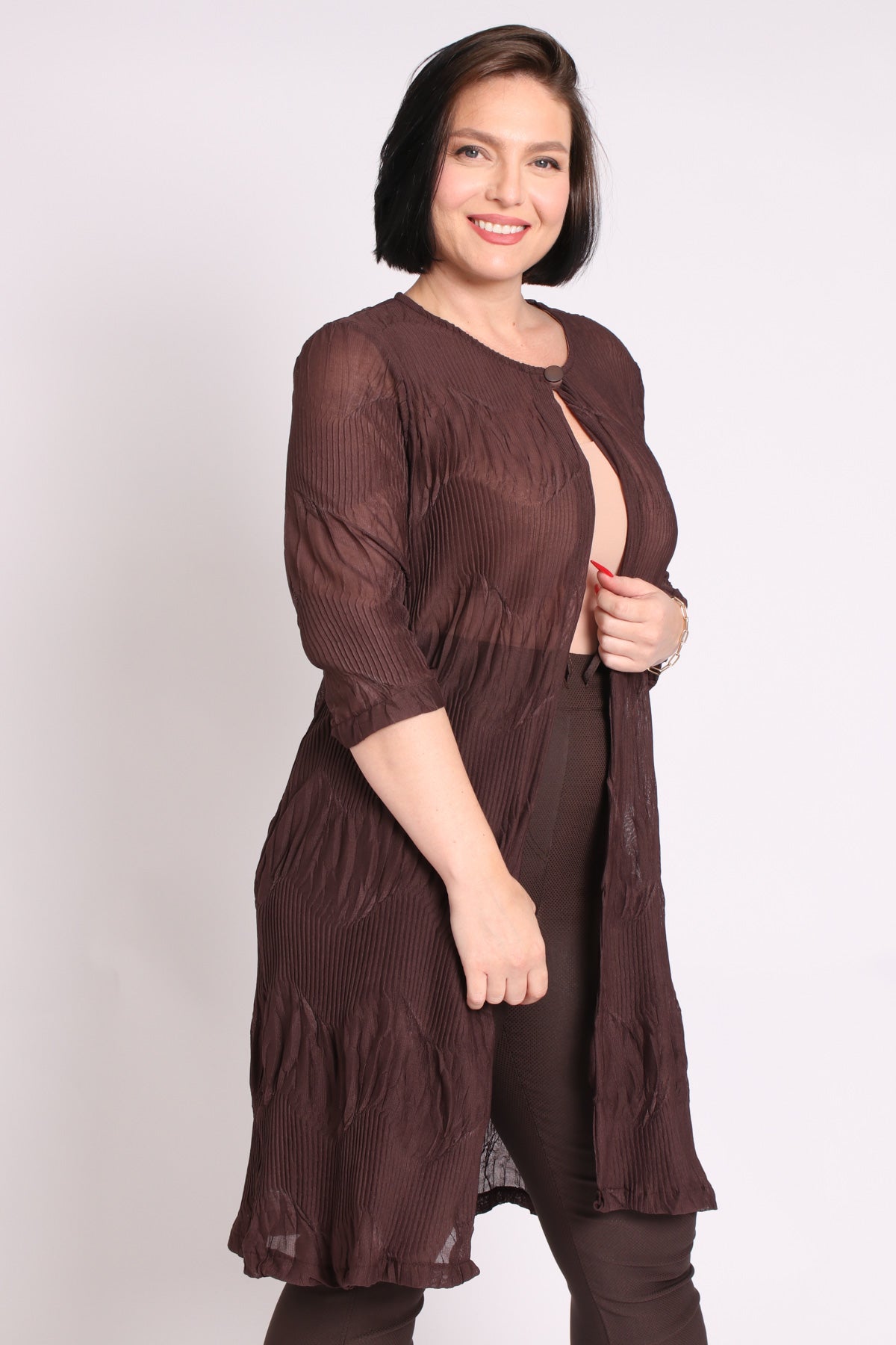 - עליונית סריג טקסטורלית עם כפתור בודד לסגירה