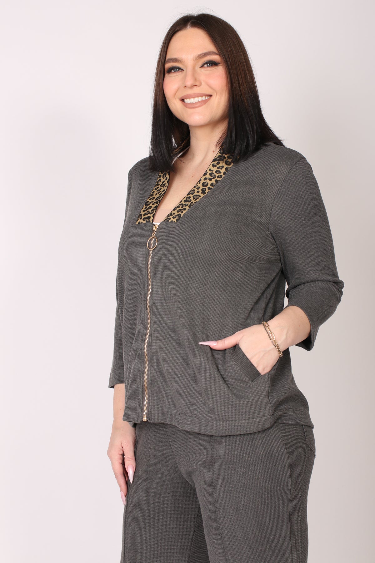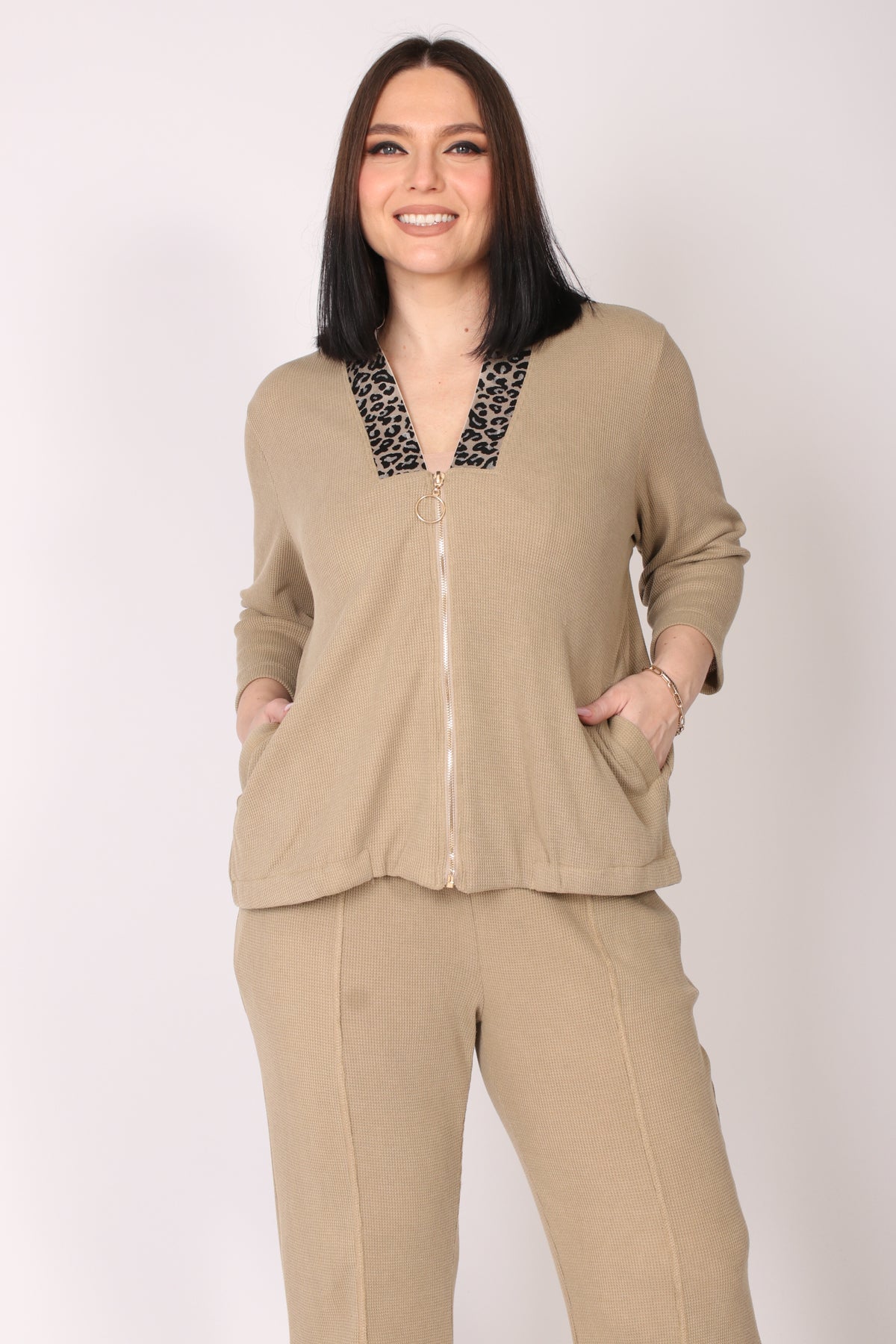 • עליונית וופל בסגירת רוכסן ברזל, עיבוד מנומר בצווארון