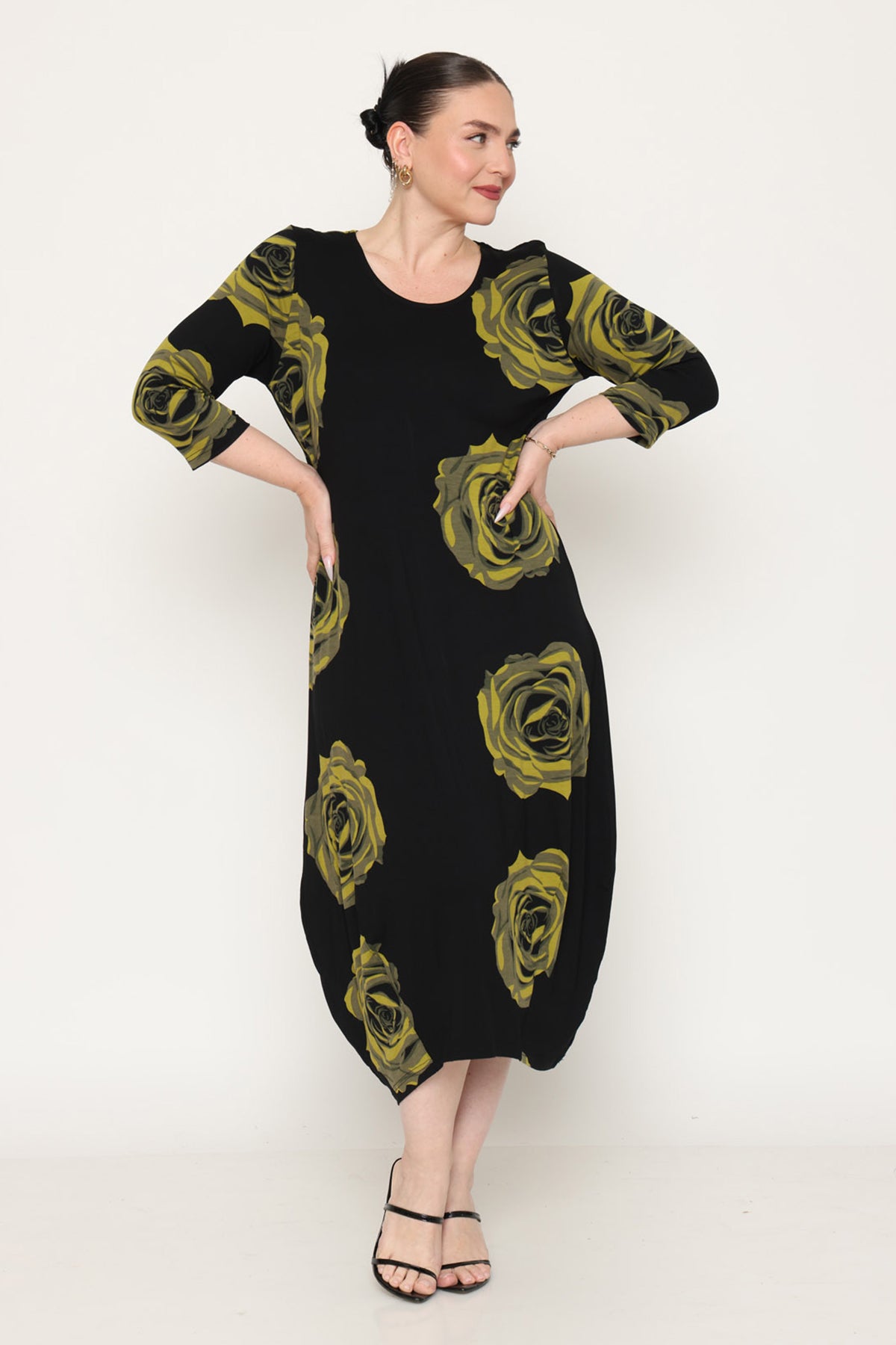 - שמלה בגזרת בלון עדינה מבד בדפוס פרחים