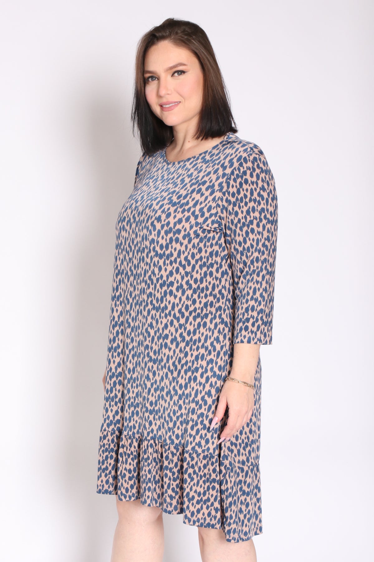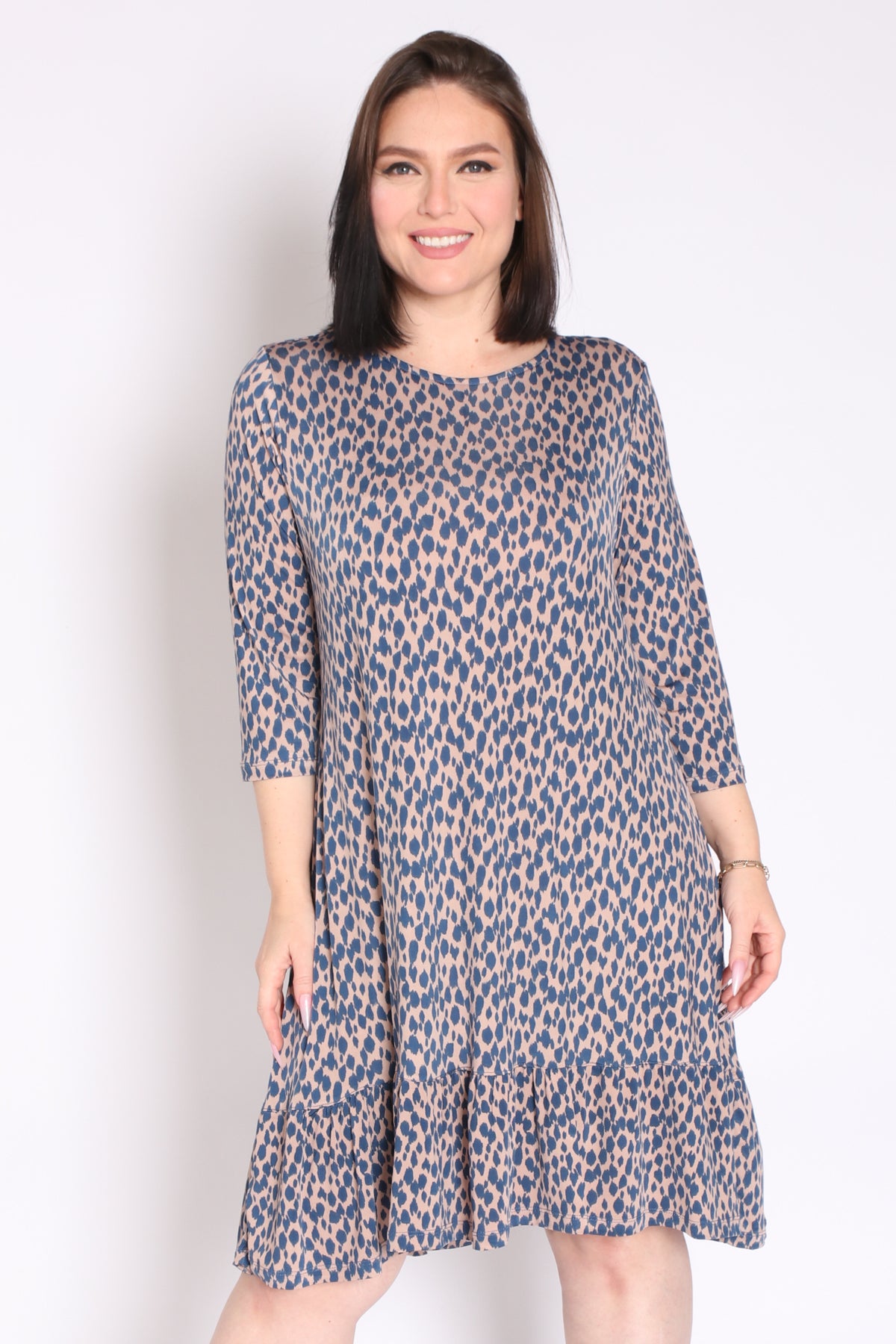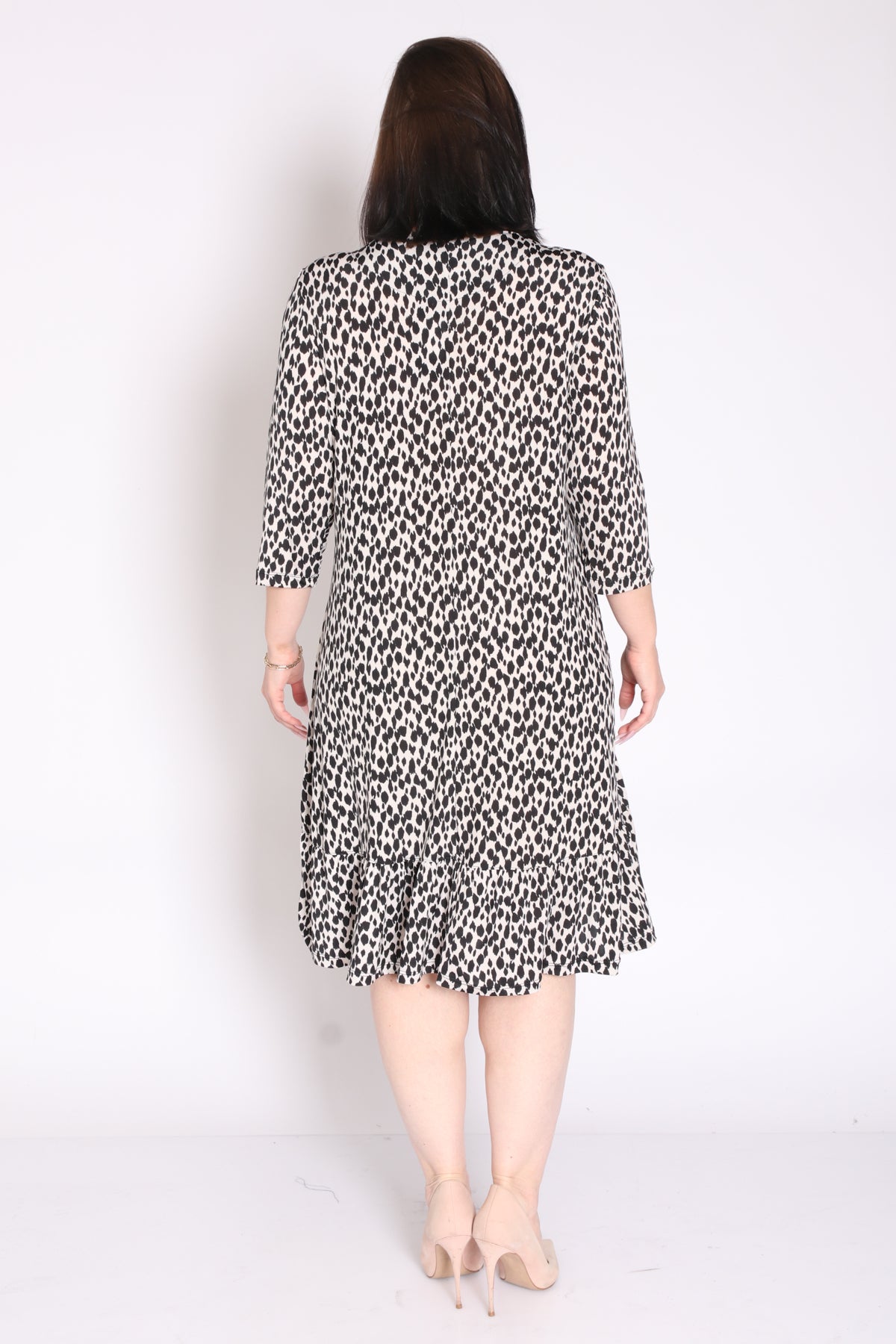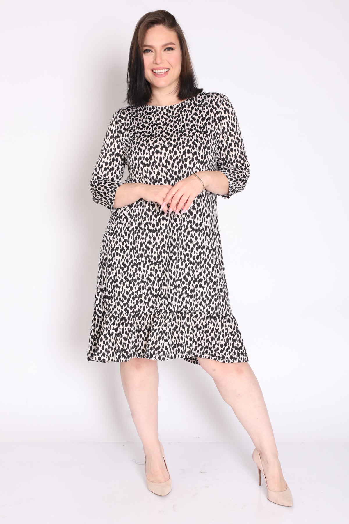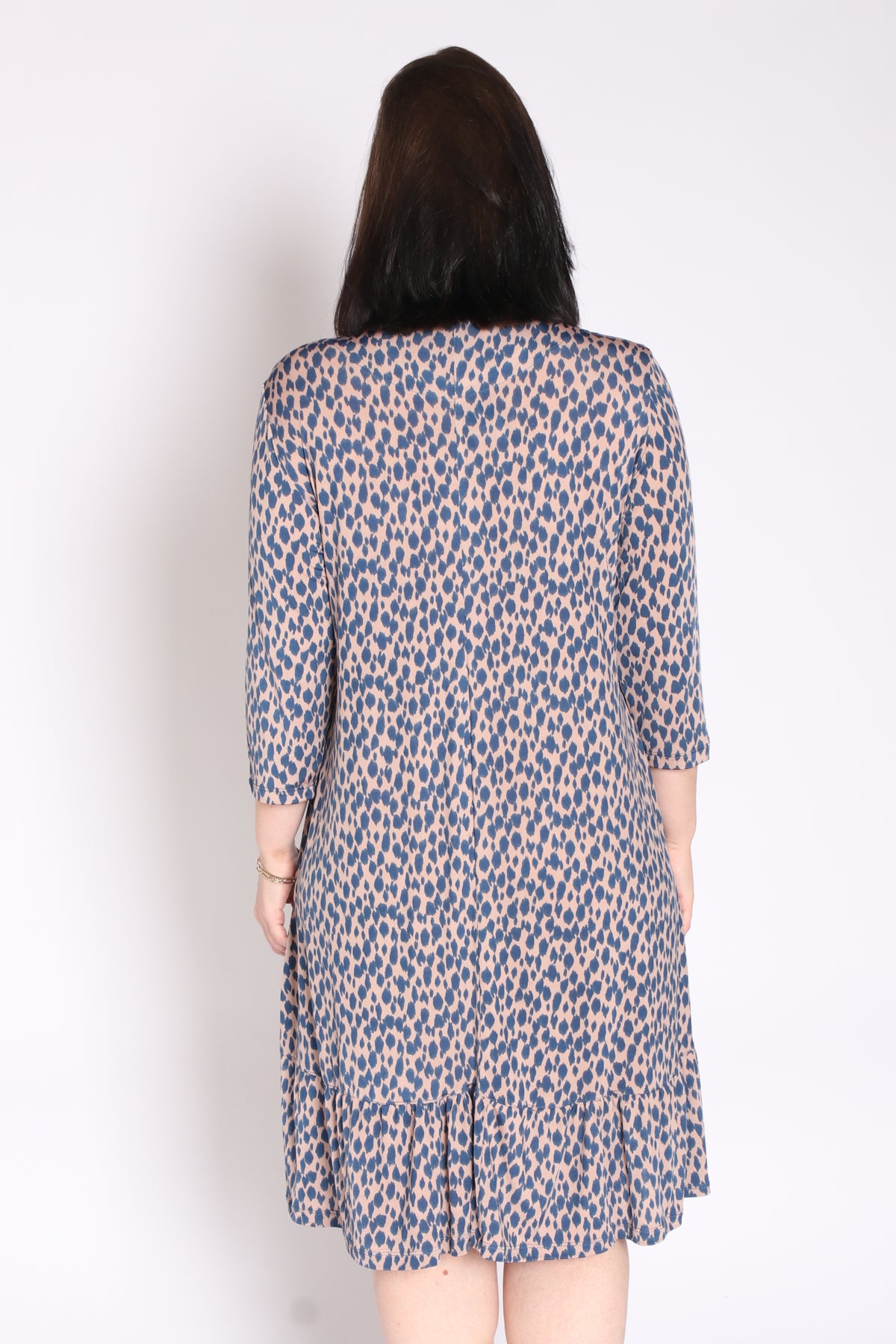 - שמלקצרה בגזרה מתרחבת קלות בדפוס מנומר צבעוני