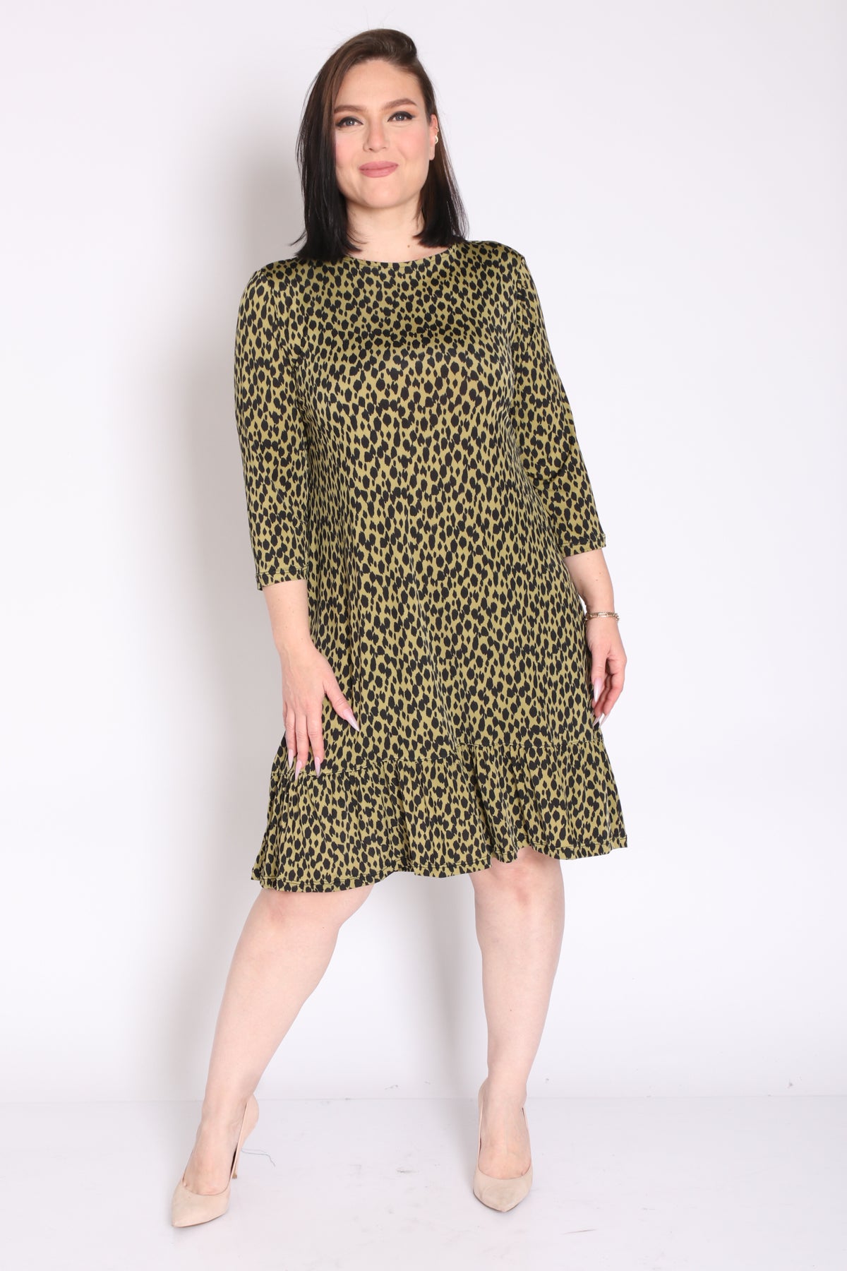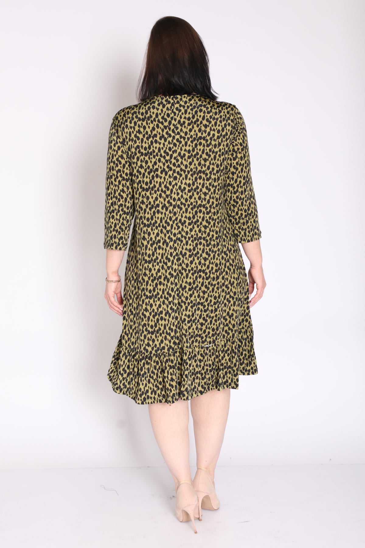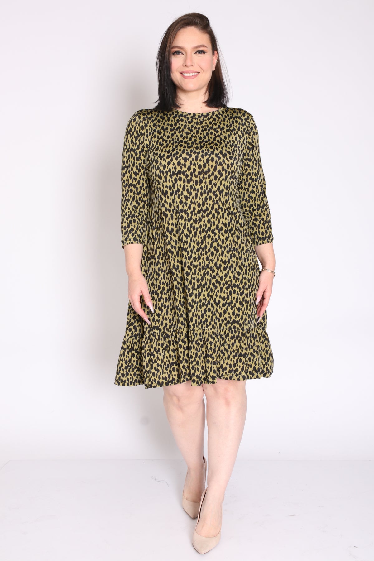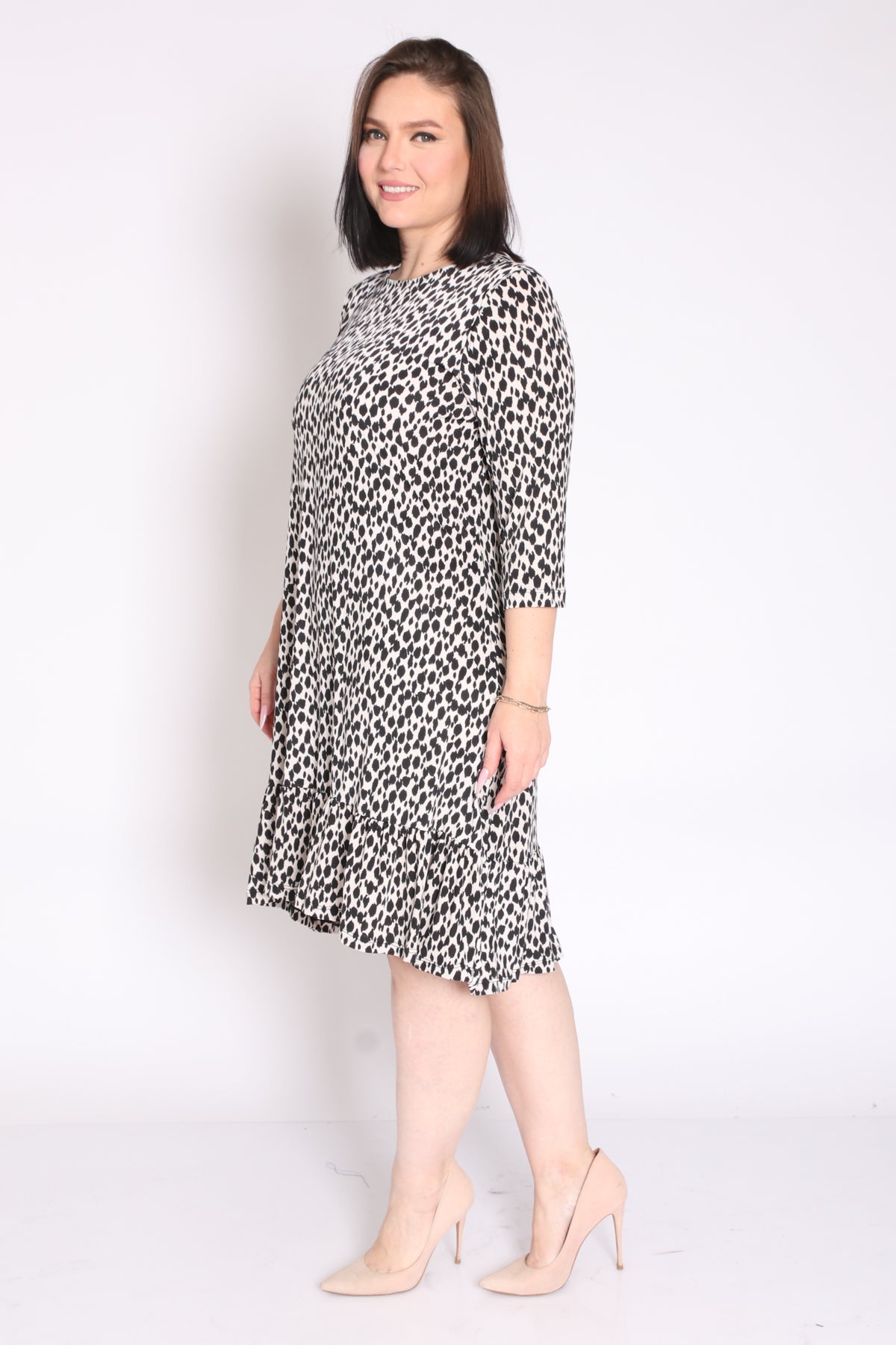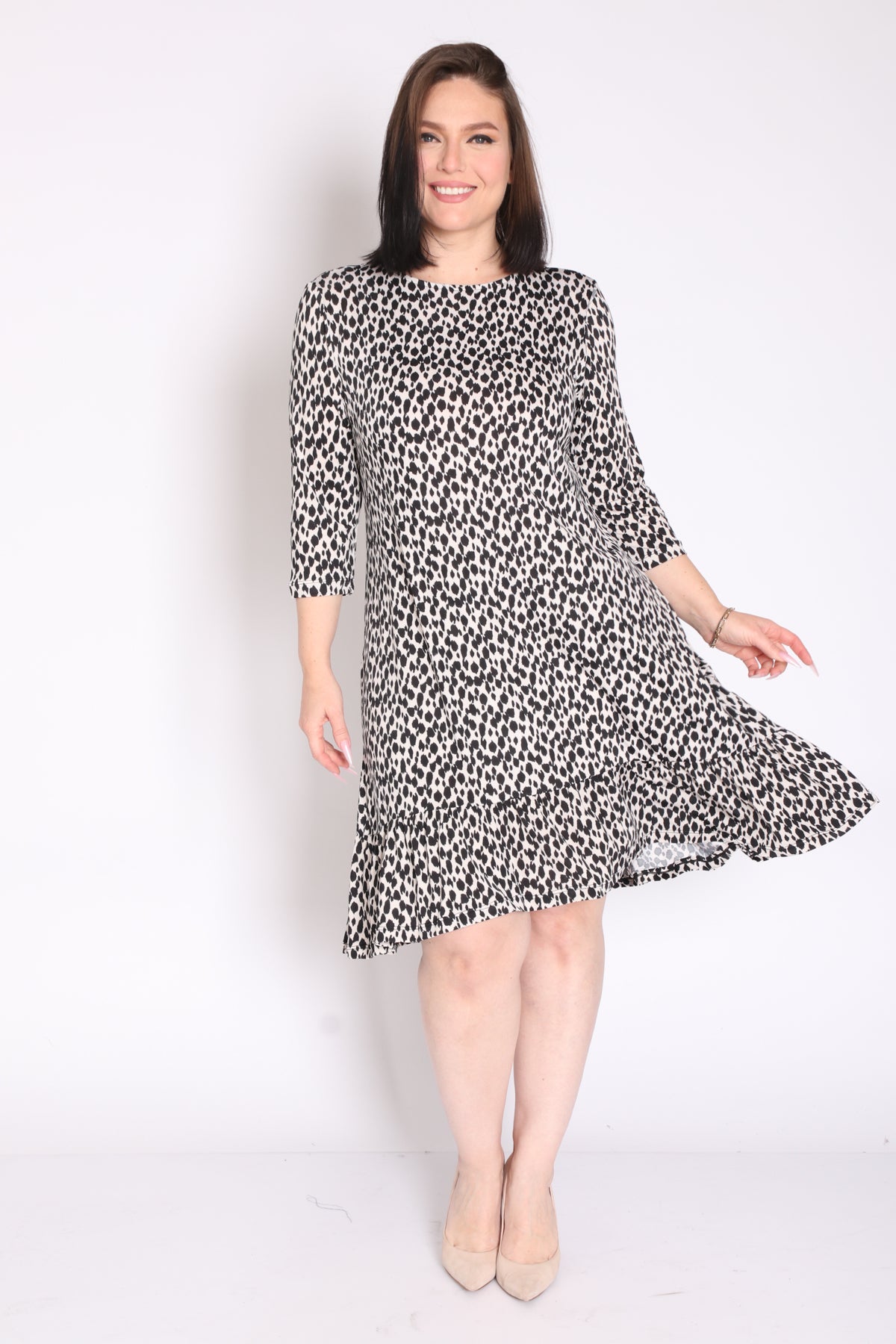 - שמלקצרה בגזרה מתרחבת קלות בדפוס מנומר צבעוני