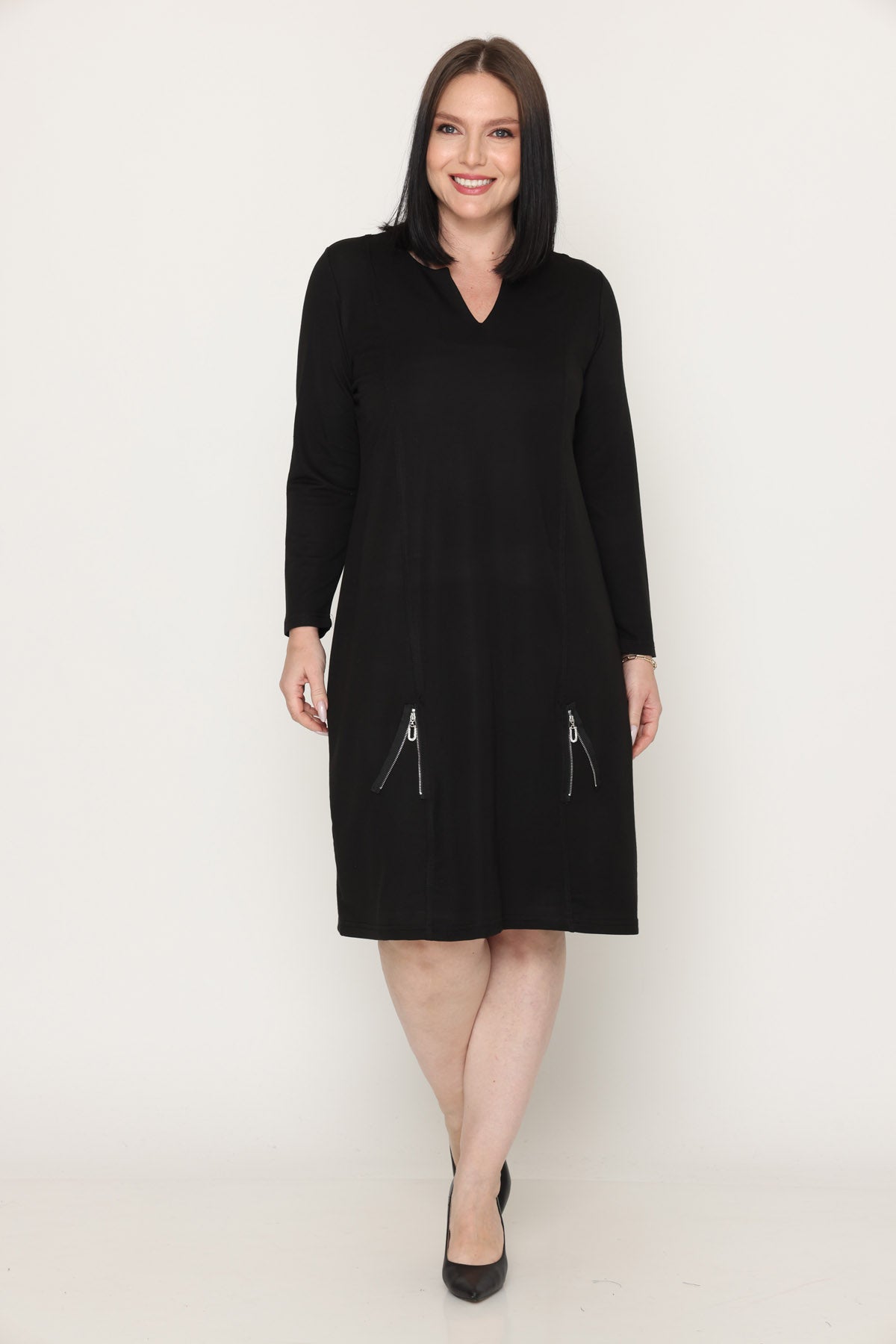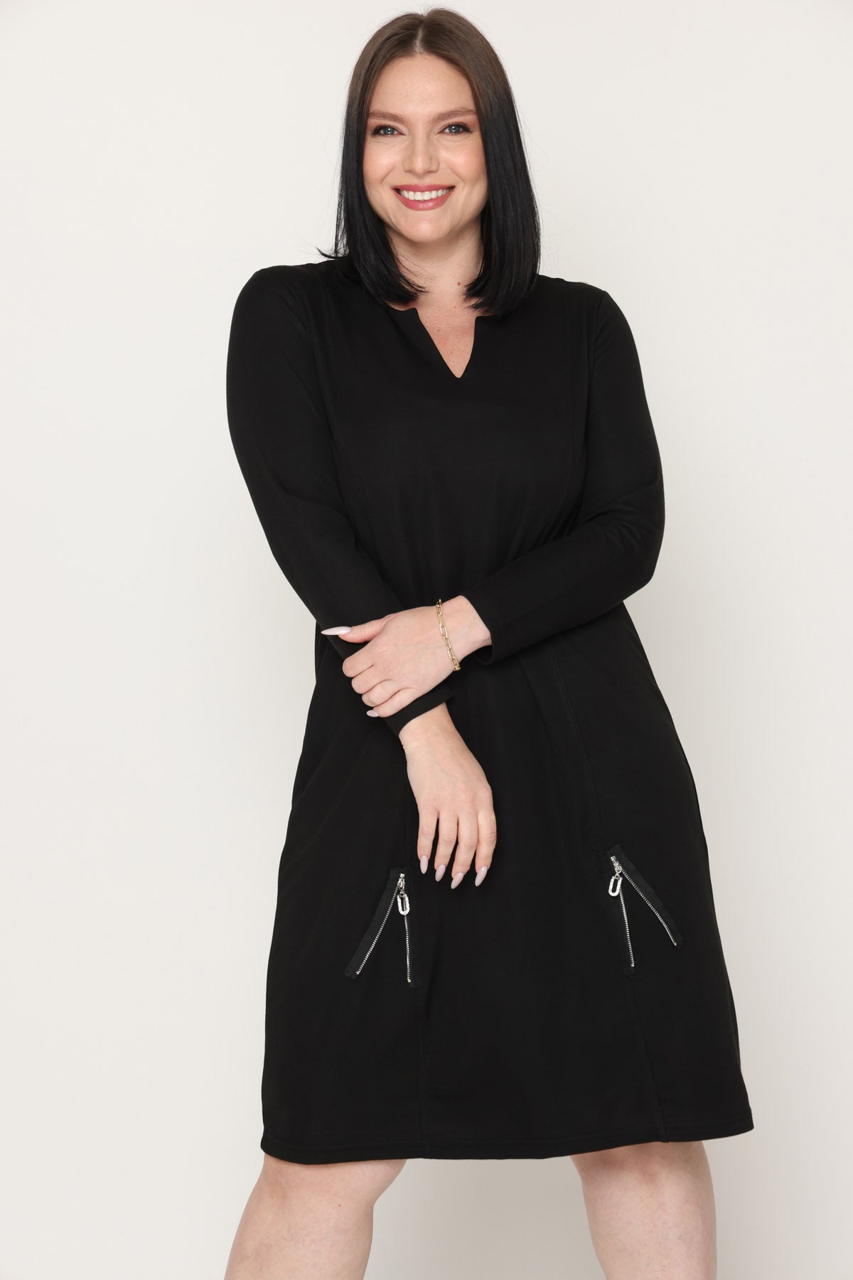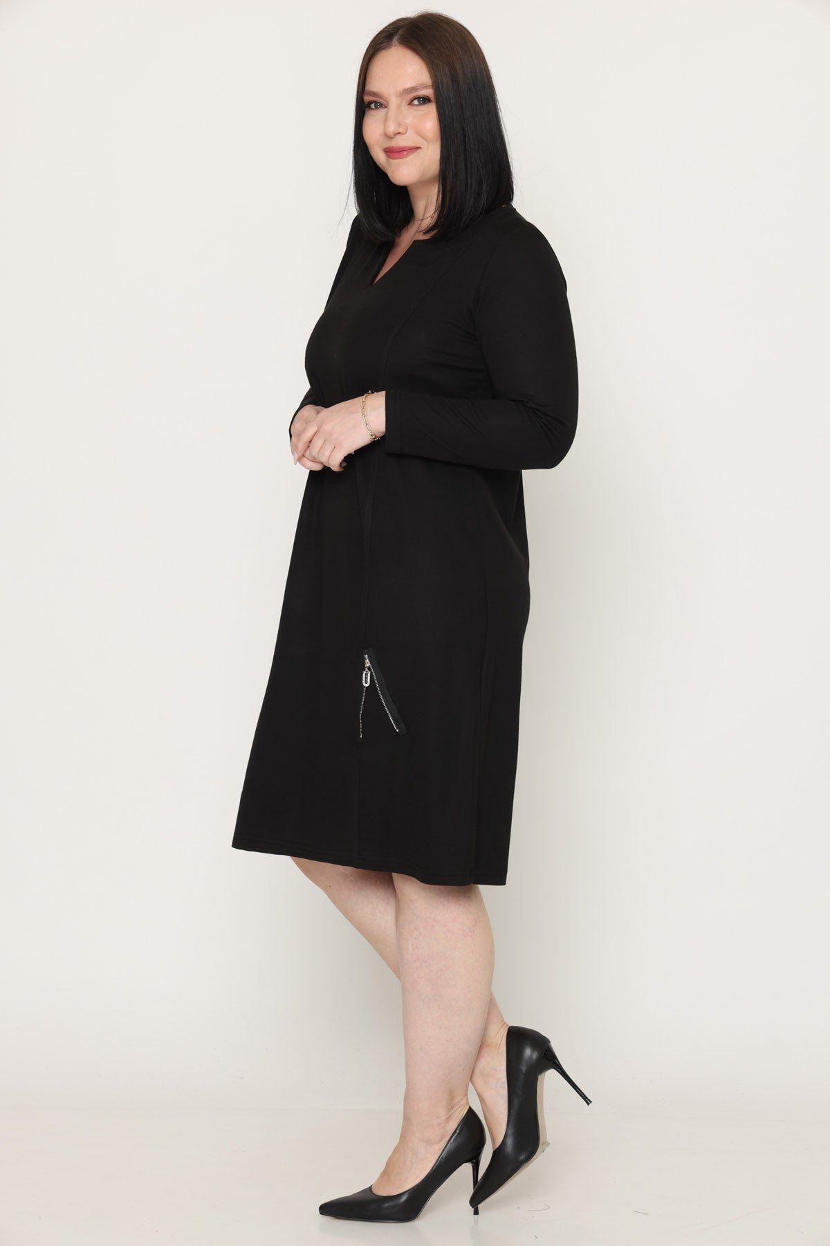 - שמלה קצרה במתרחבת קלות, עם רוכסנים לעיטור