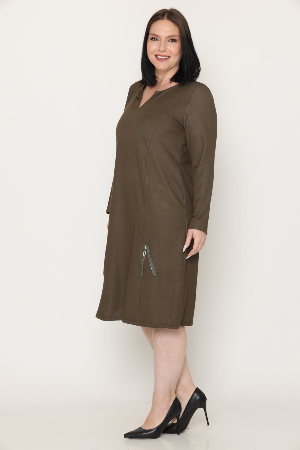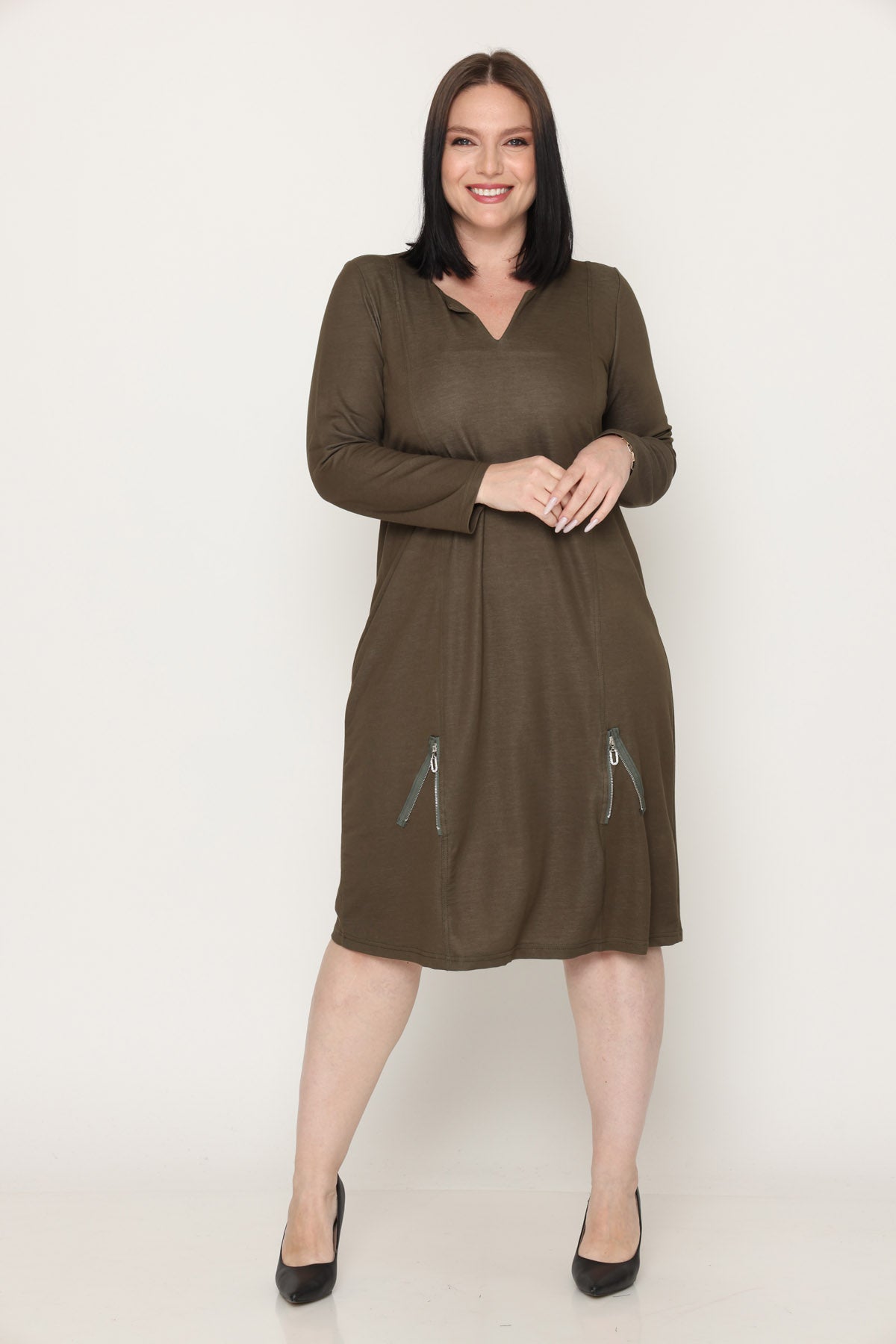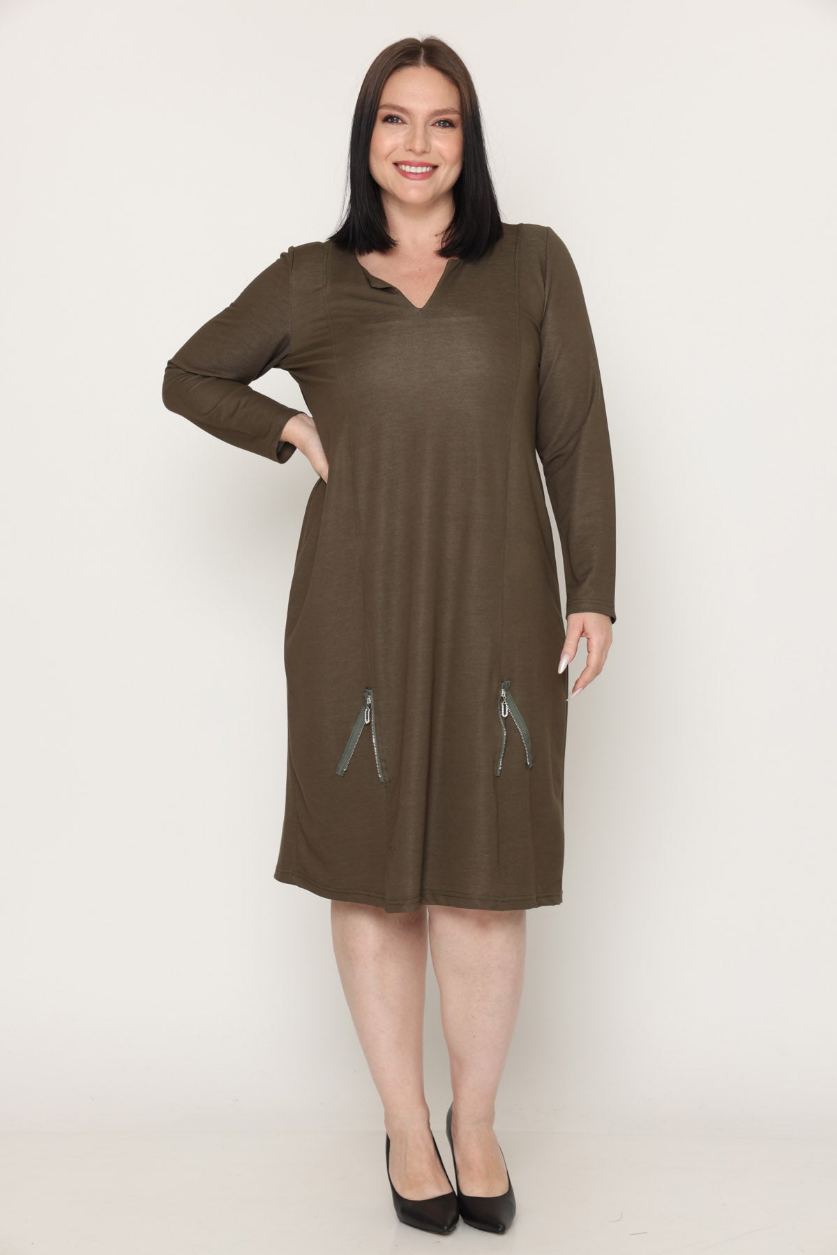 - שמלה קצרה במתרחבת קלות, עם רוכסנים לעיטור