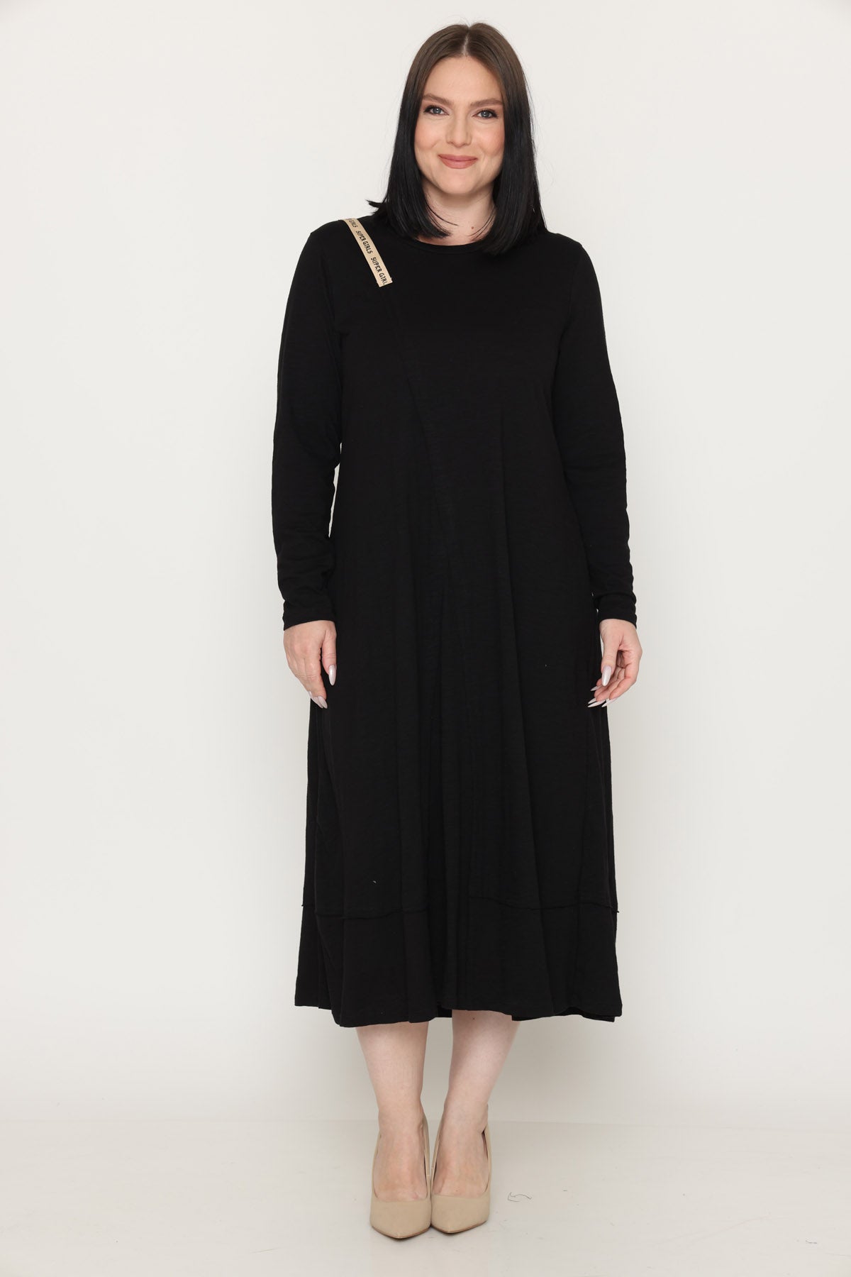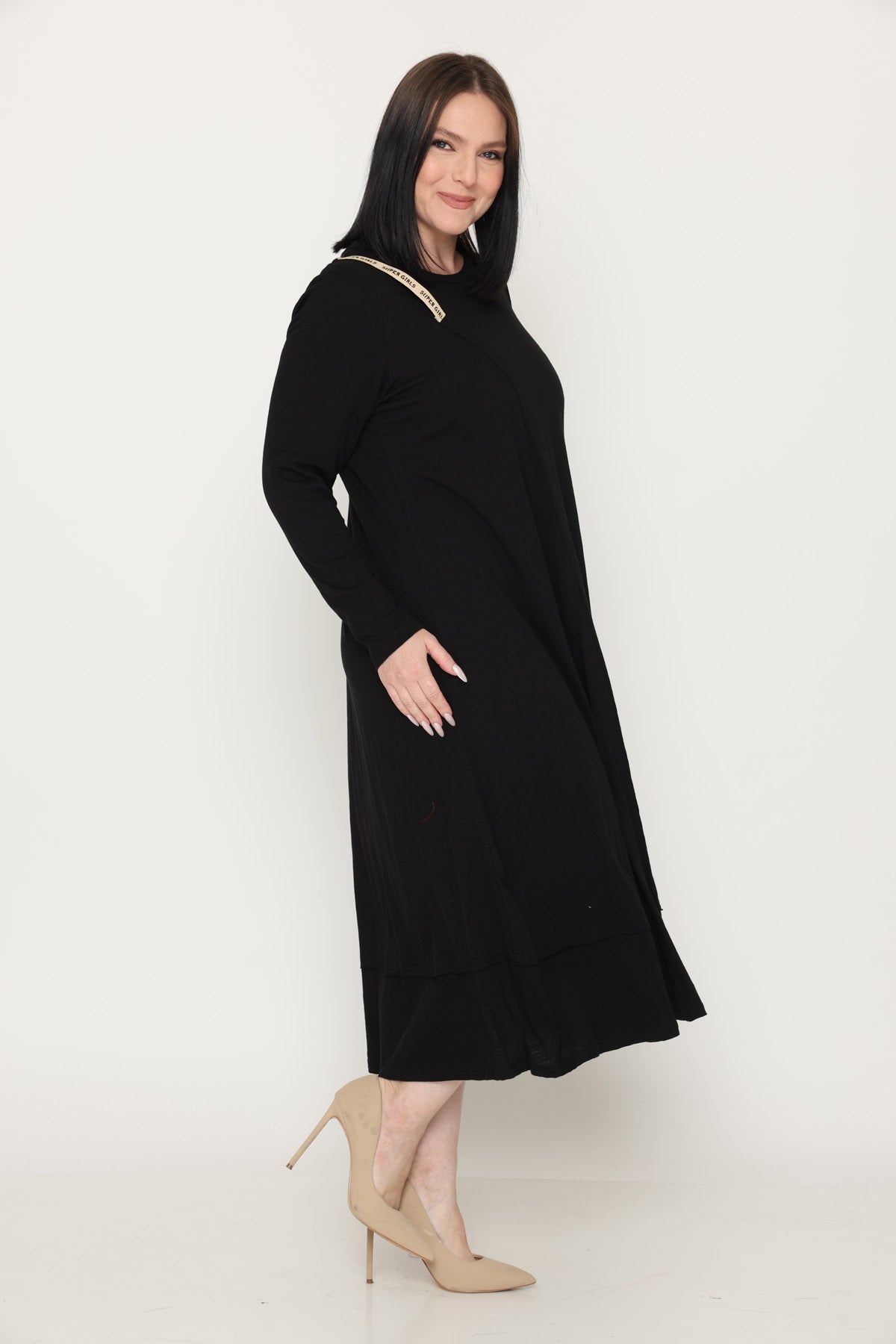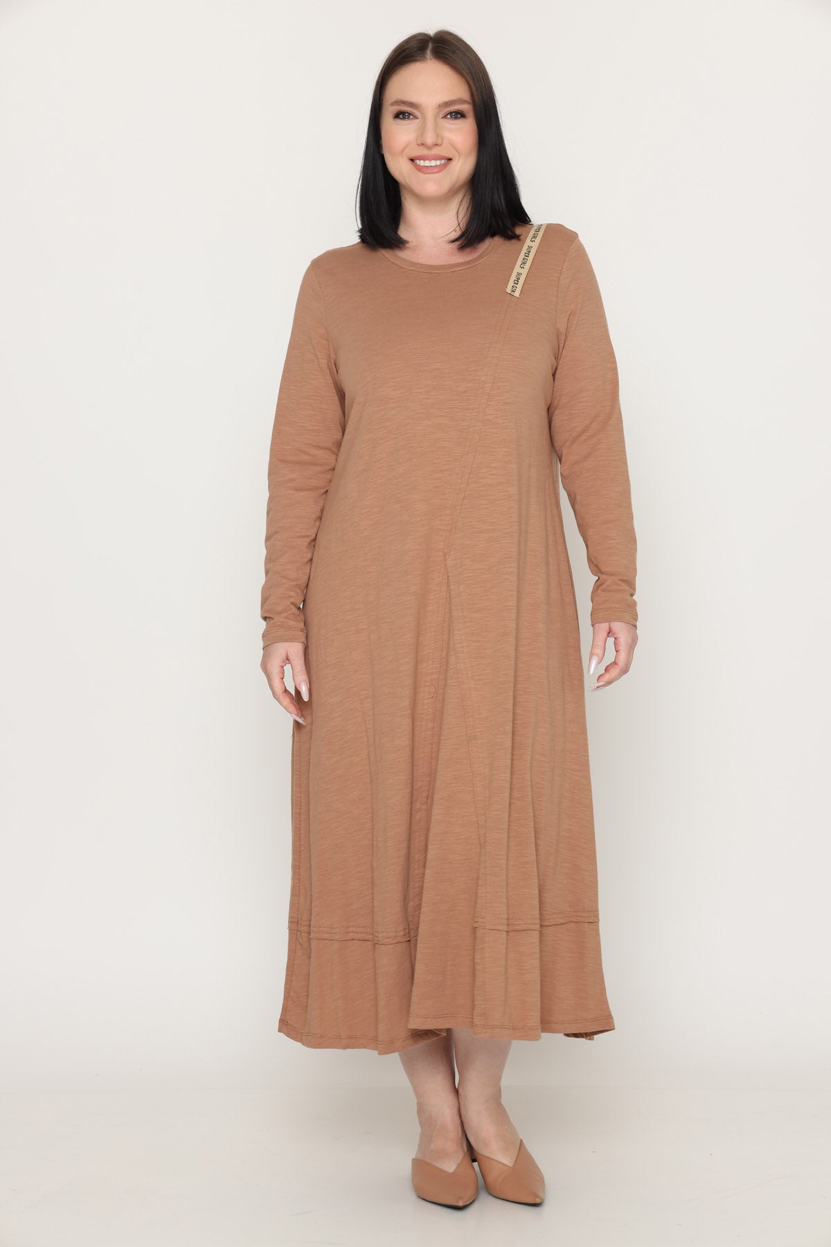 - שמלת מקסי מבד כותנה בגזרת איי-ליין עם תיפורים וסרט עיבוד בכתף