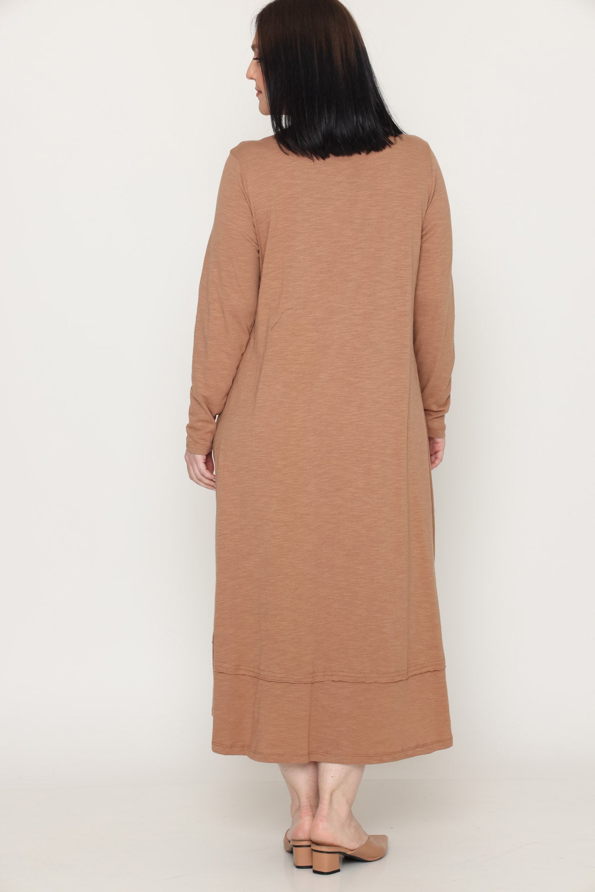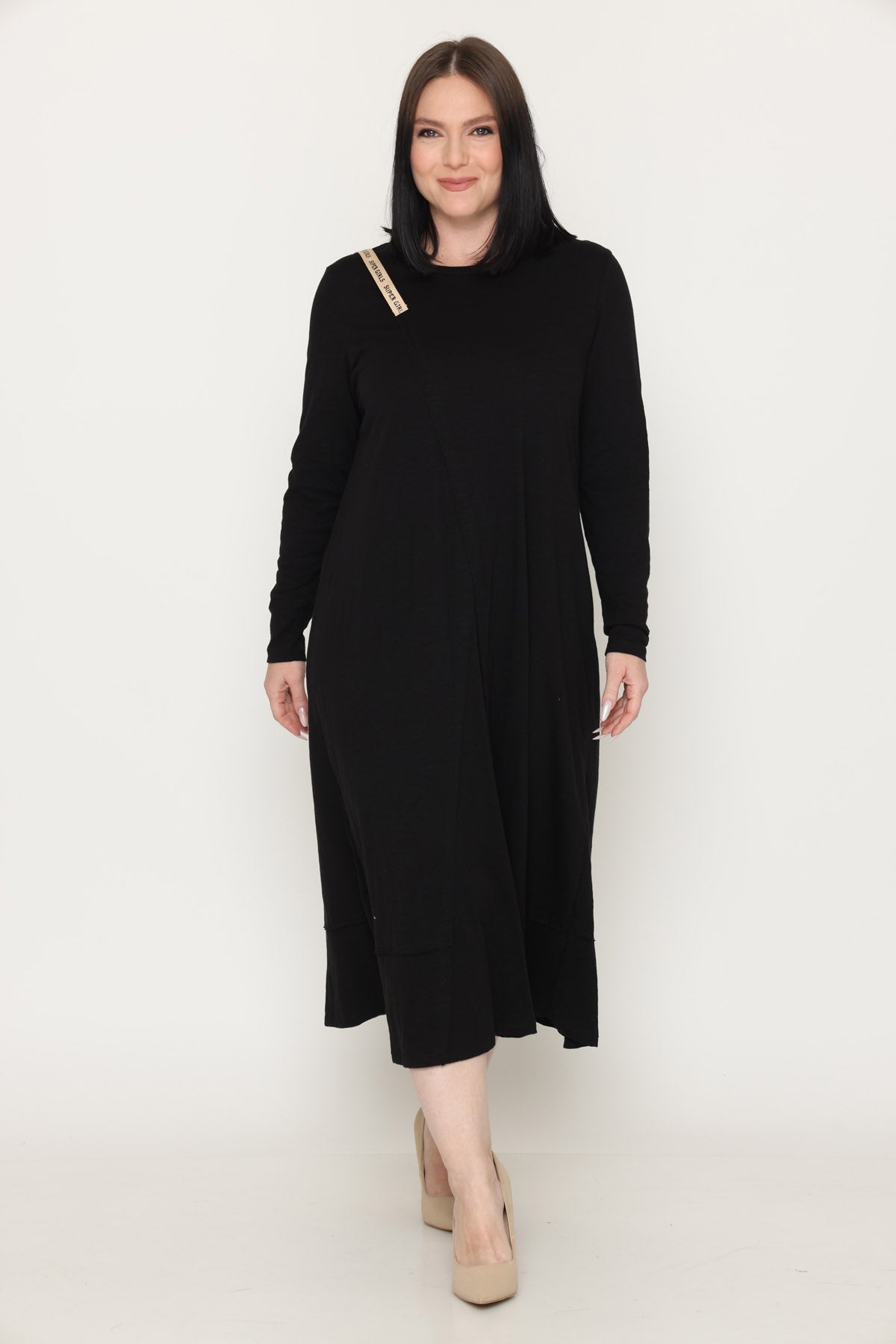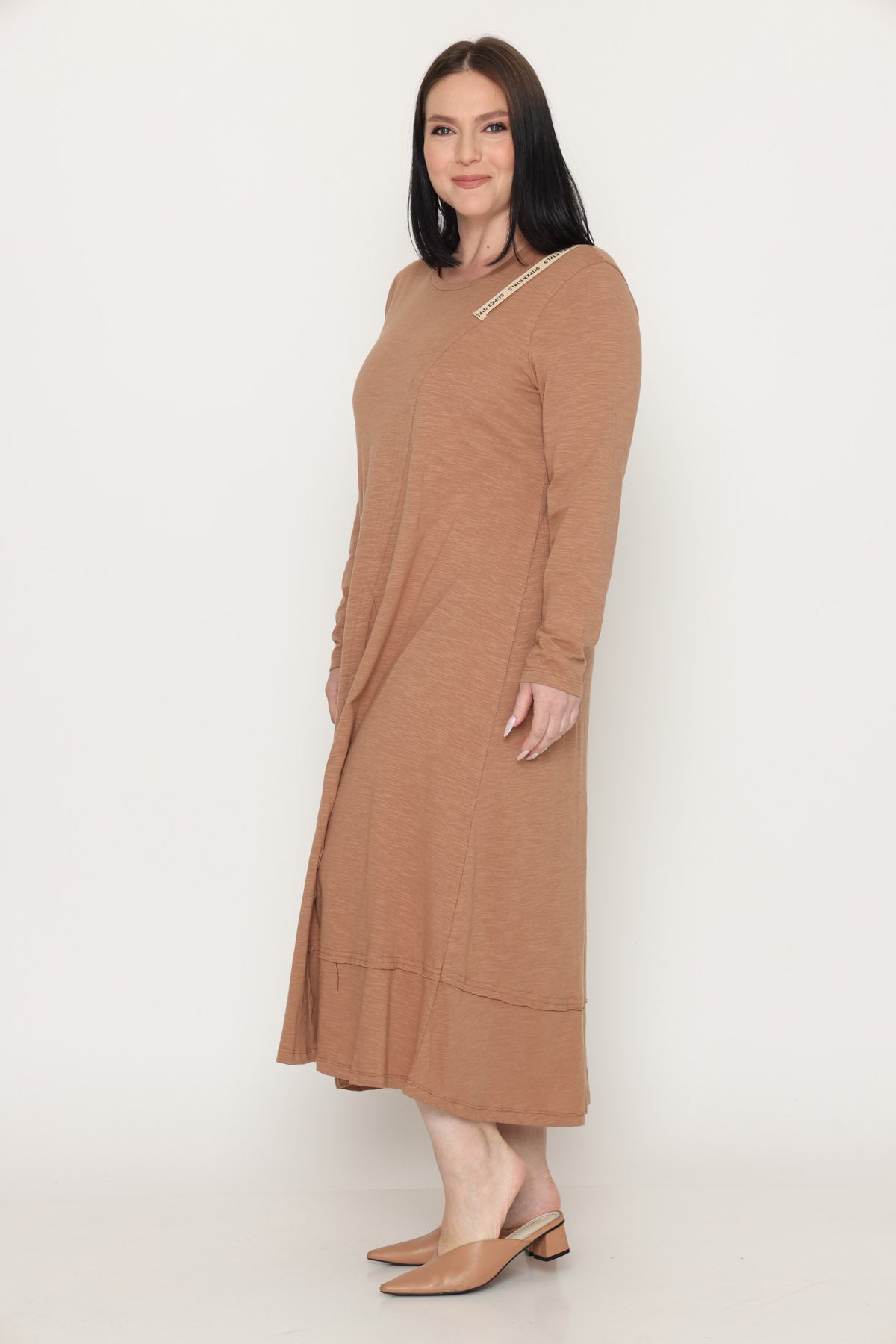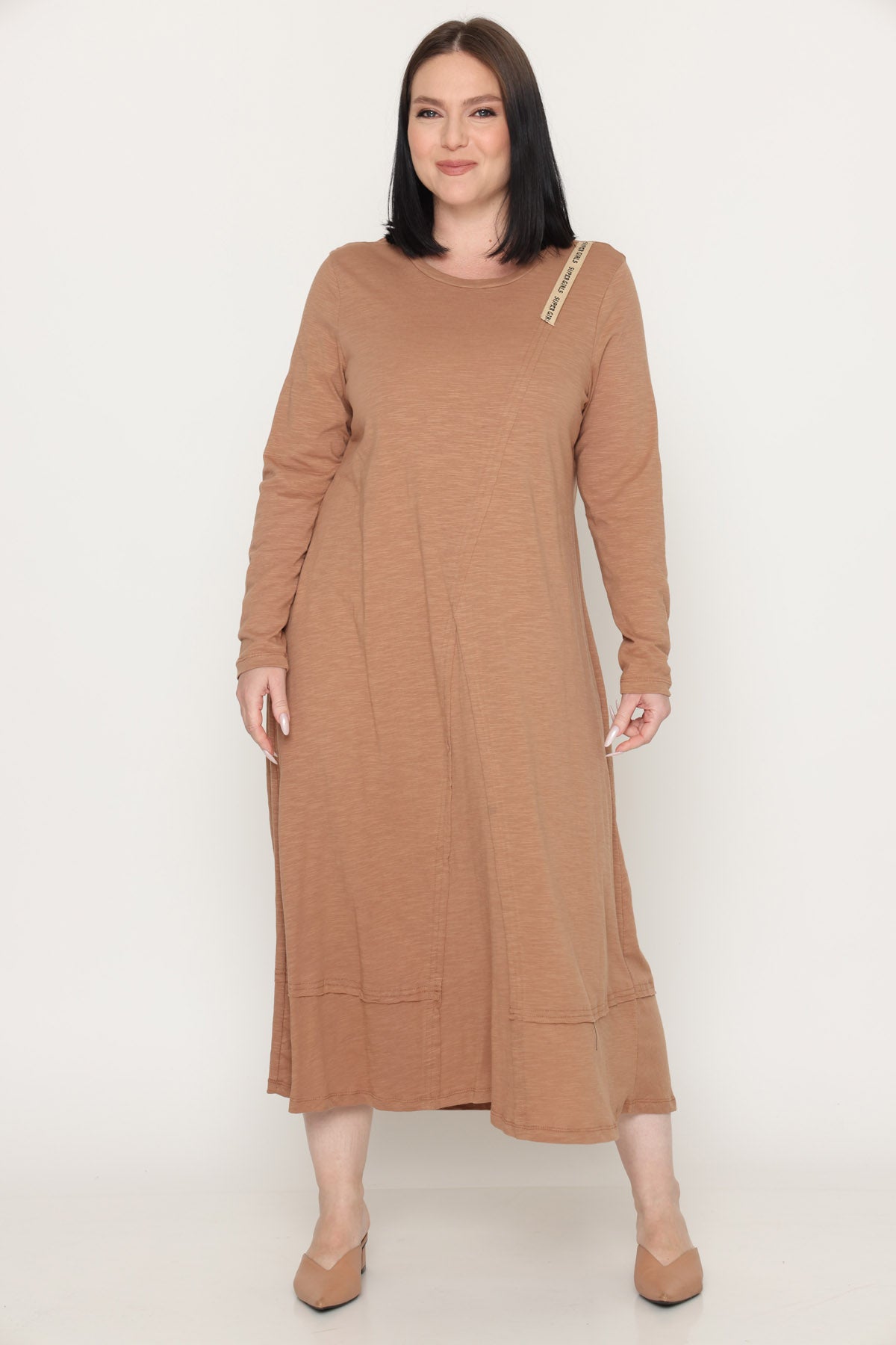 - שמלת מקסי מבד כותנה בגזרת איי-ליין עם תיפורים וסרט עיבוד בכתף